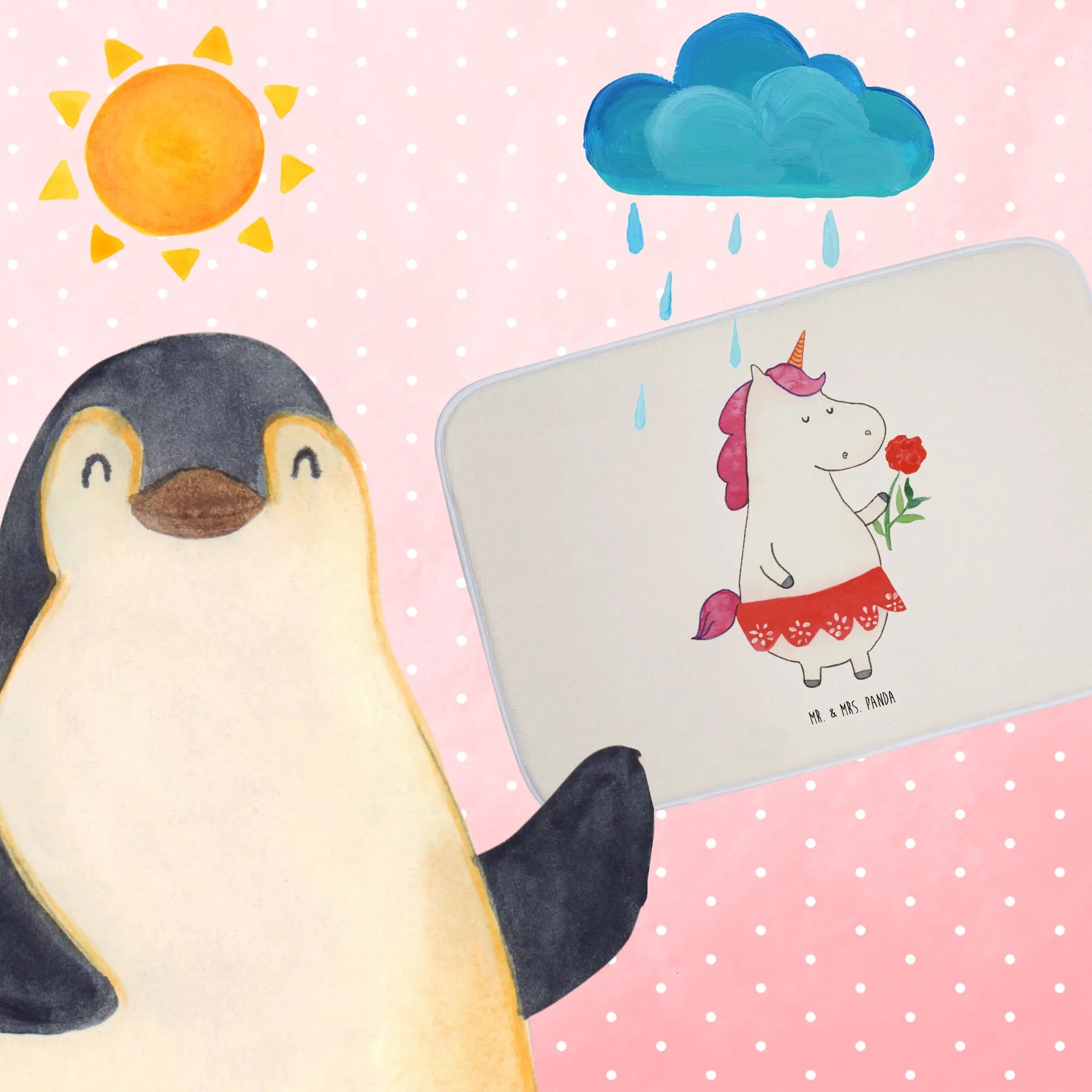 Der Badvorleger Einhorn Dame von Mr. & Mrs. Panda ist der perfekte Begleiter für dein Badezimmer. Egal, ob du auf der Suche nach einem besonderen Geschenk für eine feine Dame oder nach einem süßen Accessoire für dich selbst bist, dieser Badteppich wird garantiert alle Blicke auf sich ziehen! Mit den liebevoll handgezeichneten Einhörnern aus der einzigartigen Einhorn-Kollektion bringst du einen Hauch von Magie in deine vier Wände.