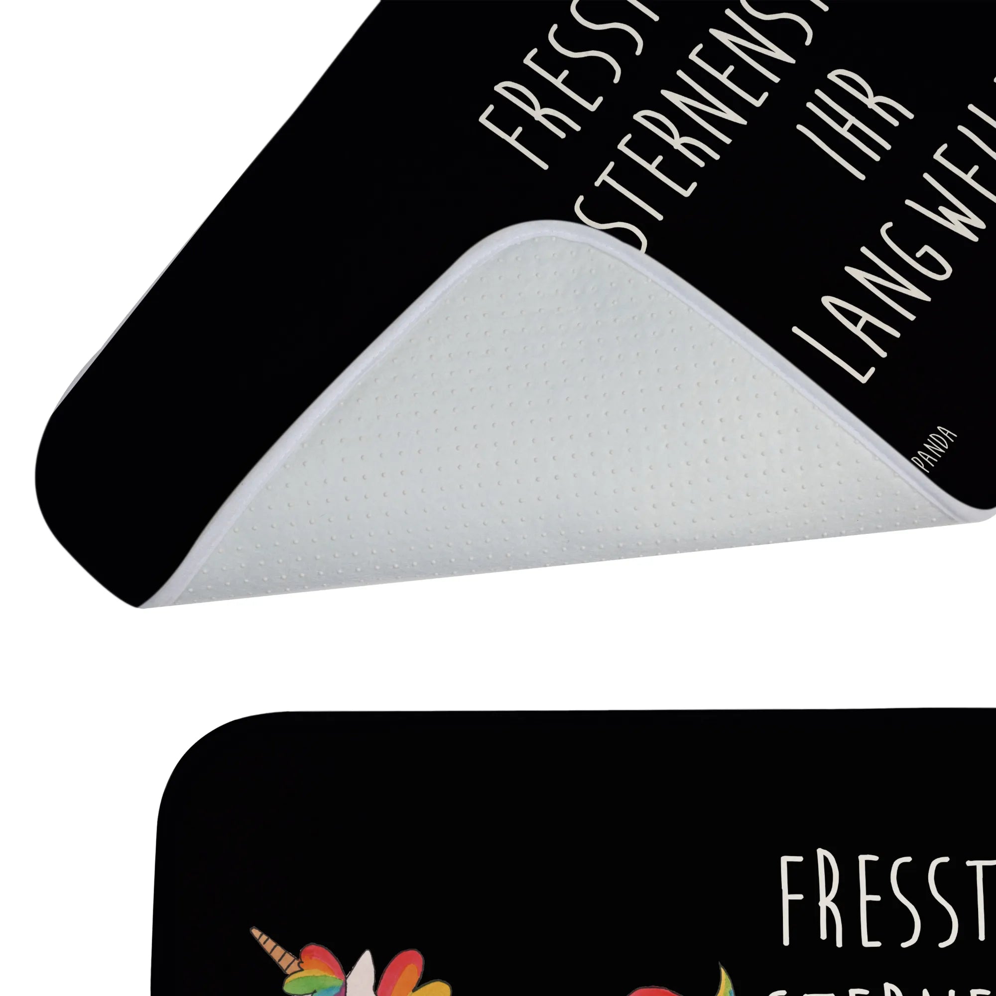 Dieses niedliche Einhorn mit seiner bunten Regenbogen-Mähne bringt nicht nur Freude, sondern sorgt auch für ein fröhliches Ambiente in jedem Badezimmer. Der Badvorleger ist mit dem witzigen Spruch "Fresst meinen Sternenstaub, ihr Langweiler" versehen, der dich und deine Gäste zum Schmunzeln bringt.
