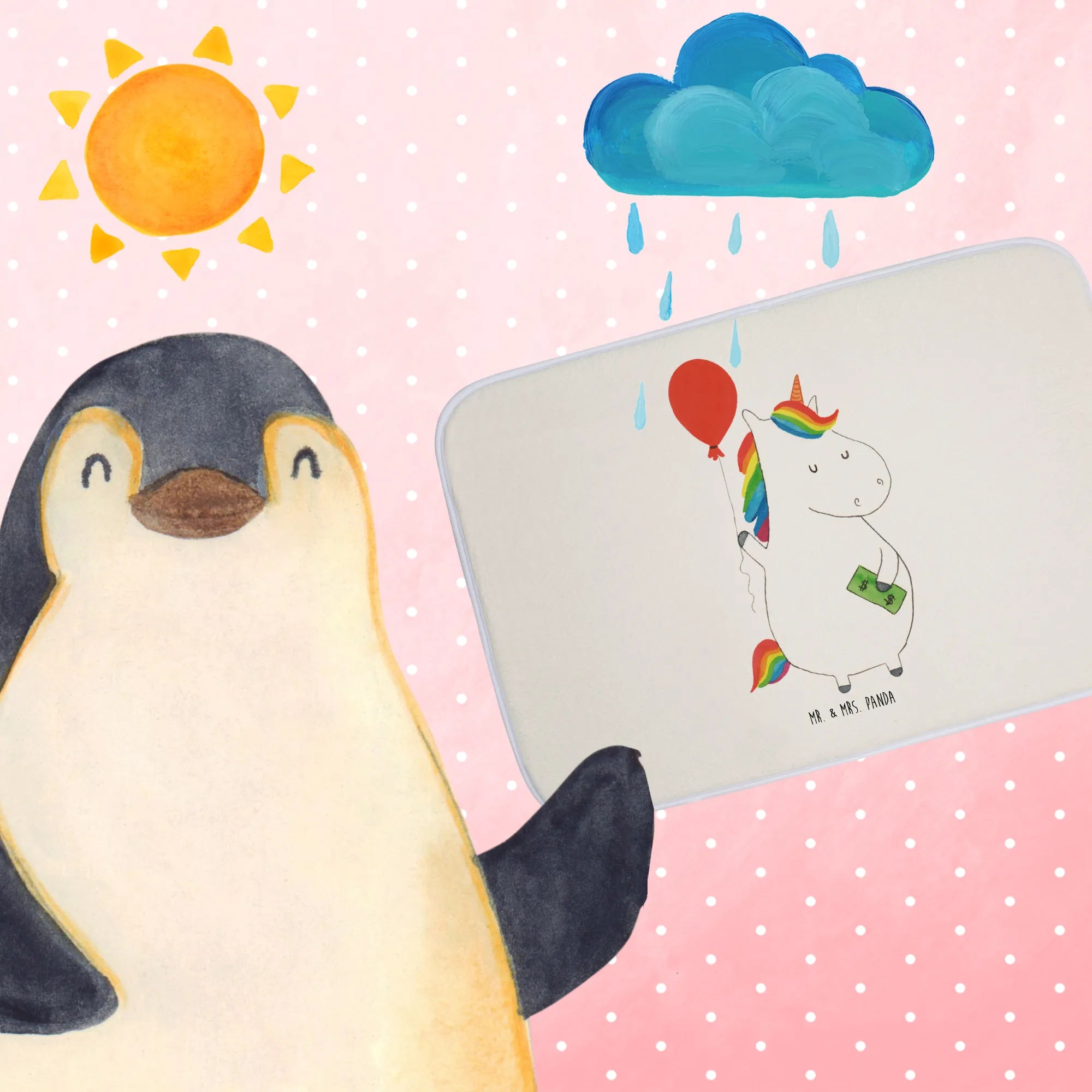Der Badvorleger mit dem bezaubernden Einhorn Luftballon von Mr. & Mrs. Panda ist das perfekte Geschenk für alle, die Einhörner lieben! 🦄 Dieser besonders flauschige Badezimmerteppich sorgt nicht nur für eine tolle Optik in Deinem Badezimmer, sondern ist auch absolut praktisch.