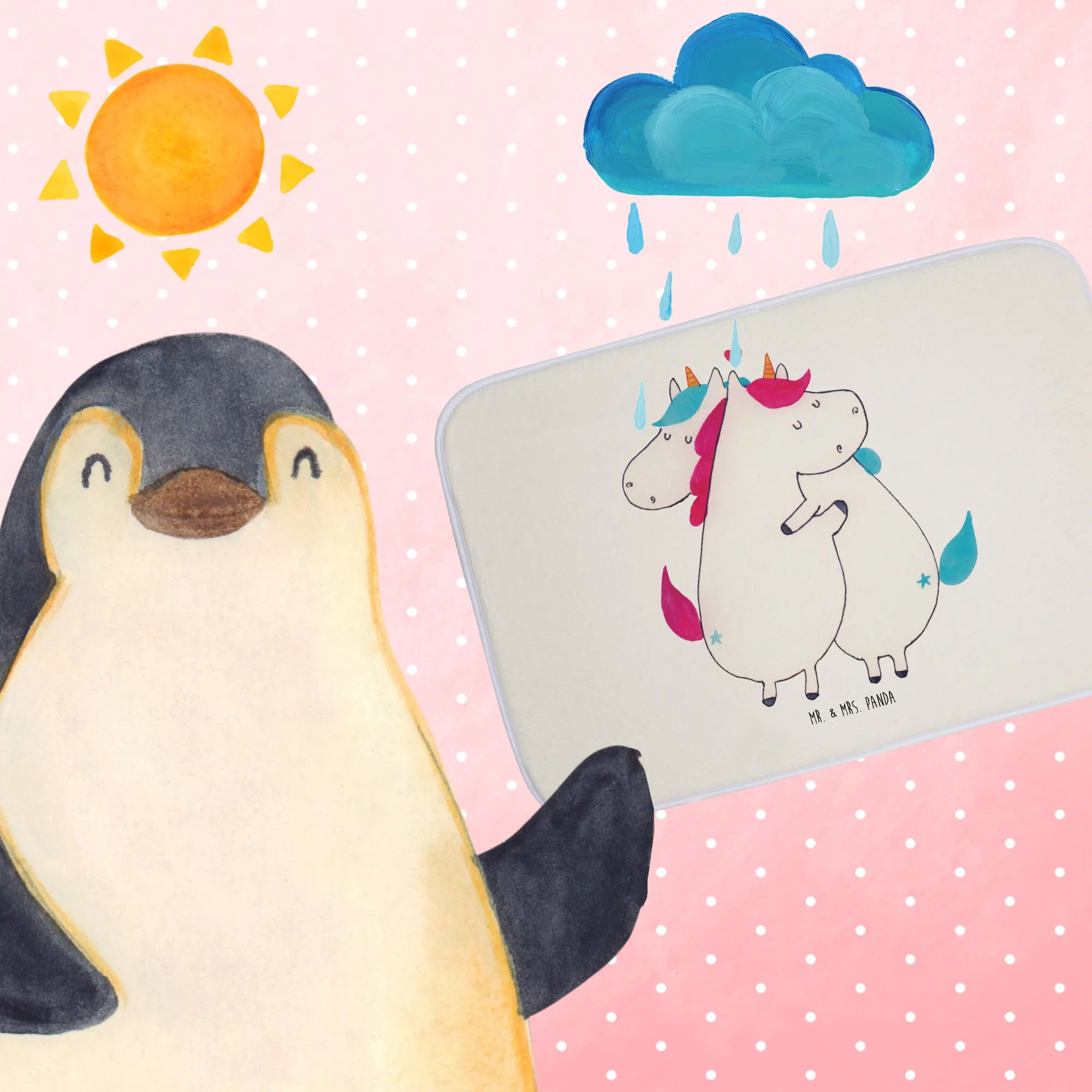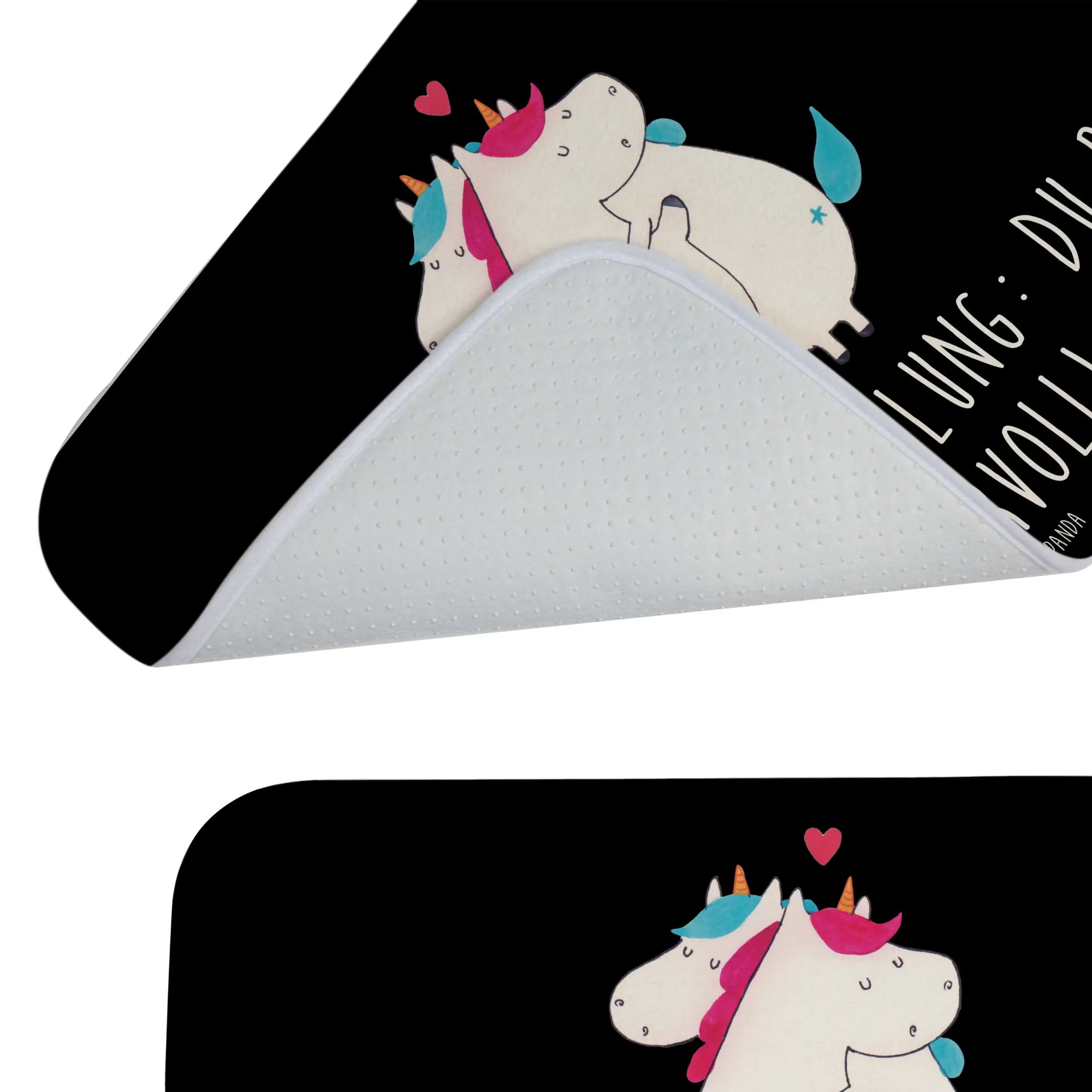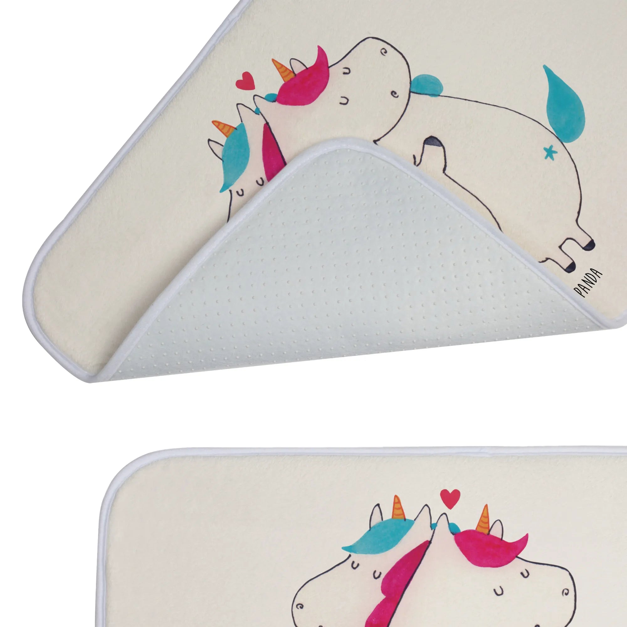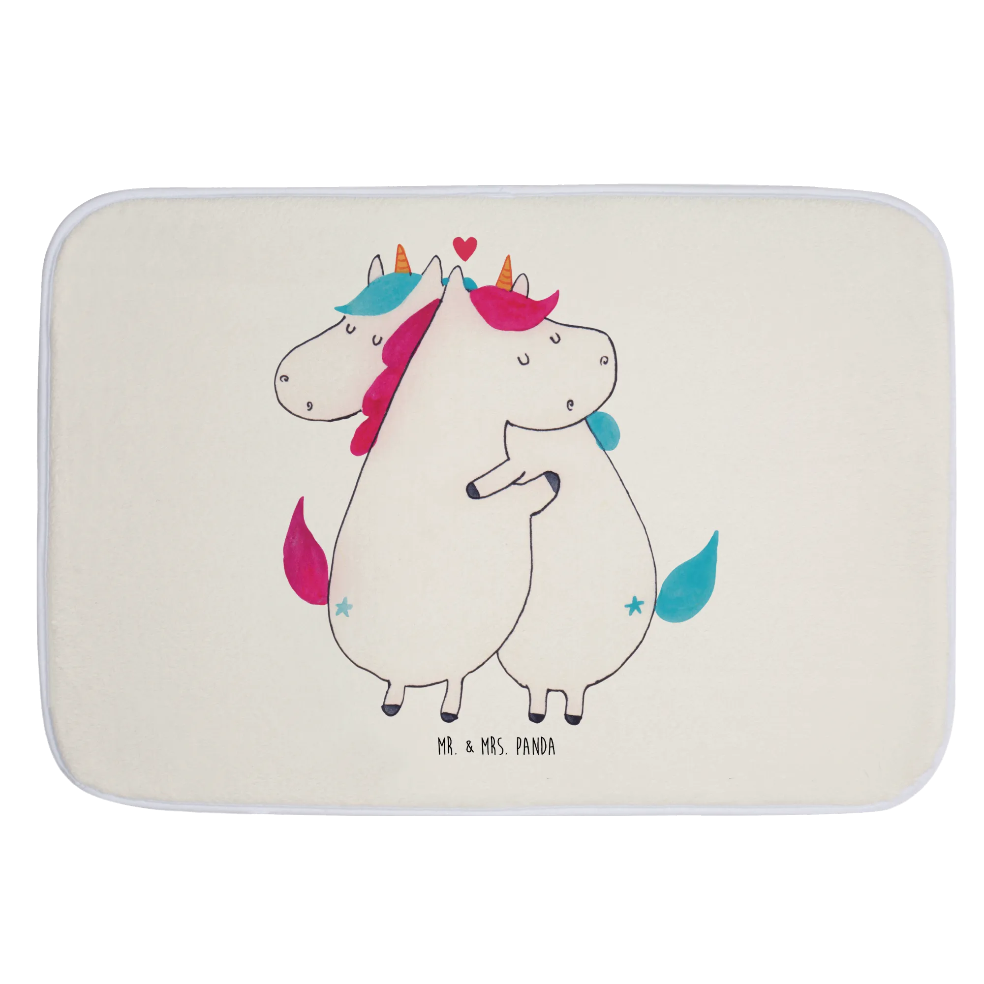 Verschenke Freude und Liebe mit diesem einzigartigen Badvorleger. Jeder Blick auf die süßen Einhörner, die sich als perfekte Partner umarmen, wird die Herzen Deiner Lieben erwärmen und sie daran erinnern, wie wundervoll sie sind. Ob für Partner, Freunde oder Familienmitglieder – dieser Badvorleger ist ein durch und durch liebevolles Geschenk, das in jedes Zuhause gehört. Mit dem Badvorleger von Mr. & Mrs. Panda bringst Du nicht nur Farbe, sondern auch eine Portion Herz und Humor in Dein Badezimmer. Erlebe mit jedem Schritt die Magie von Einhörnern und die Botschaft der Zuneigung!
