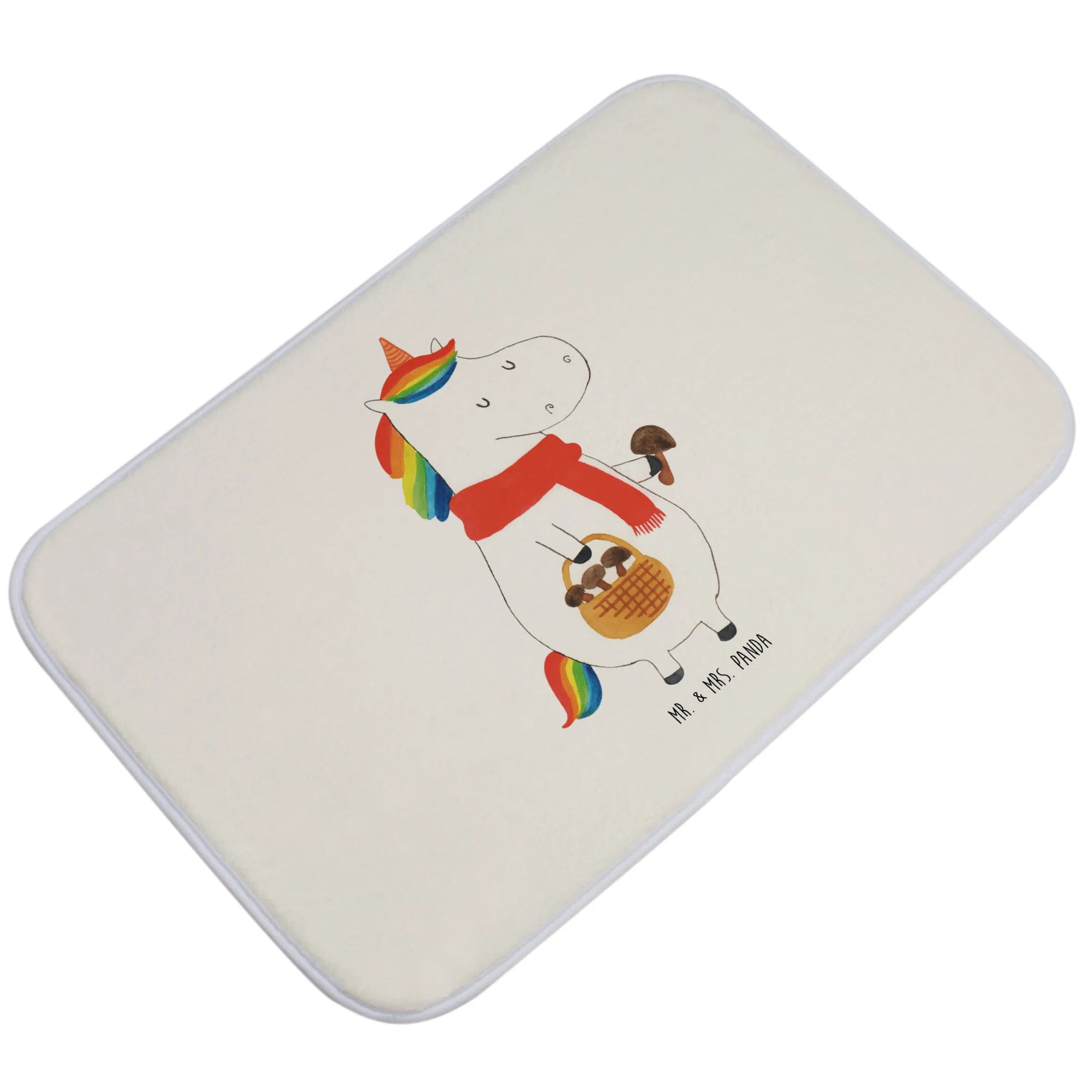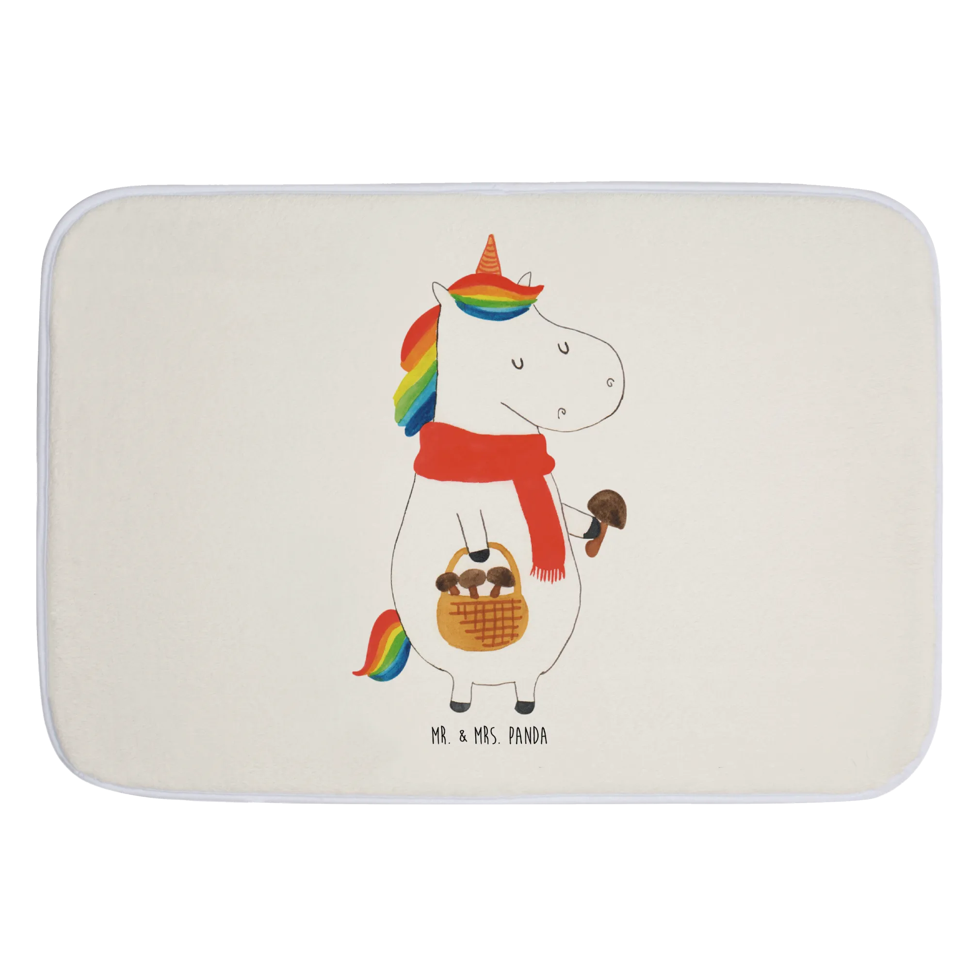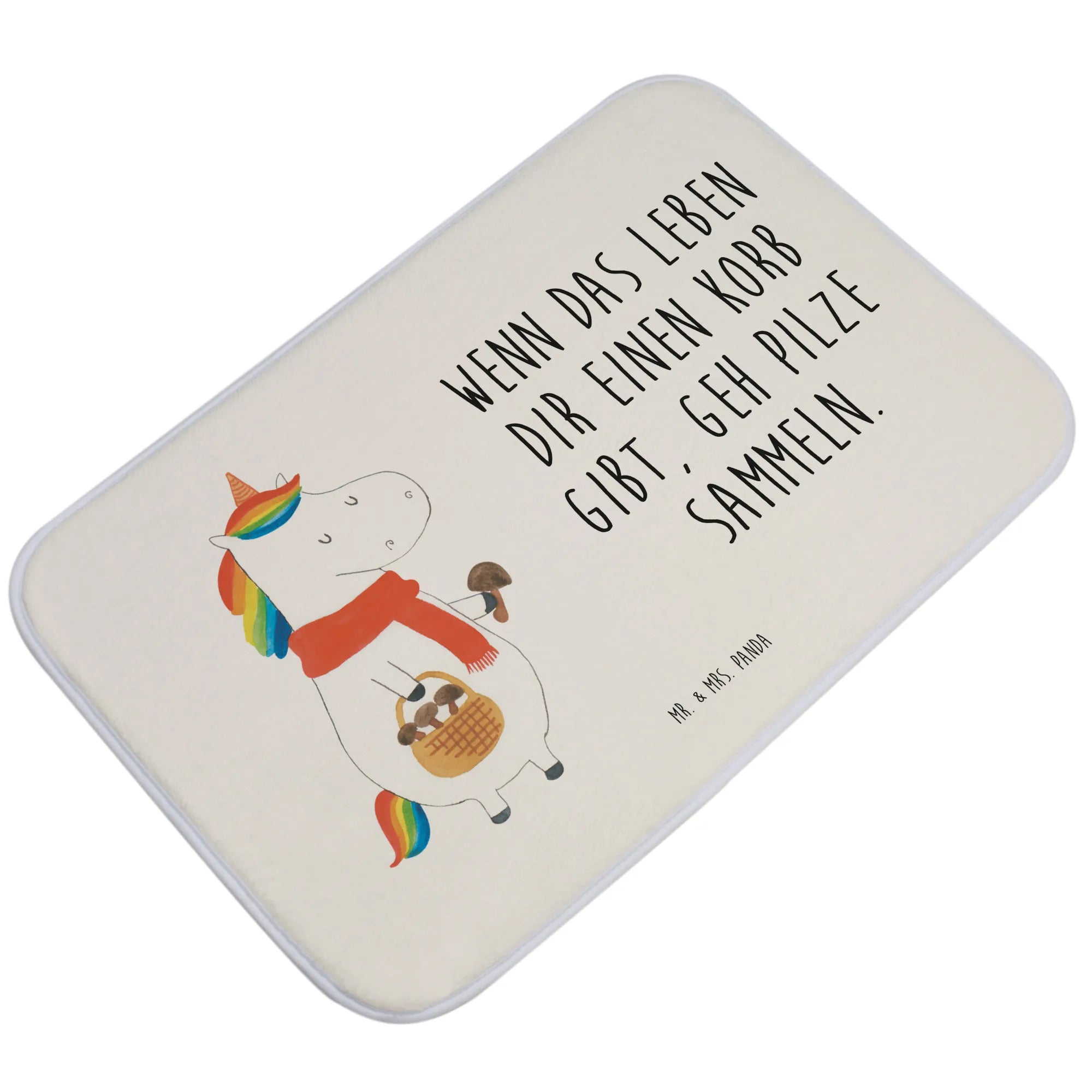 Der perfekte Badvorleger von Mr. & Mrs. Panda vereint Funktionalität mit zauberhaftem Design. Dieser Badvorleger mit dem Motiv "Einhorn Pilz" ist nicht nur ein Blickfang, sondern sorgt dank seiner rutschfesten Gummibeschichtung auch für Sicherheit in deinem Badezimmer.