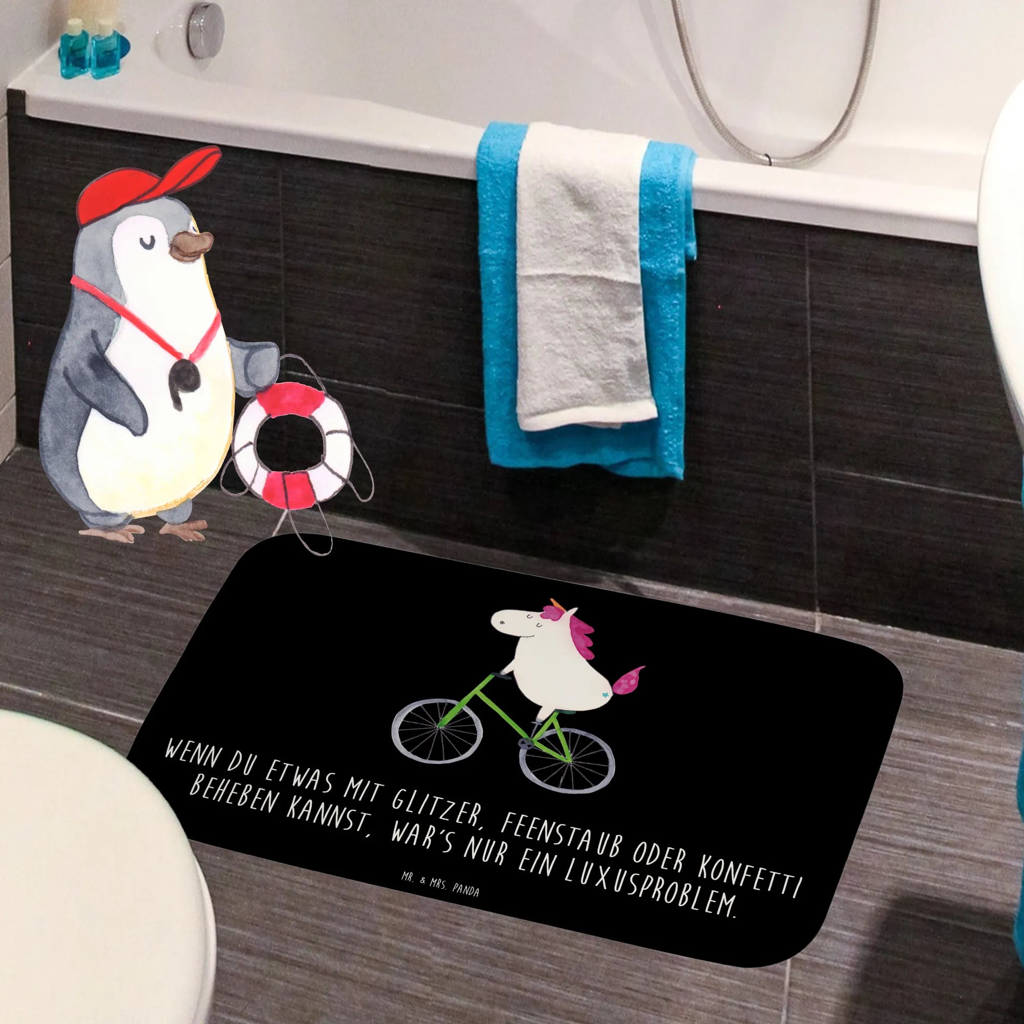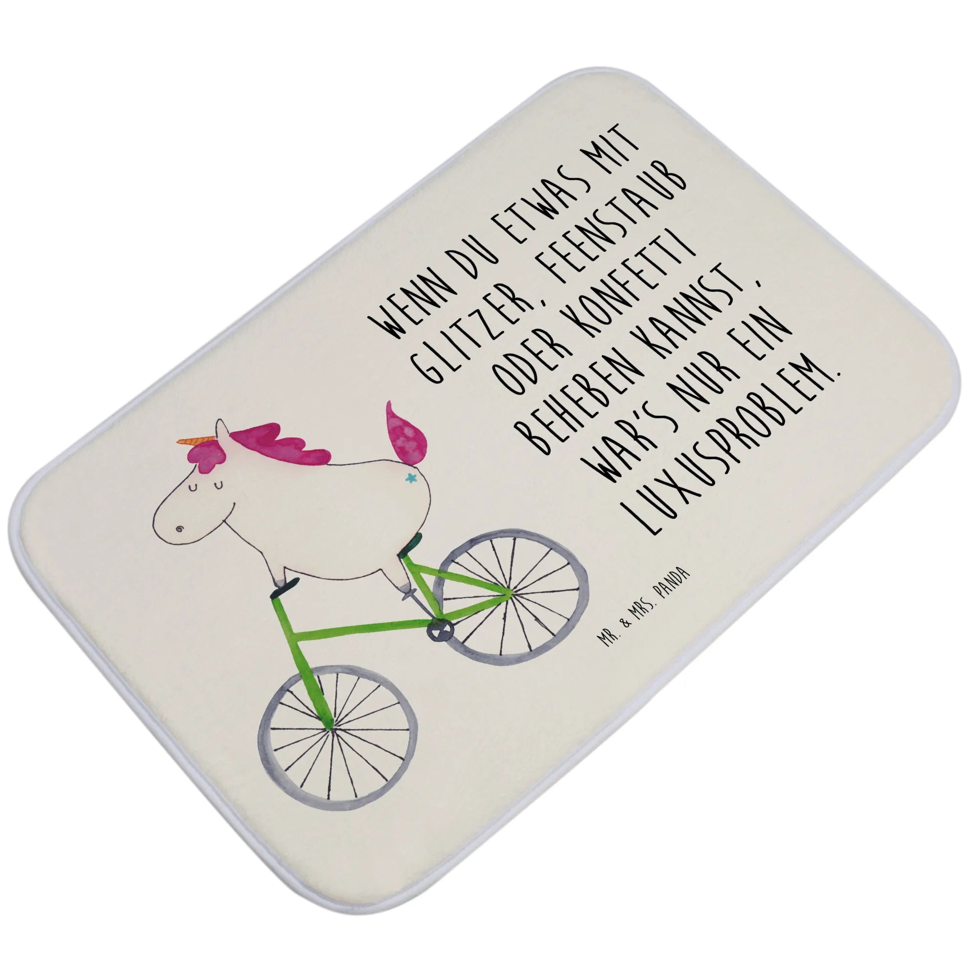 Lass dir diese Gelegenheit nicht entgehen - gerade jetzt ist der ideale Moment, um deinem Badezimmer mit einem besonderen Stück mehr Liebe zu verleihen! Der Badvorleger ist nicht nur ein praktischer Begleiter, sondern auch ein tolles Deko-Element, das jedem Raum einen besonderen Zauber verleiht. Egal ob zum eigenen Gebrauch oder als Geschenk - mit diesem Badvorleger bringst du ein Stück Einhorn-Magie in dein Leben. Hol dir jetzt dein persönliches Einhorn-Erlebnis nach Hause - mit dem 'Einhorn Radfahrer' Badvorleger von Mr. & Mrs. Panda!