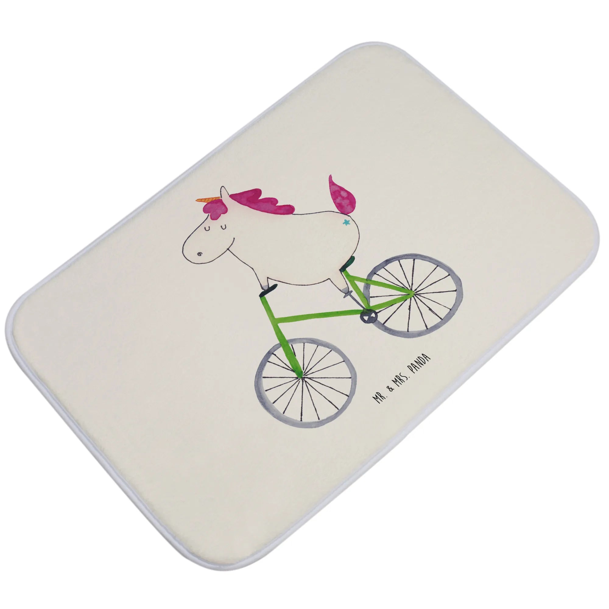 Der Badvorleger Einhorn Radfahrer von Mr. & Mrs. Panda ist nicht nur ein absoluter Blickfang in deinem Badezimmer, sondern auch der perfekte Begleiter für alle Einhorn-Fans! Die liebevoll gestaltete Badematte zeigt ein fröhliches Einhorn, das auf seinem Fahrrad durch ein schimmerndes Universum radelt. Mit diesem besonderen Badteppich bringst du nicht nur ein Lächeln in dein Bad, sondern auch ein Stück Zauber und Freude! 🚴♀️✨