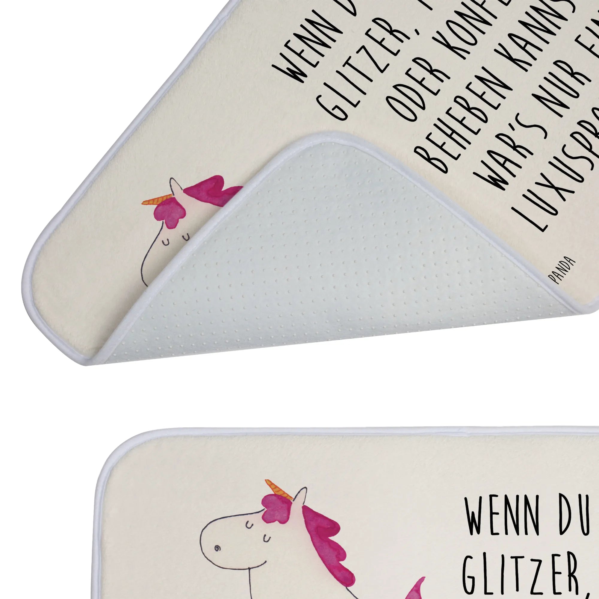 Wenn du also Einhörner liebst und auf der Suche nach einem tollen Produkt bist, das sowohl stylisch als auch funktional ist, dann schau dir unseren tollen Badvorleger an! Er ist waschbar bei 30°C in der Waschmaschine, sodass du ihn immer frisch und sauber halten kannst. Die gesamte Kollektion von Mr. & Mrs. Panda bietet eine Vielzahl an niedlichen Einhorn-Motiven und liebevoll gestalteten Sprüchen, die jedes Badezimmer zu einem Ort voller Freude machen.