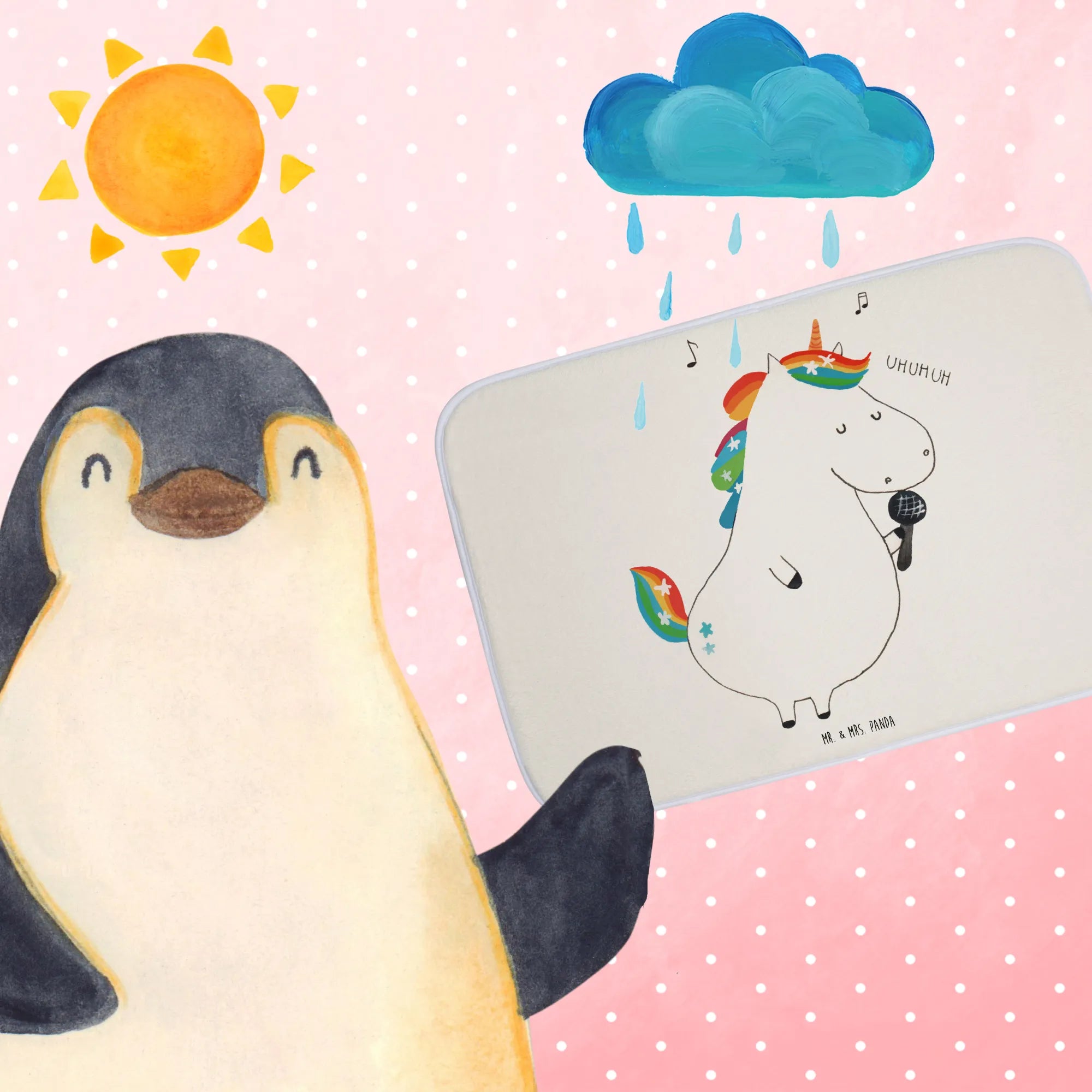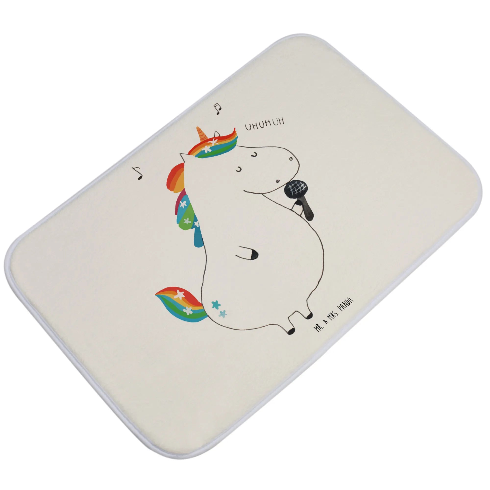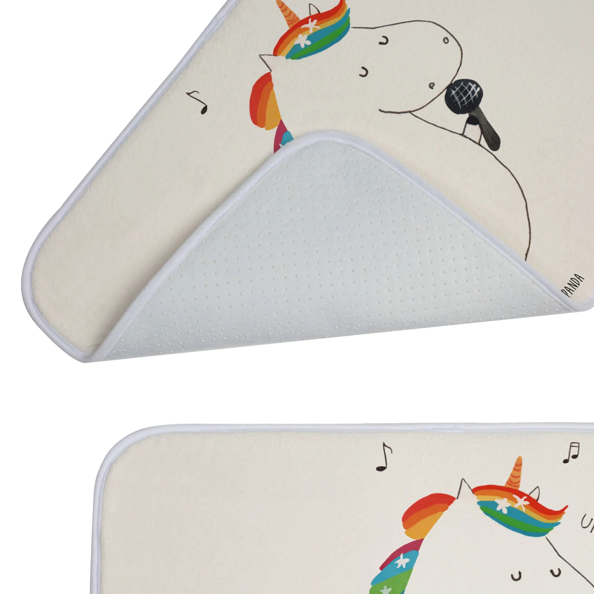 Der Badvorleger Einhorn Sänger von Mr. & Mrs. Panda ist das perfekte Geschenk für alle Einhornliebhaber und die, die es noch werden wollen! Mit einer flauschigen Oberfläche aus hochwertigem Premium Polyester sorgt er nicht nur für eine tolle Optik im Badezimmer, sondern auch für eine einladende Atmosphäre. Das süße Motiv zeigt ein einhörniges Wesen, das begeistert in ein Mikrofon singt, und bringt damit den Glamour einer Disco direkt in dein Badezimmer.