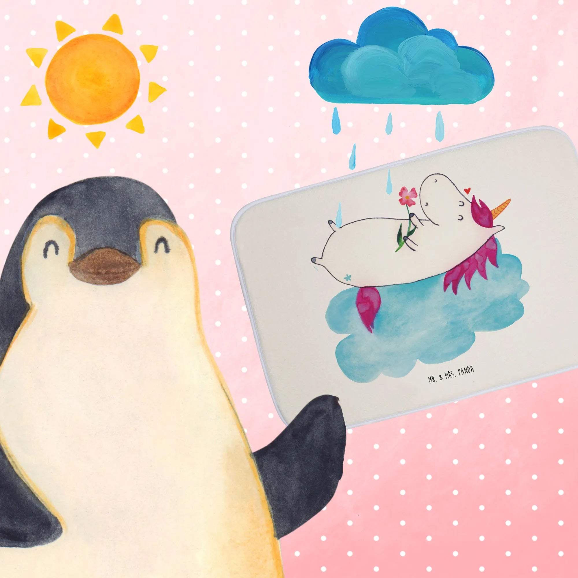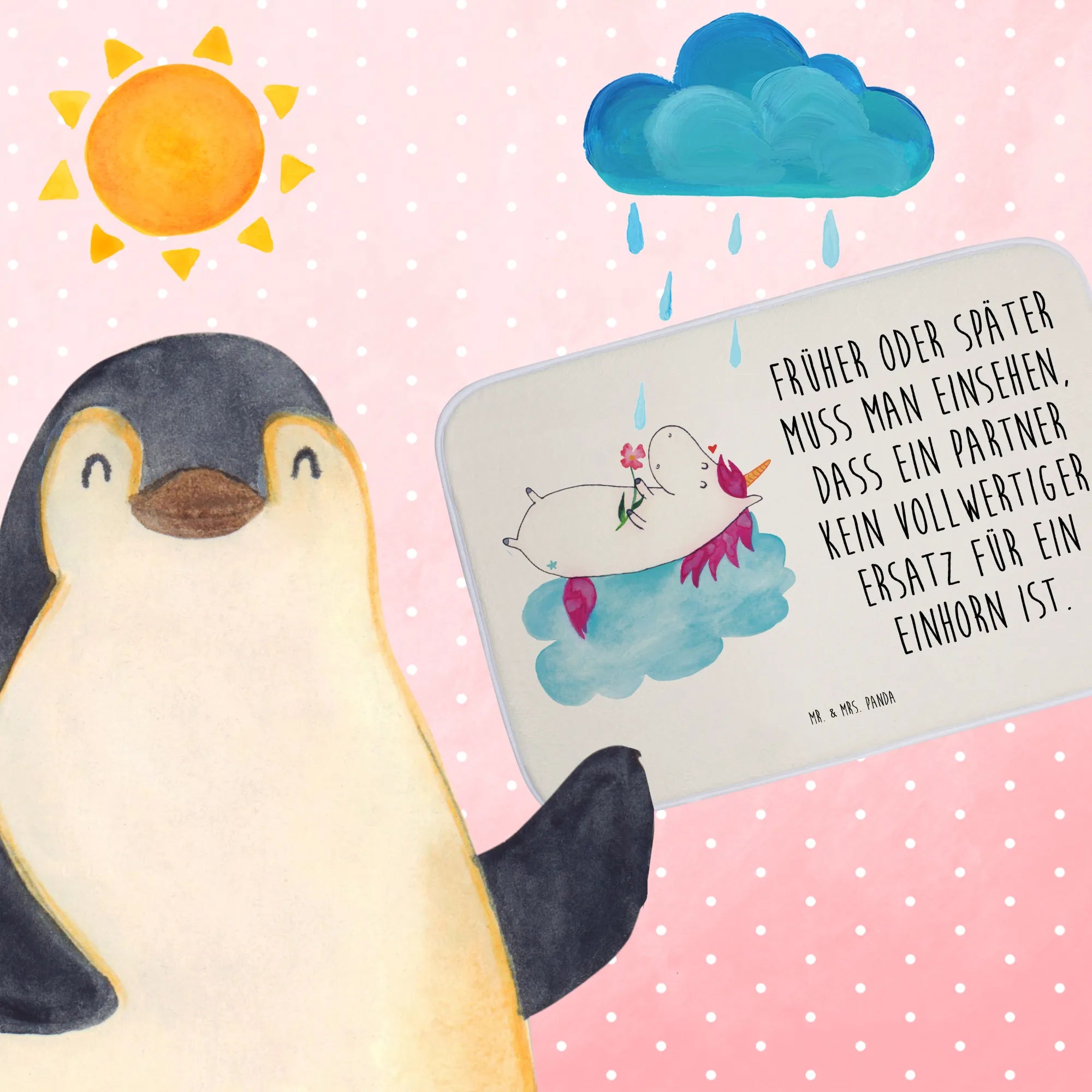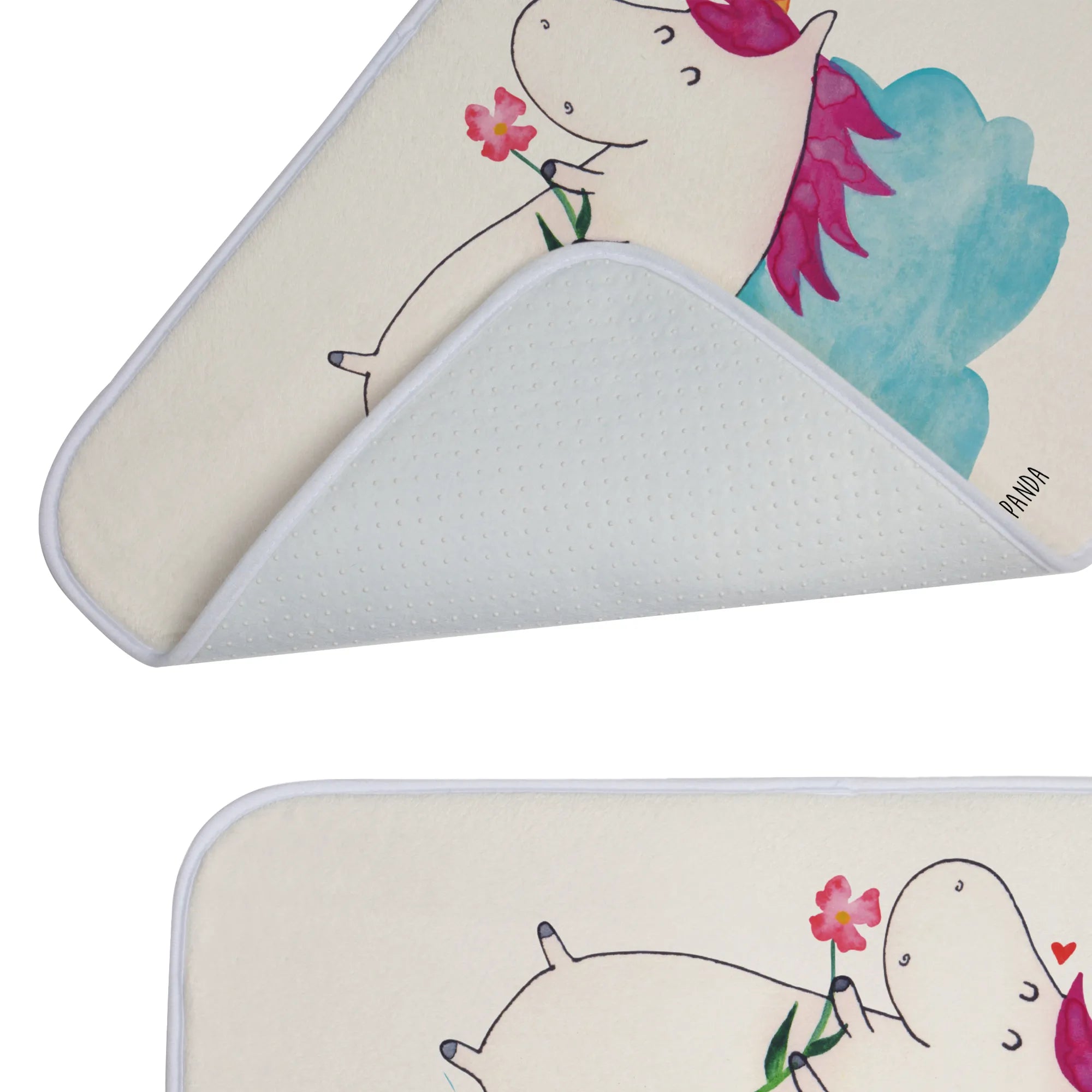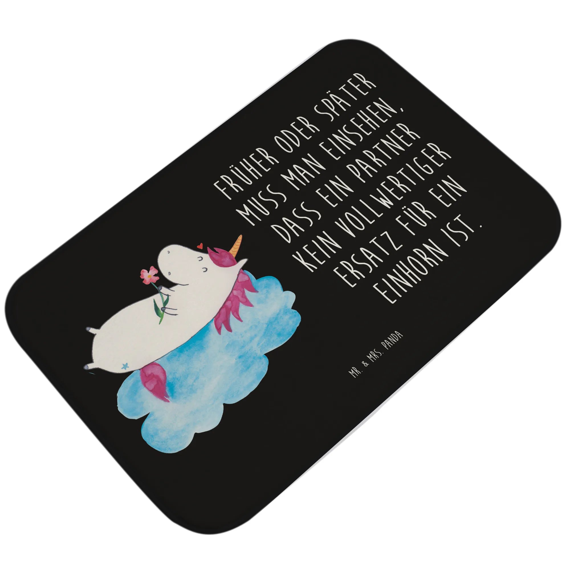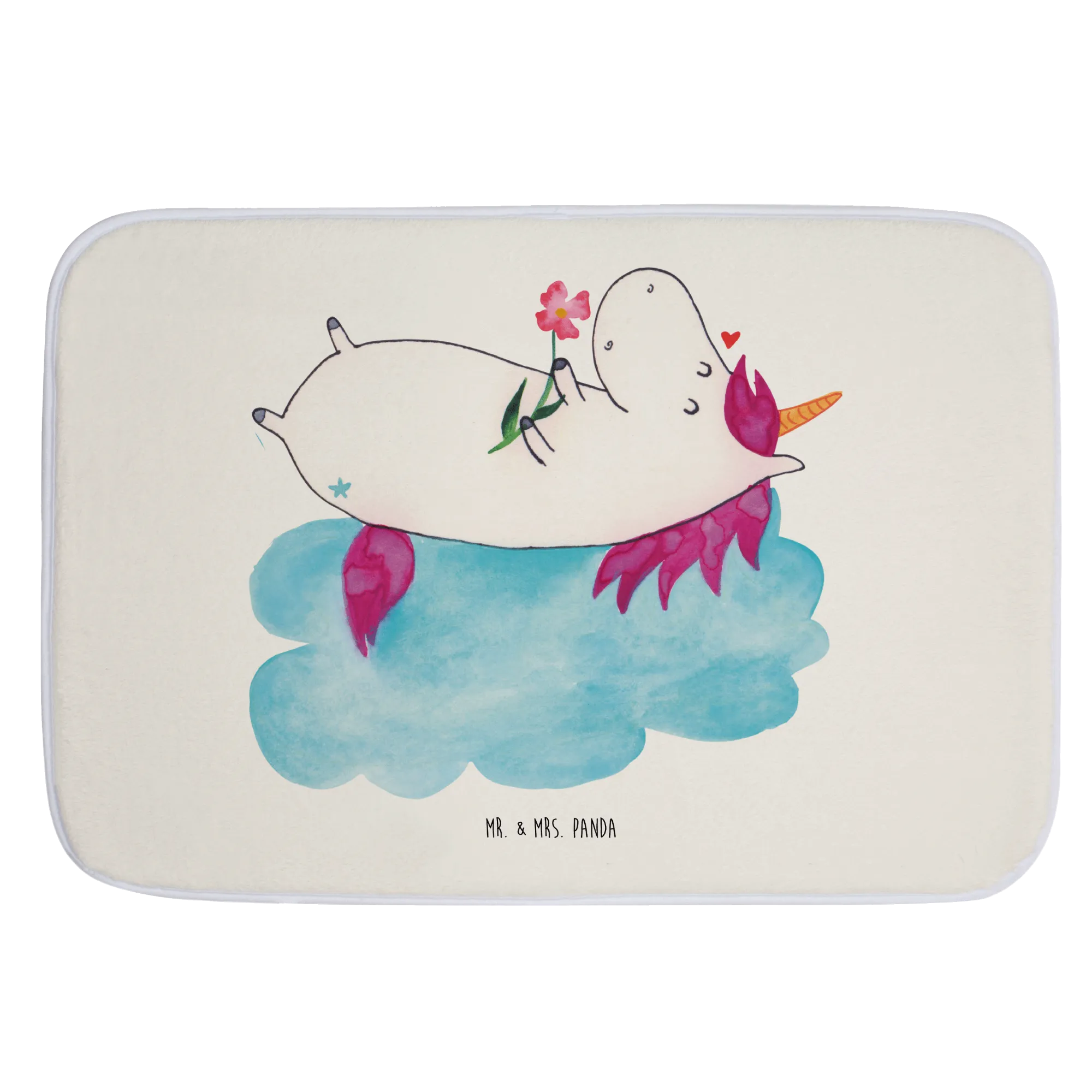 Entdecke die magische Welt des Einhorns mit unserem Badvorleger "Einhorn verliebt auf Wolke" aus der bezaubernden Einhorn-Kollektion von Mr. & Mrs. Panda!