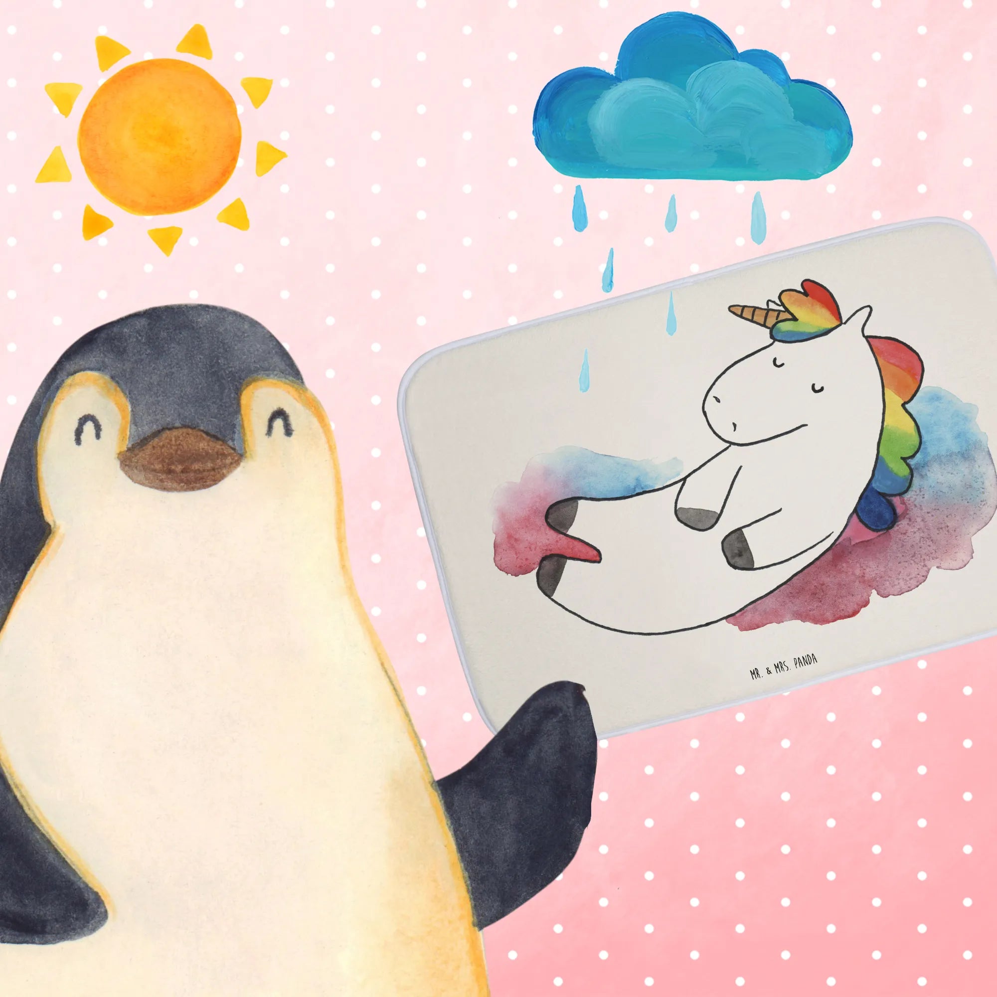 Entdecke die zauberhafte Badematte aus der Einhorn-Kollektion von Mr. & Mrs. Panda! 🦄 Mit ihrem witzigen Motiv des entspannen Einhorns auf Wolke 7, ist dieser Badvorleger nicht nur ein echtes Highlight für dein Badezimmer, sondern auch sehr funktional.