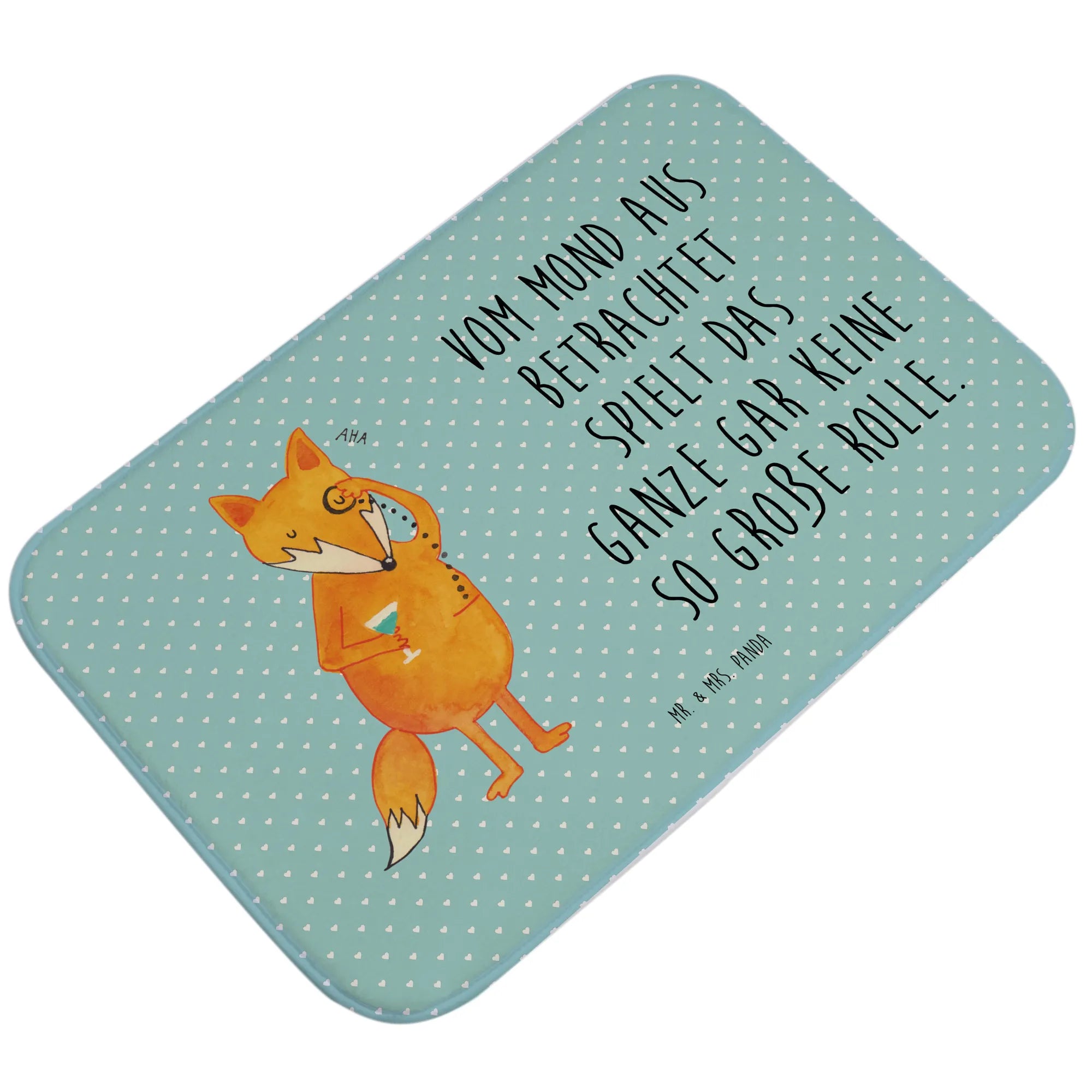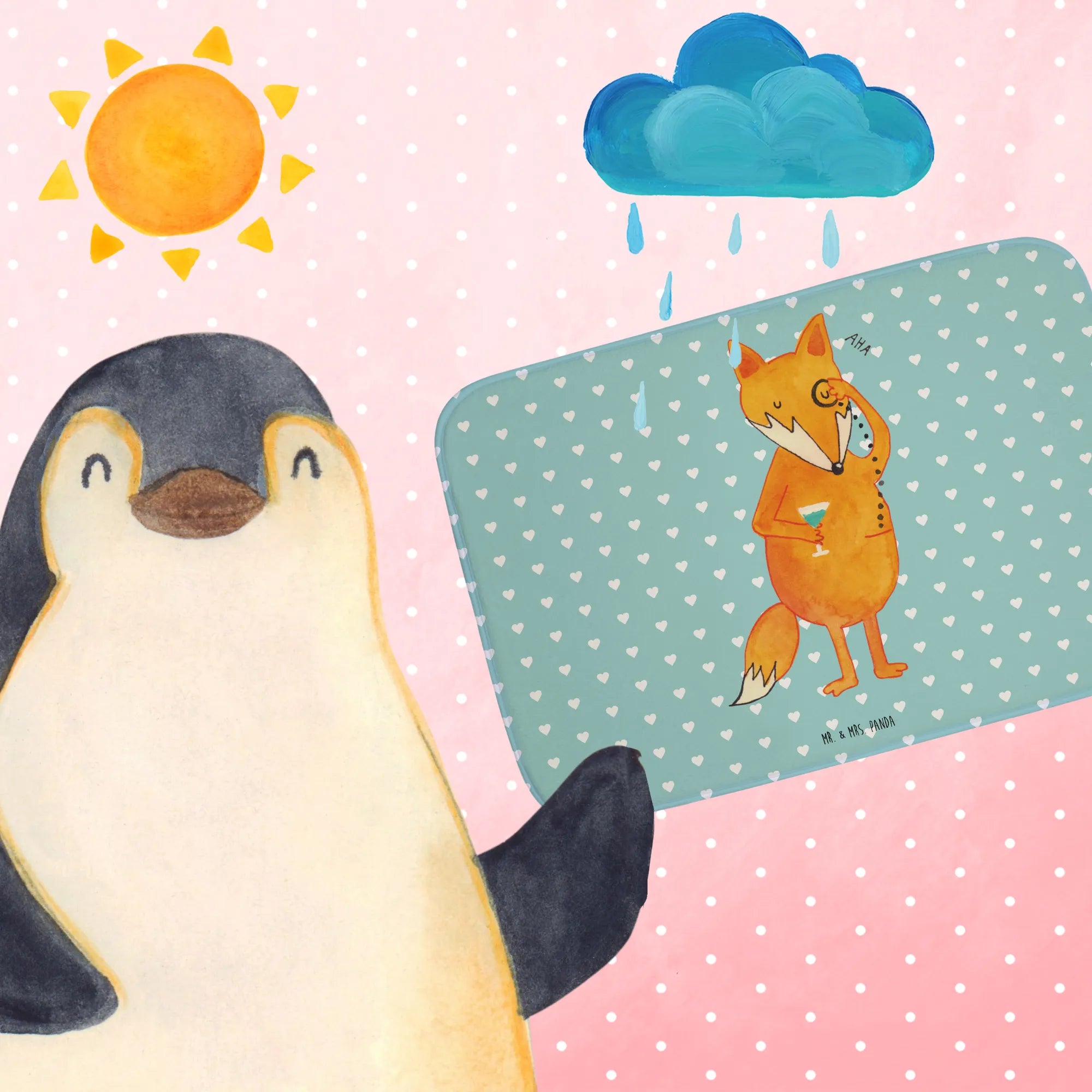Dieser Badteppich, bedruckt mit einem liebevoll gestalteten Fuchs, der mit einem Monokel die Welt beobachtet, ist ein echter Blickfang. Die bunte, lebhafte Illustration wurde mit viel Liebe zum Detail handgezeichnet. Die Fuchs Kollektion von Mr. & Mrs. Panda zeigt die geselligen und schlauen Eigenschaften dieser wunderbaren Waldtiere. Ideal, um einem Freund oder einer Freundin, die etwas Trost braucht, eine Freude zu machen, oder einfach um sich selbst ein Stückchen Wohlfühlen nach Hause zu holen.