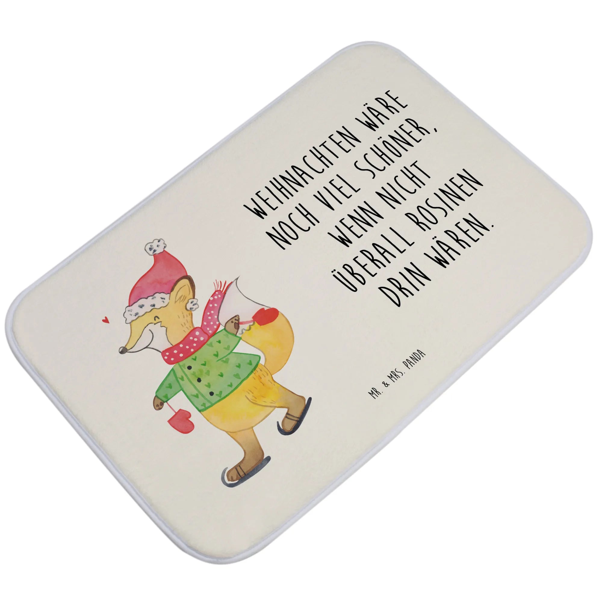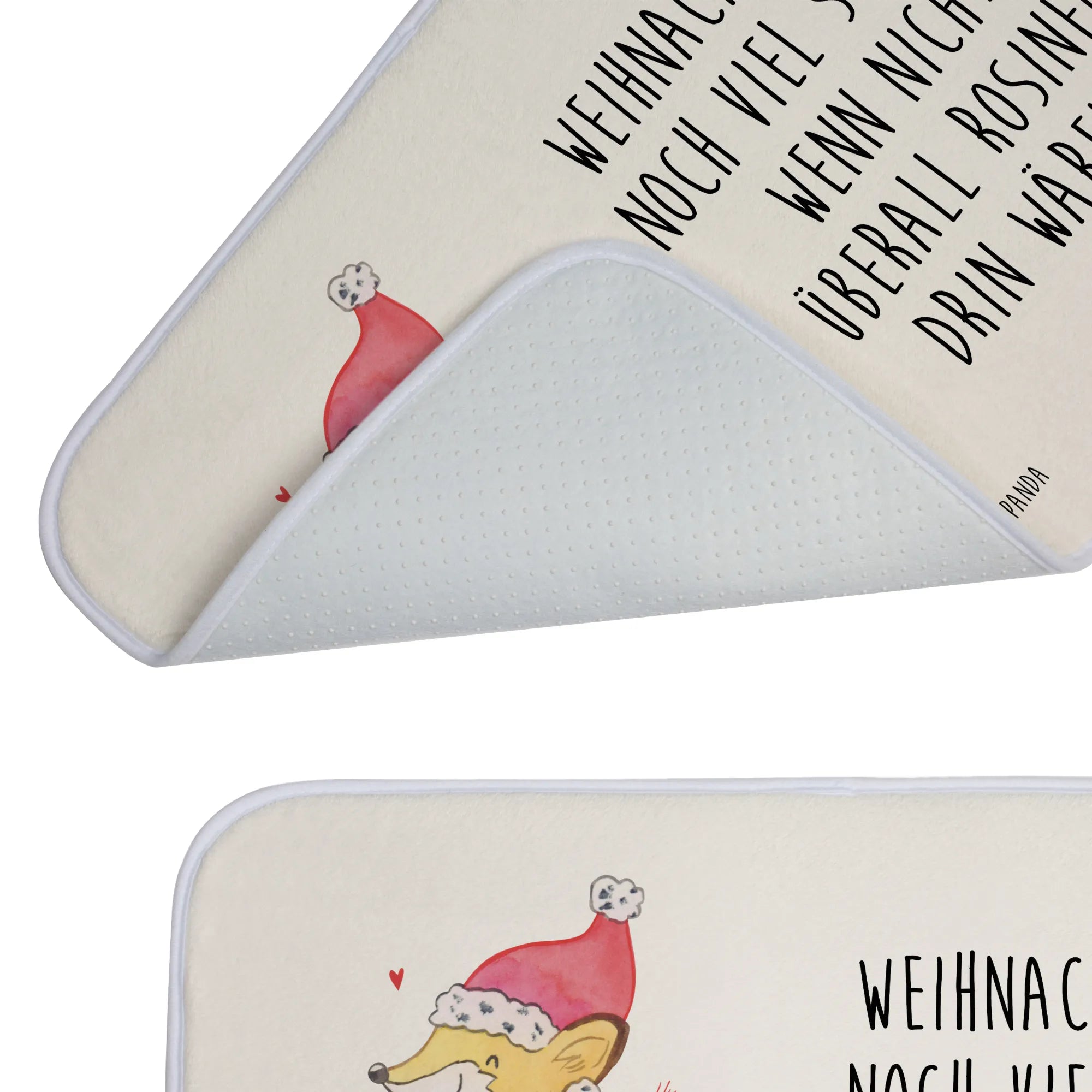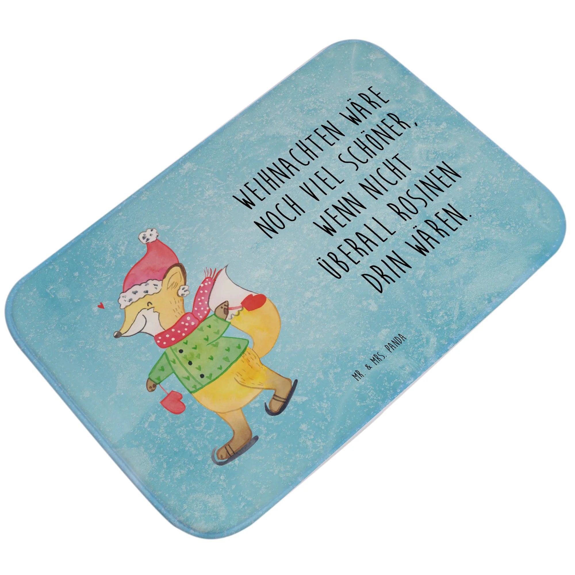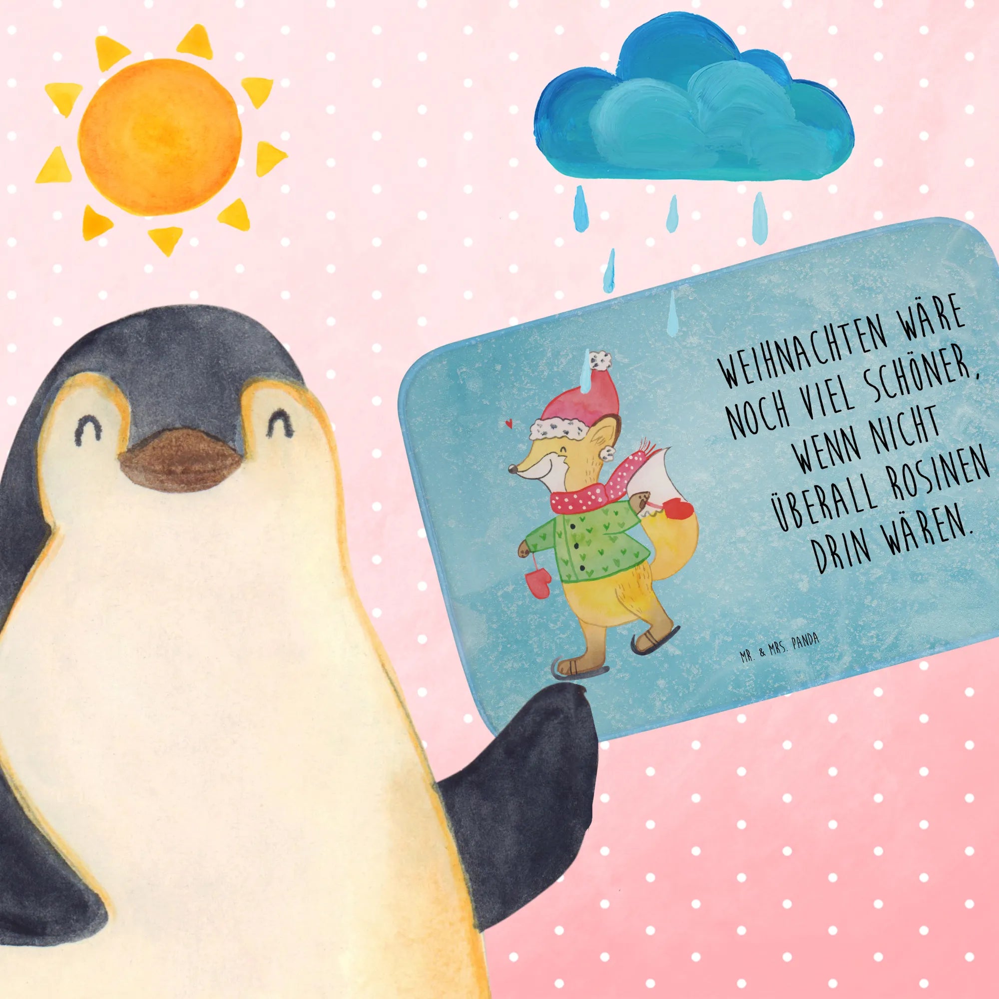 Unsere Badematte „Fuchs Schlittschuhe" aus der Winter Kollektion von Mr. & Mrs. Panda bringt sofort Weihnachtsstimmung in dein Zuhause. Auf einem eisblauen Hintergrund trägt ein fröhlicher Fuchs Schlittschuhe, grünen Mantel, roten Schal und eine passende Weihnachtsmütze. Der freche Spruch „Weihnachten wäre noch viel schöner, wenn nicht überall Rosinen drin wären.” rundet das Motiv charmant ab und sorgt für Schmunzeln bei Groß und Klein.