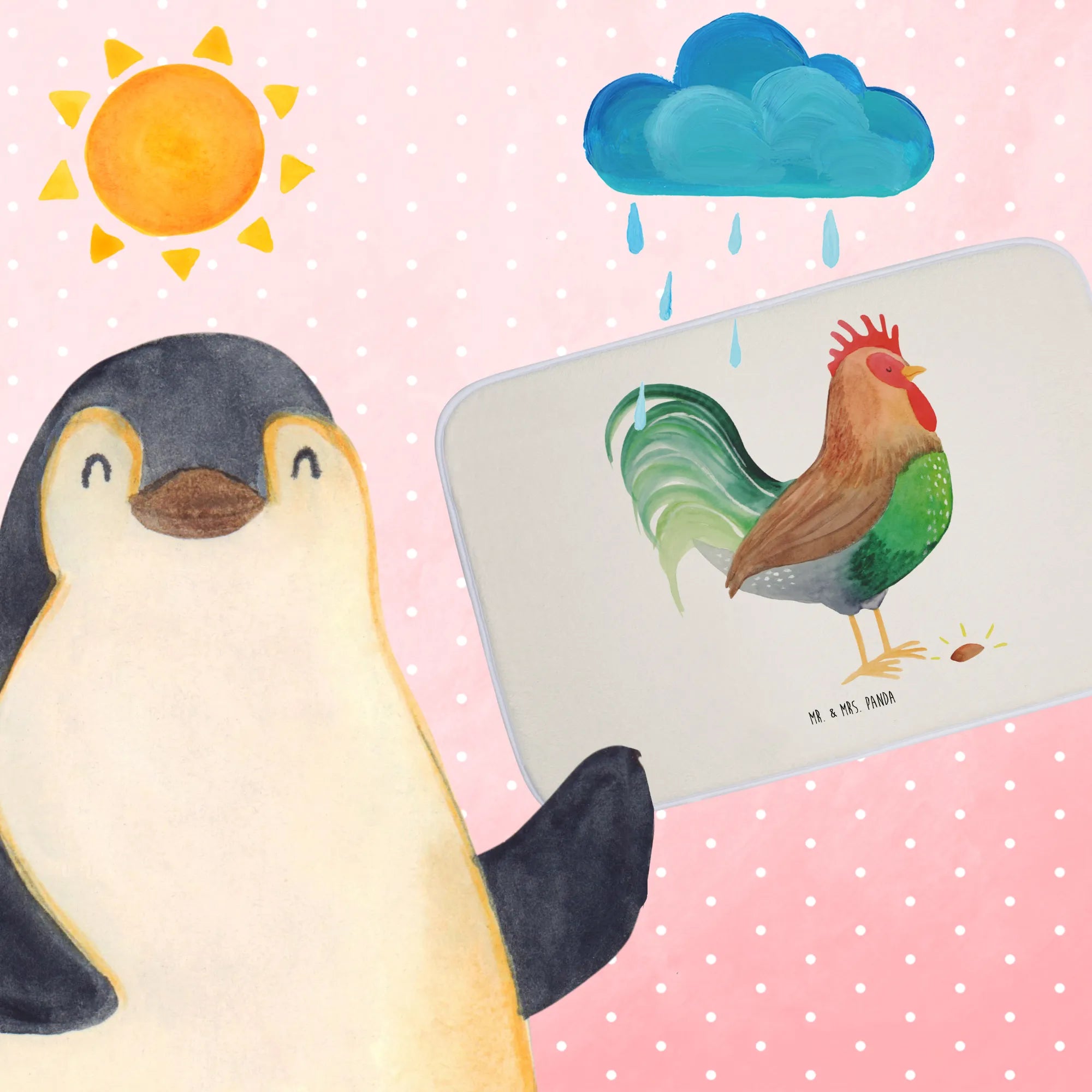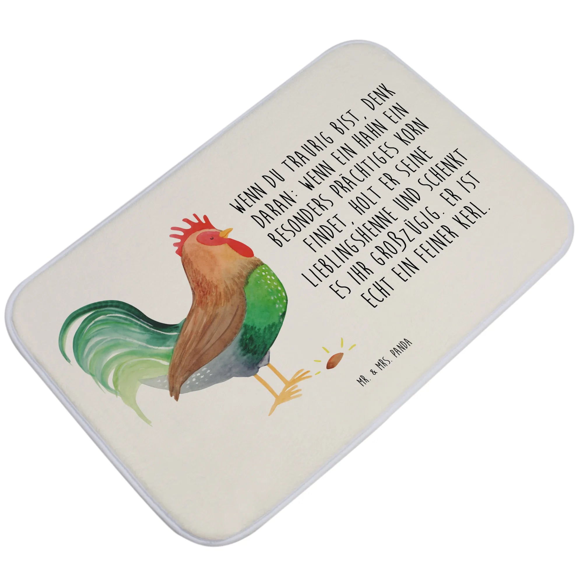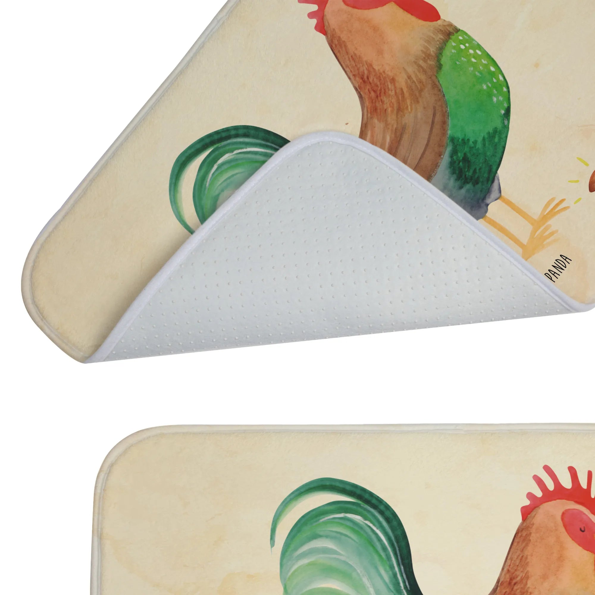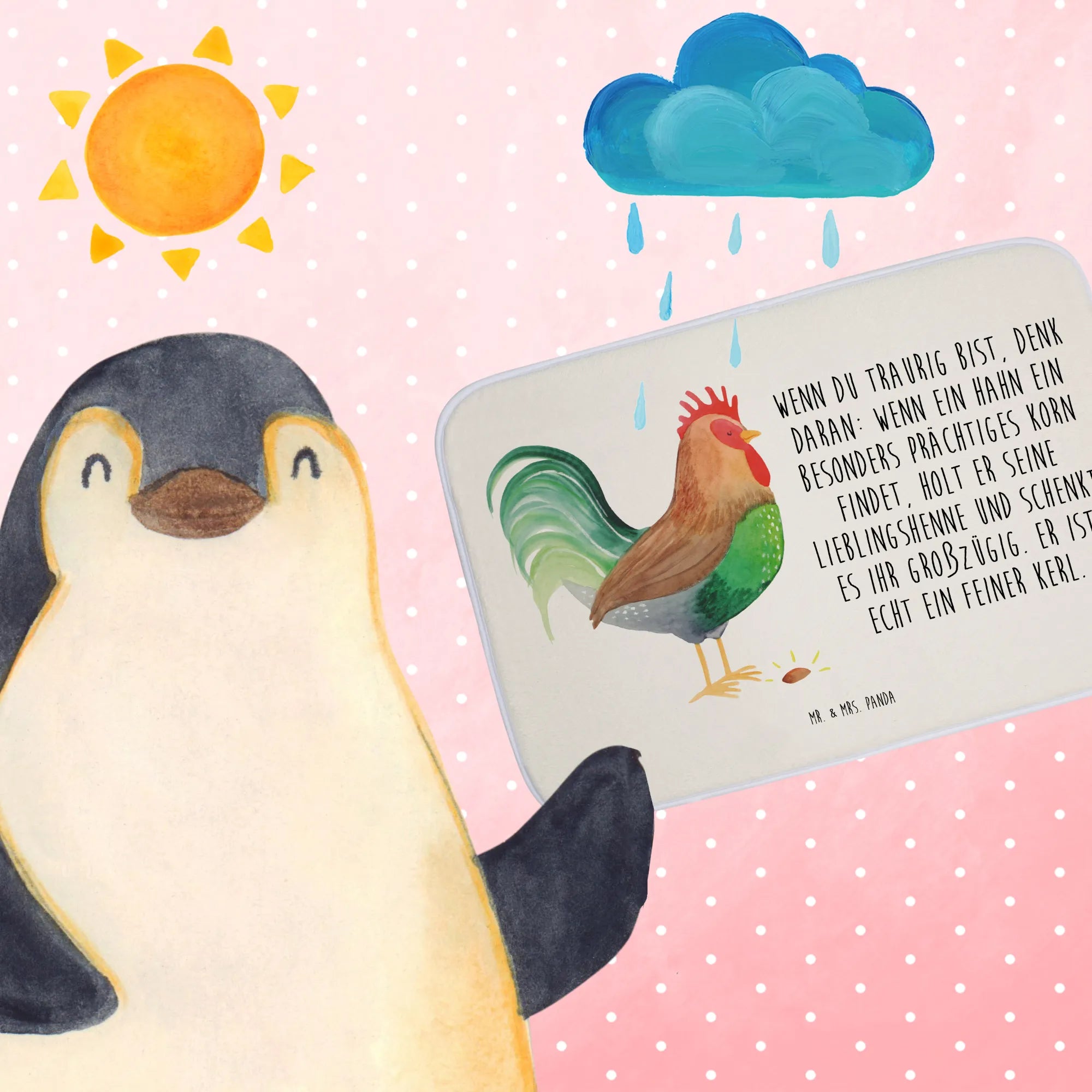 Willkommen zu unserem schönsten Badvorleger von Mr. & Mrs. Panda, dem Badvorleger Hahn mit Korn. Dieser liebevoll gestaltete Badteppich ist nicht nur ein echter Blickfänger in deinem Badezimmer, sondern bietet auch einen hohen Komfort. Auf einer Größe von 590 mm x 400 mm sorgt die flauschige Premium Kunstfaser für ein angenehmes Gefühl unter den Füßen.