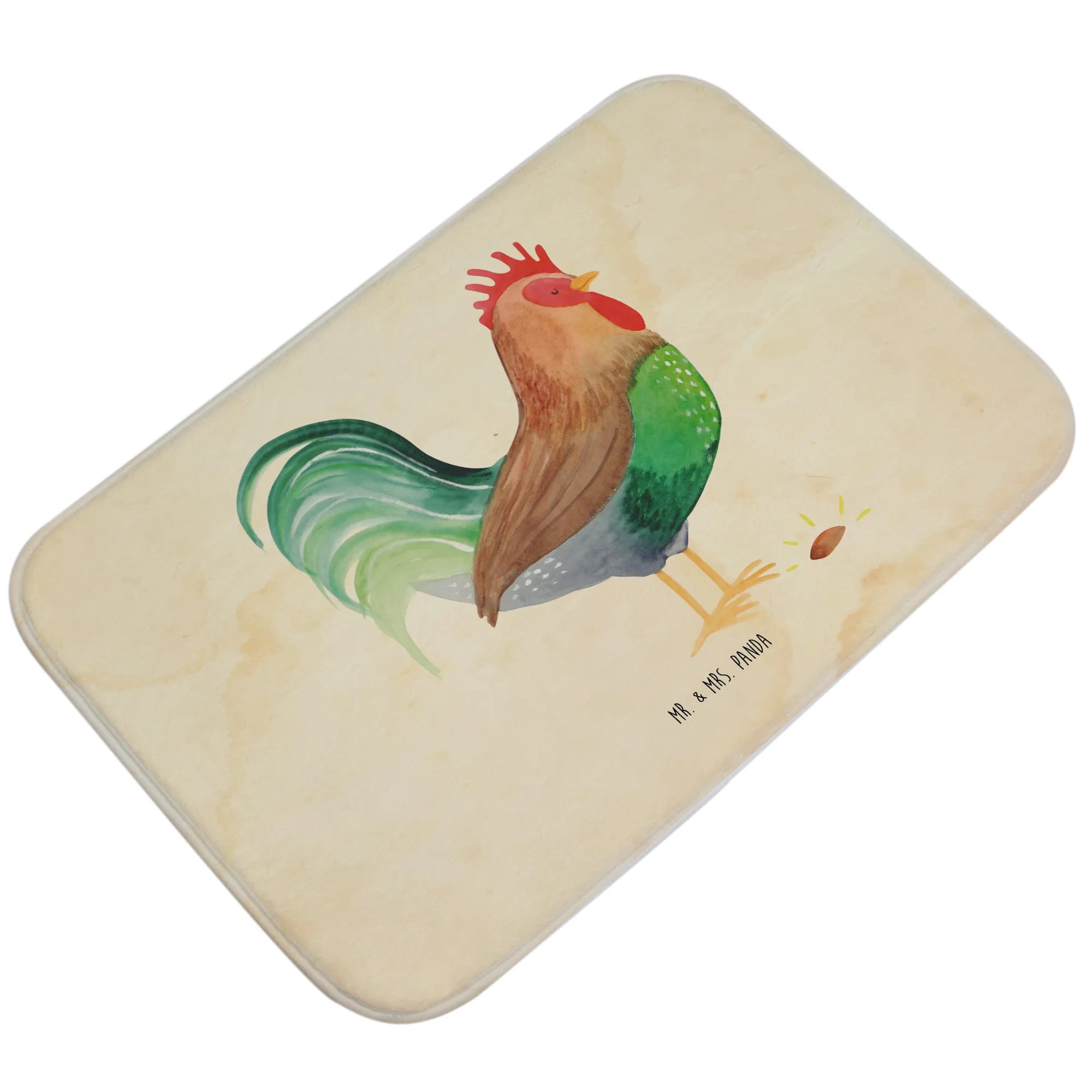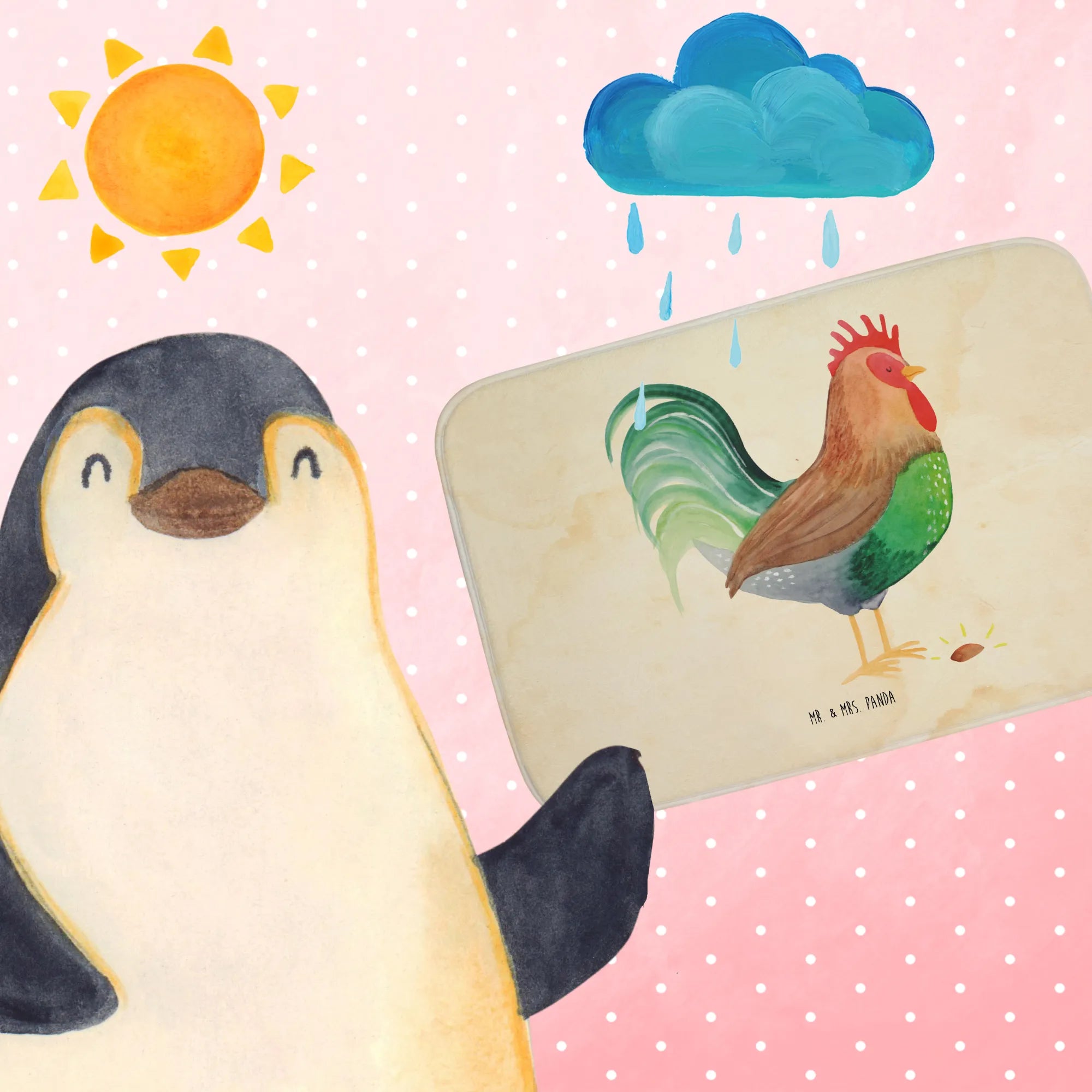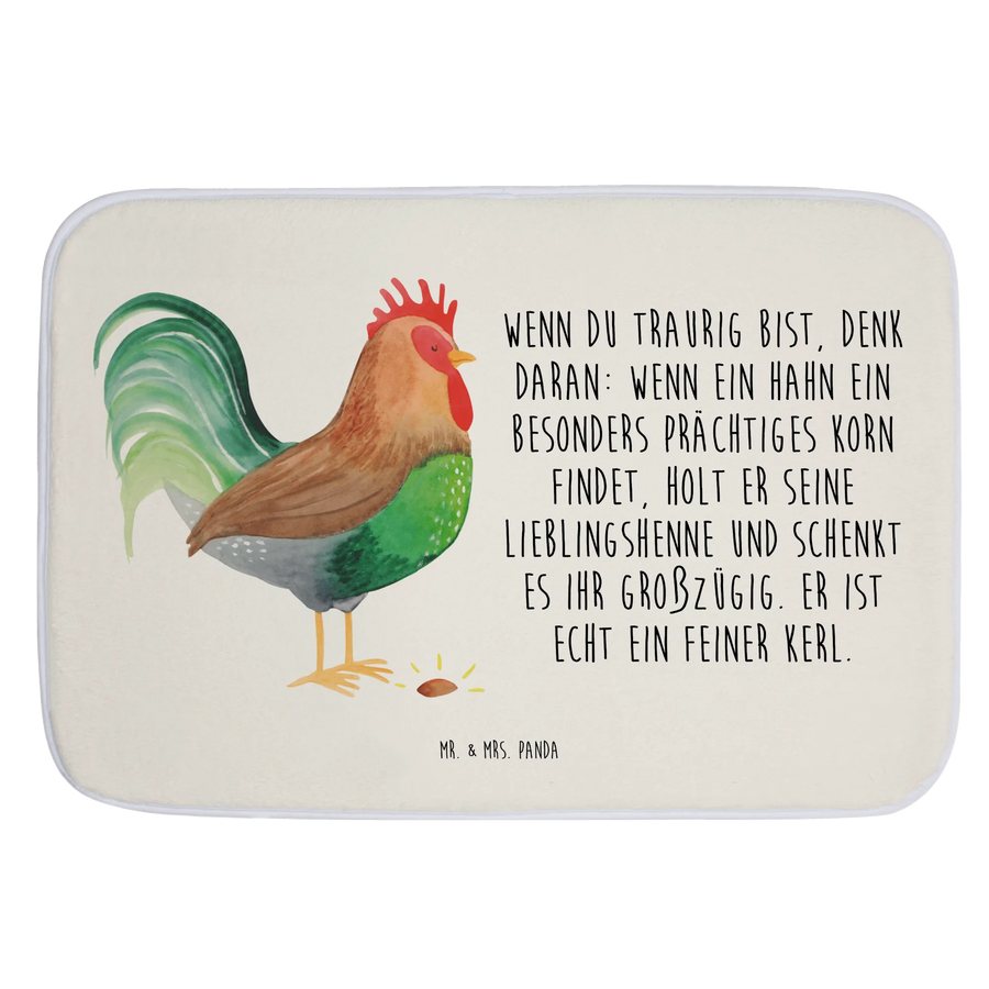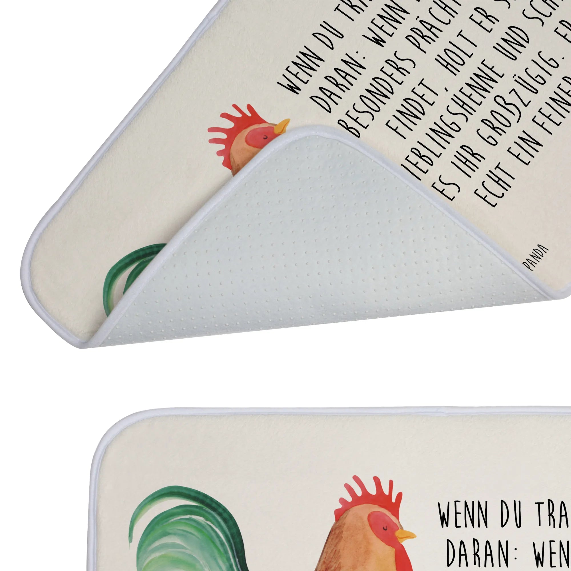 Willkommen zu unserem schönsten Badvorleger von Mr. & Mrs. Panda, dem Badvorleger Hahn mit Korn. Dieser liebevoll gestaltete Badteppich ist nicht nur ein echter Blickfänger in deinem Badezimmer, sondern bietet auch einen hohen Komfort. Auf einer Größe von 590 mm x 400 mm sorgt die flauschige Premium Kunstfaser für ein angenehmes Gefühl unter den Füßen.