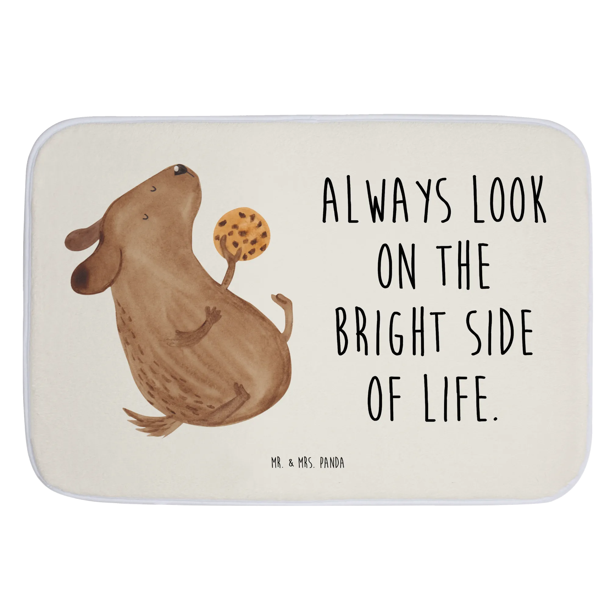 Der Badvorleger Hund Keks aus der Hunde Kollektion von Mr. & Mrs. Panda ist mehr als nur ein praktisches Accessoire für dein Badezimmer. Mit seiner liebevoll designten Vorderseite, die einen süßen Hund zeigt, der begeistert einen Keks isst, bringt er nicht nur gute Laune in deinen Raum, sondern sorgt auch für ein sicheres Gefühl beim Betreten der Dusche oder Badewanne.