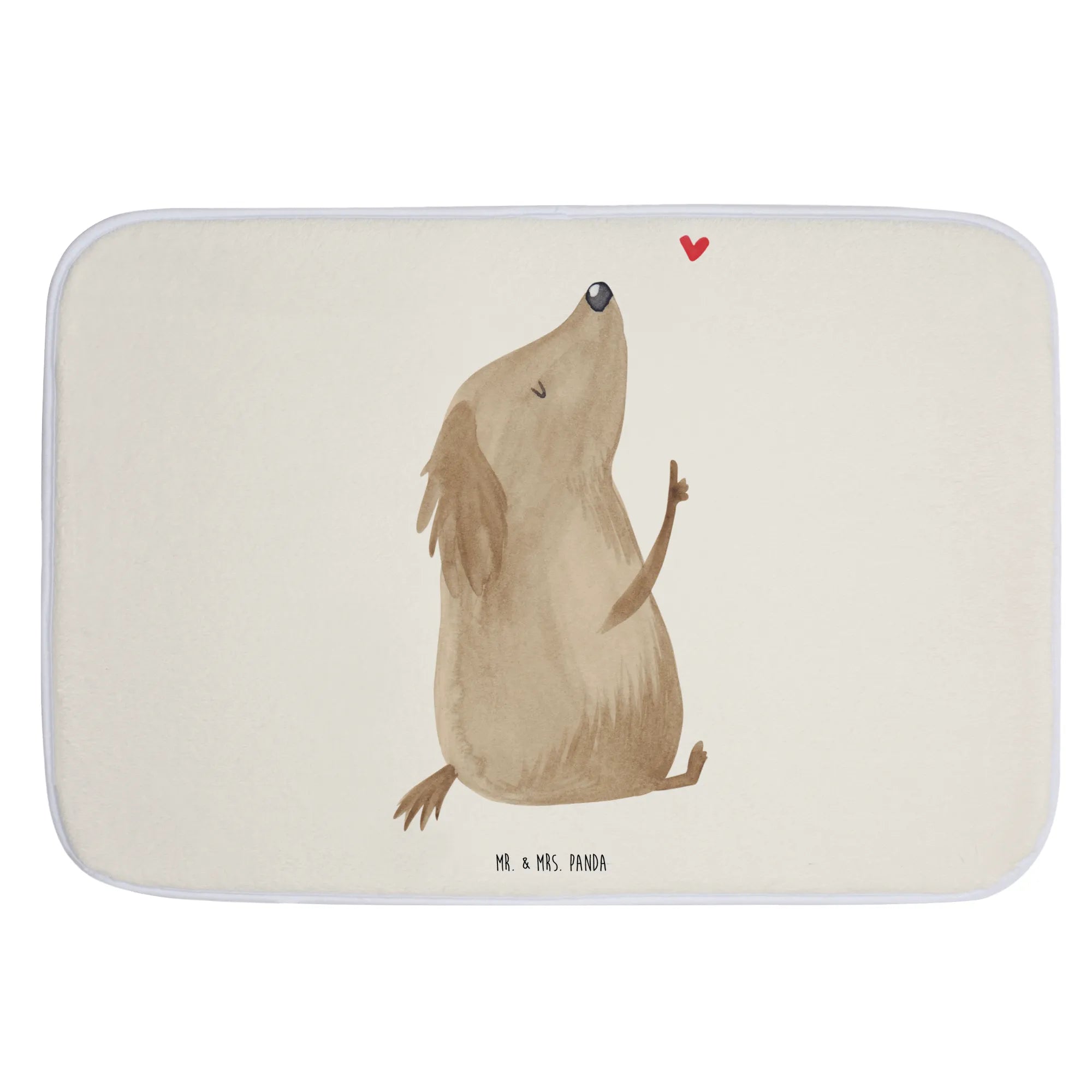 Entdecke die perfekte Ergänzung für dein Badezimmer – unseren Badvorleger mit dem entzückenden Motiv "Hund Liebe" aus der Hunde Kollektion von Mr. & Mrs. Panda!