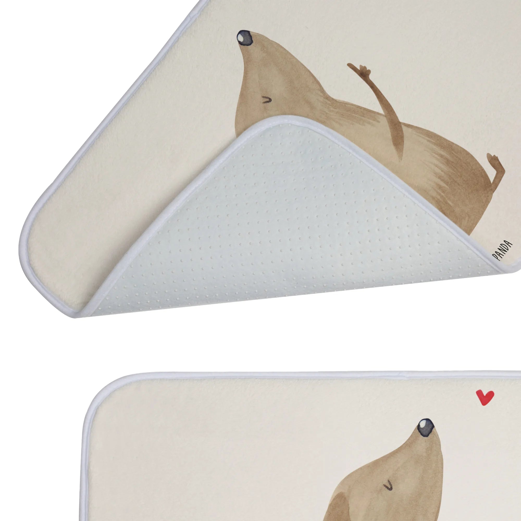 Entdecke die perfekte Badematte für dich und deinen pelzigen Freund: unser Badvorleger mit dem liebevollen Hundemotiv "Hund Liebe"! Diese flauschige Badezimmermatte von Mr. & Mrs. Panda ist nicht nur ein wunderschöner Blickfang in deinem Badezimmer, sondern sorgt auch dafür, dass du rutschfest und sicher aus der Dusche steigst.