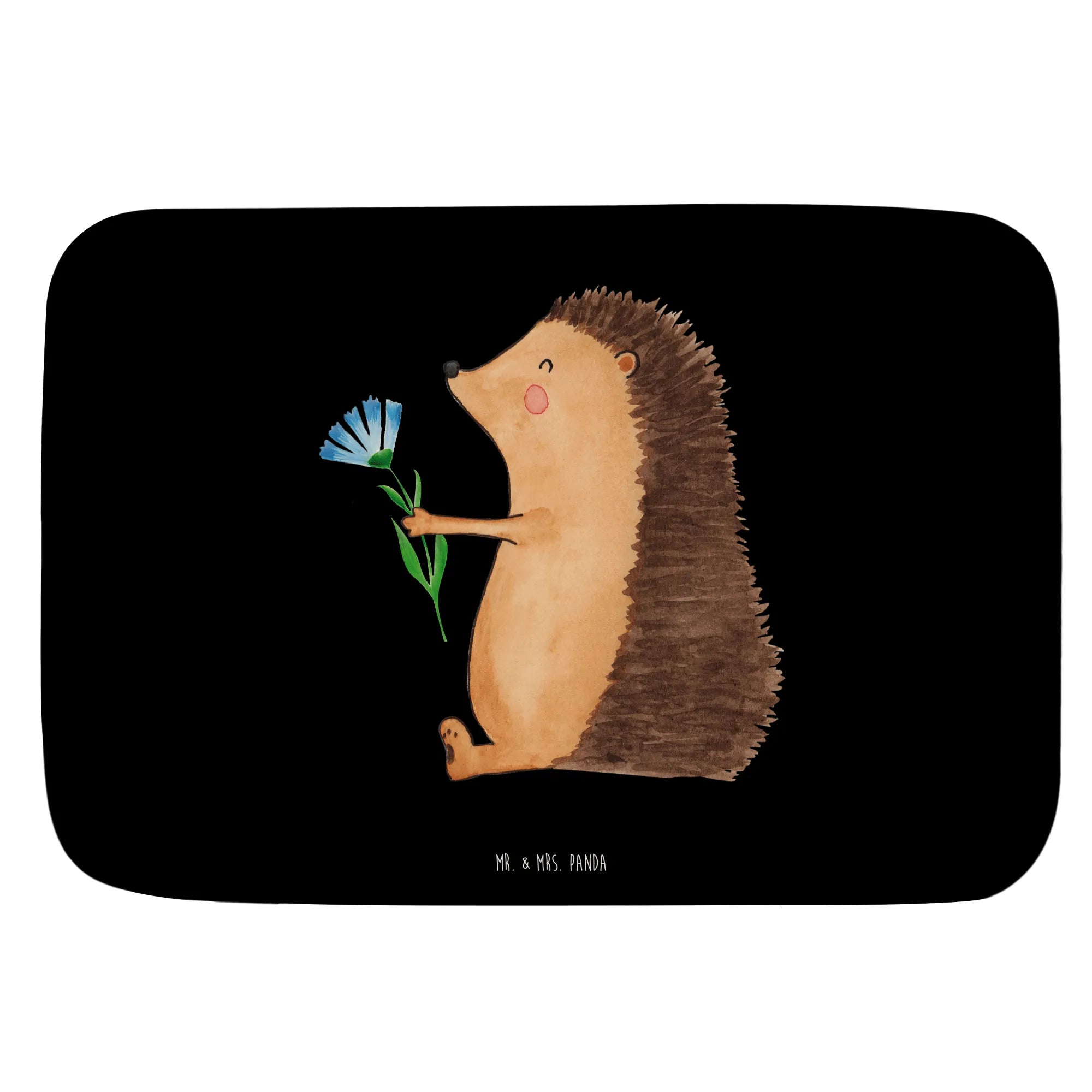 Badematte Igel Blumen - ohne Spruch - Schwarz