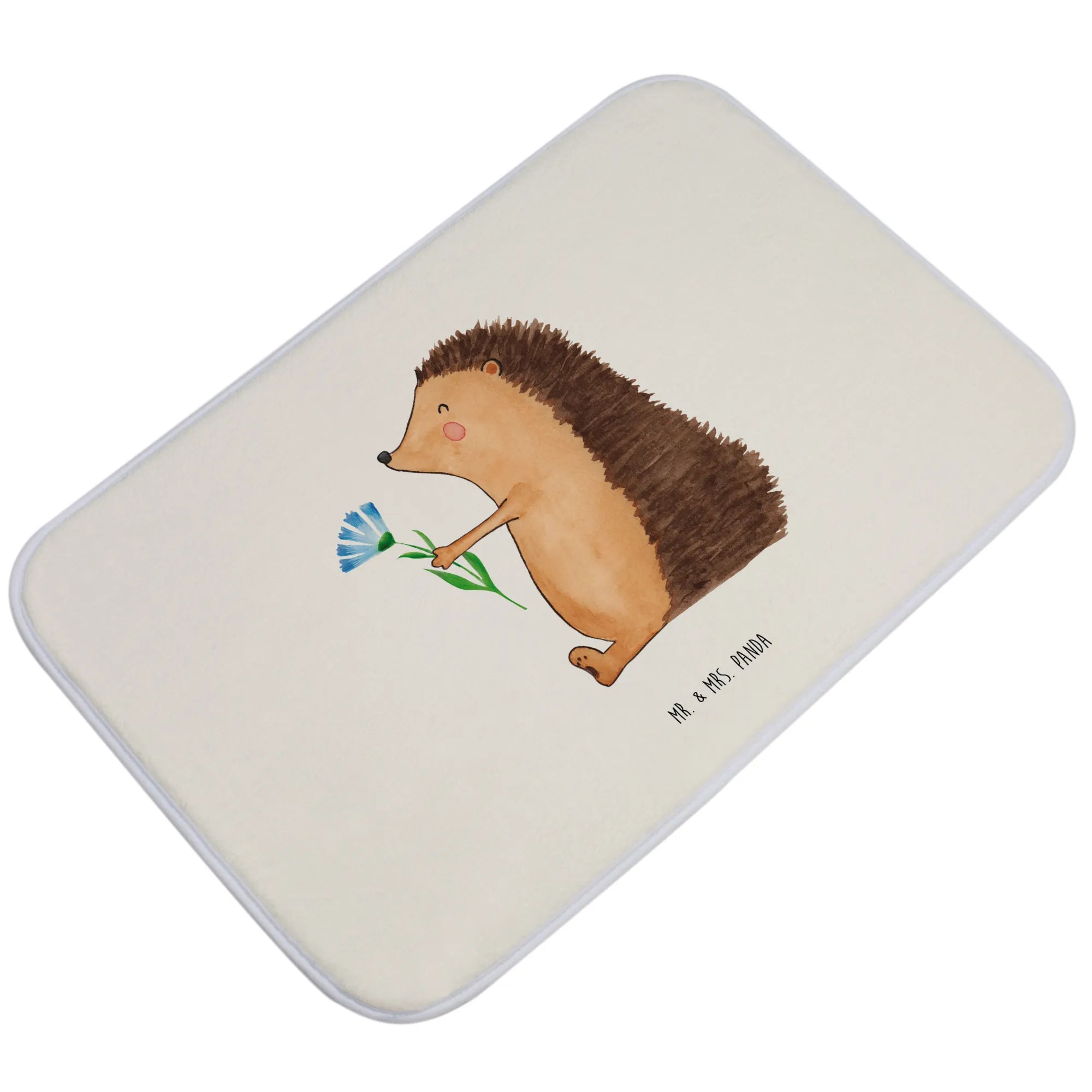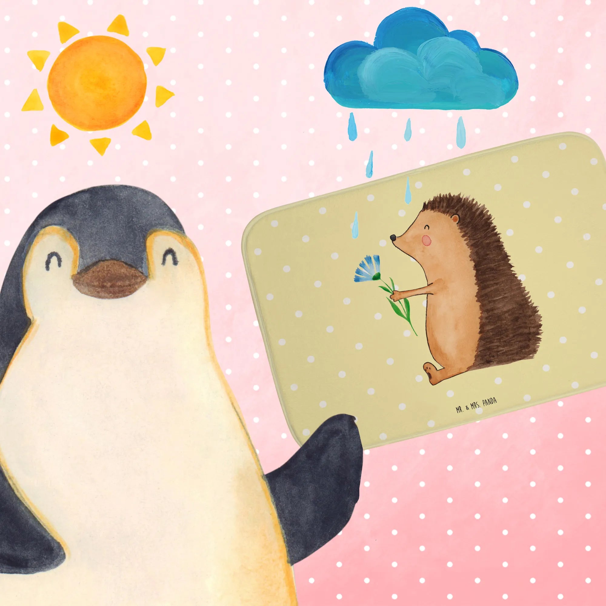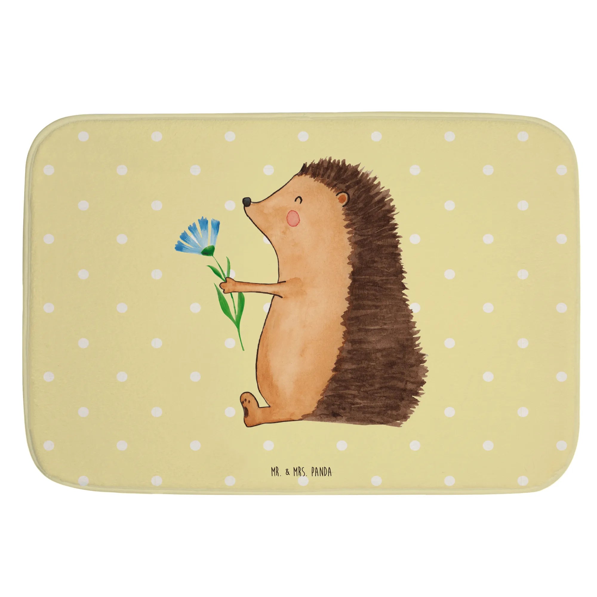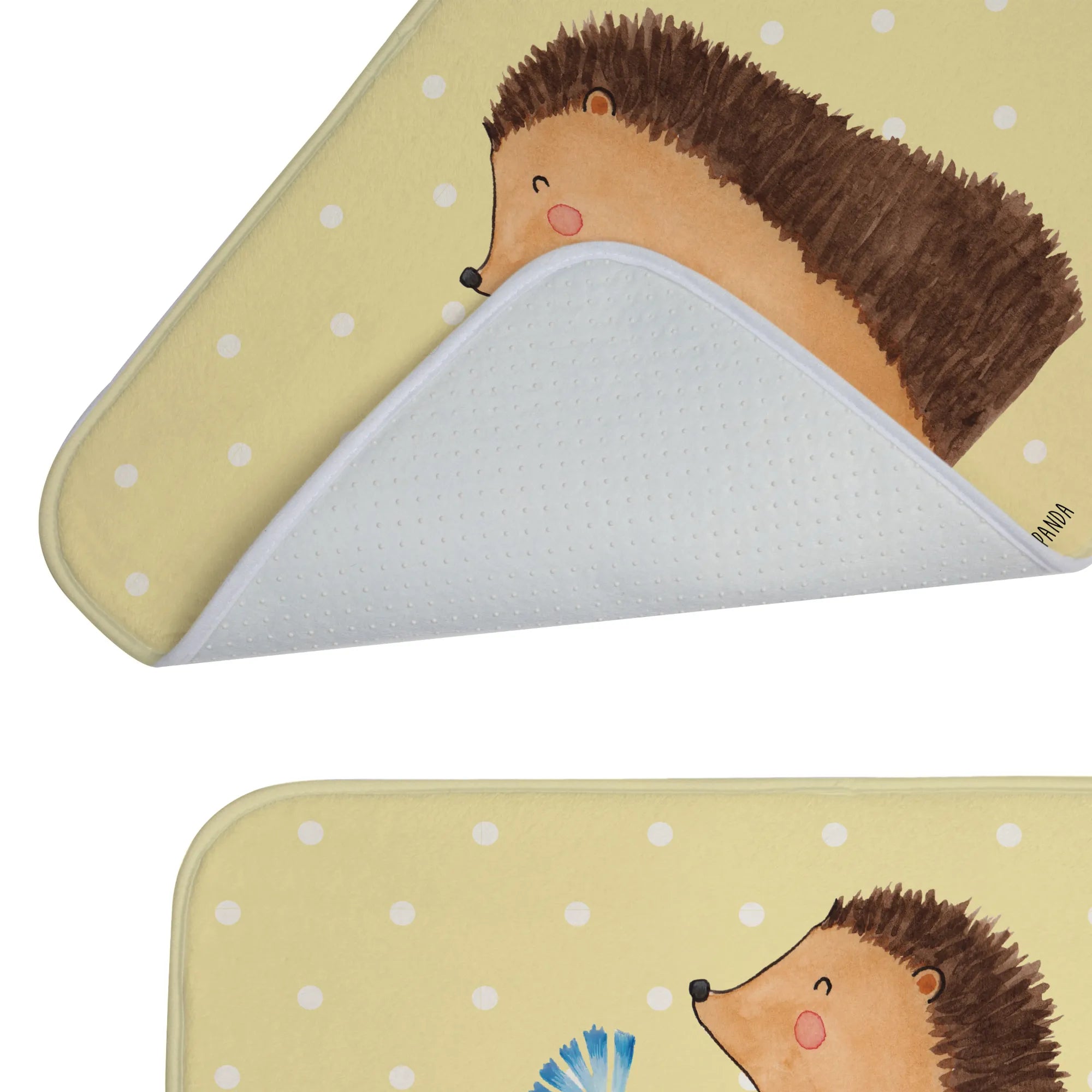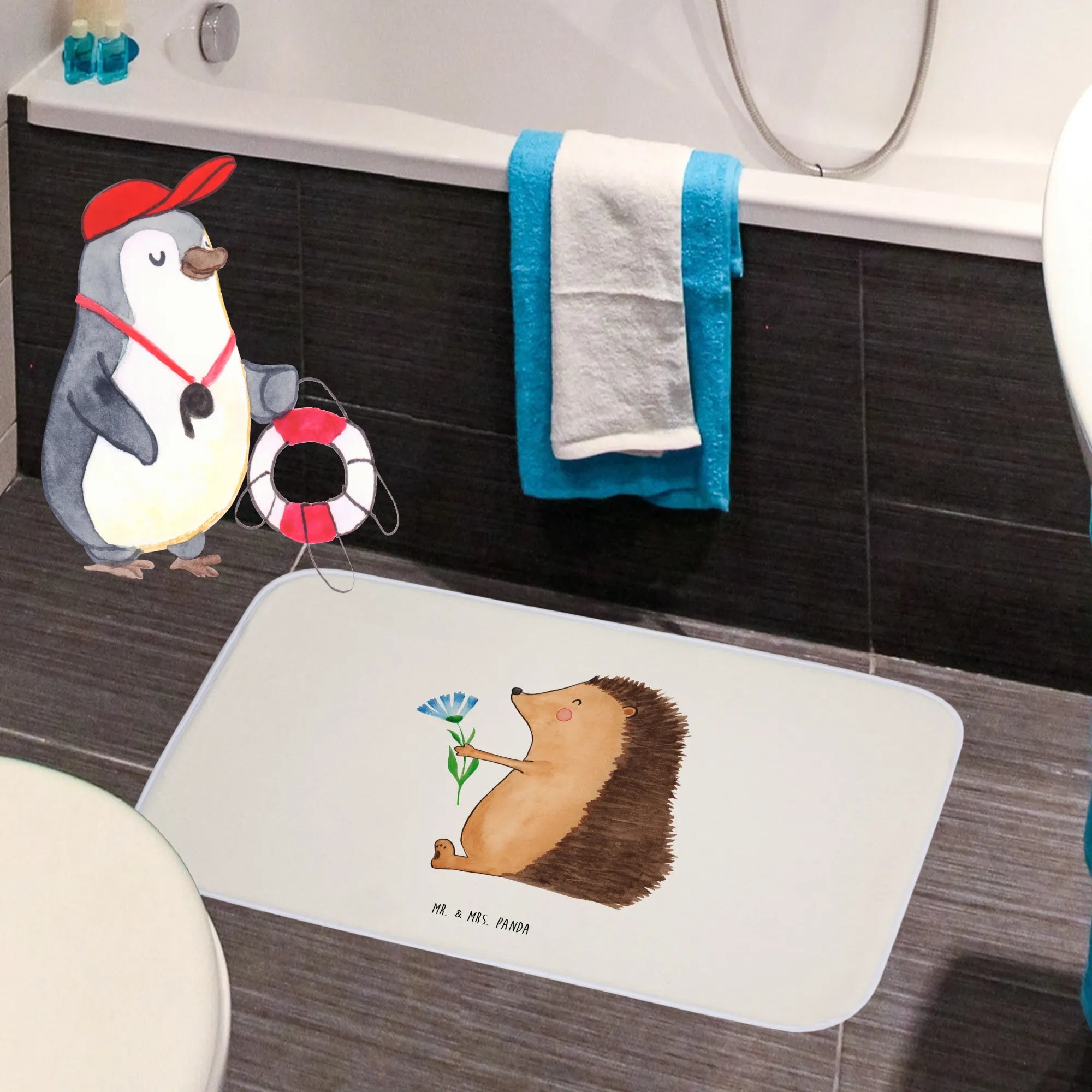Der Badvorleger "Igel mit Blume" aus der Kollektion Small World von Mr. & Mrs. Panda ist mehr als nur ein Badezimmeraccessoire – er bringt Freude und Farbe in dein Badezimmer!