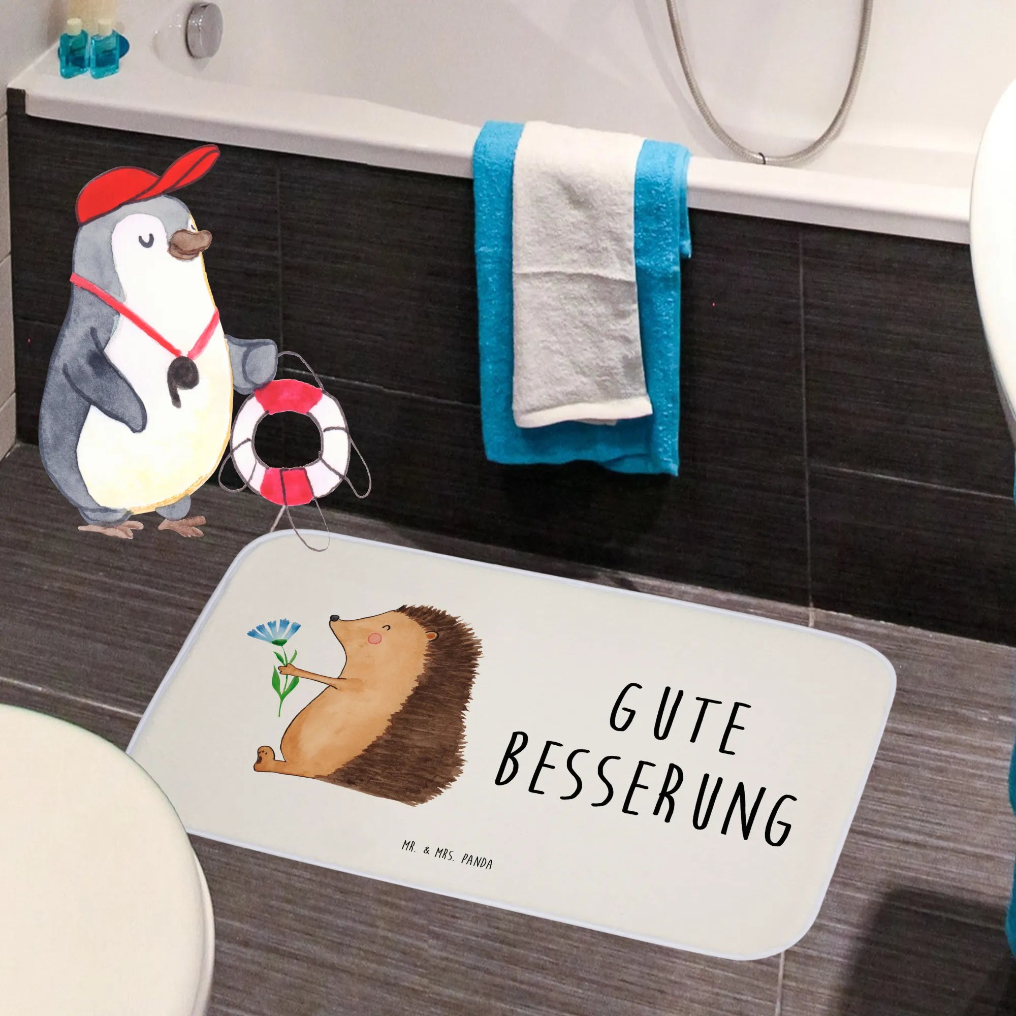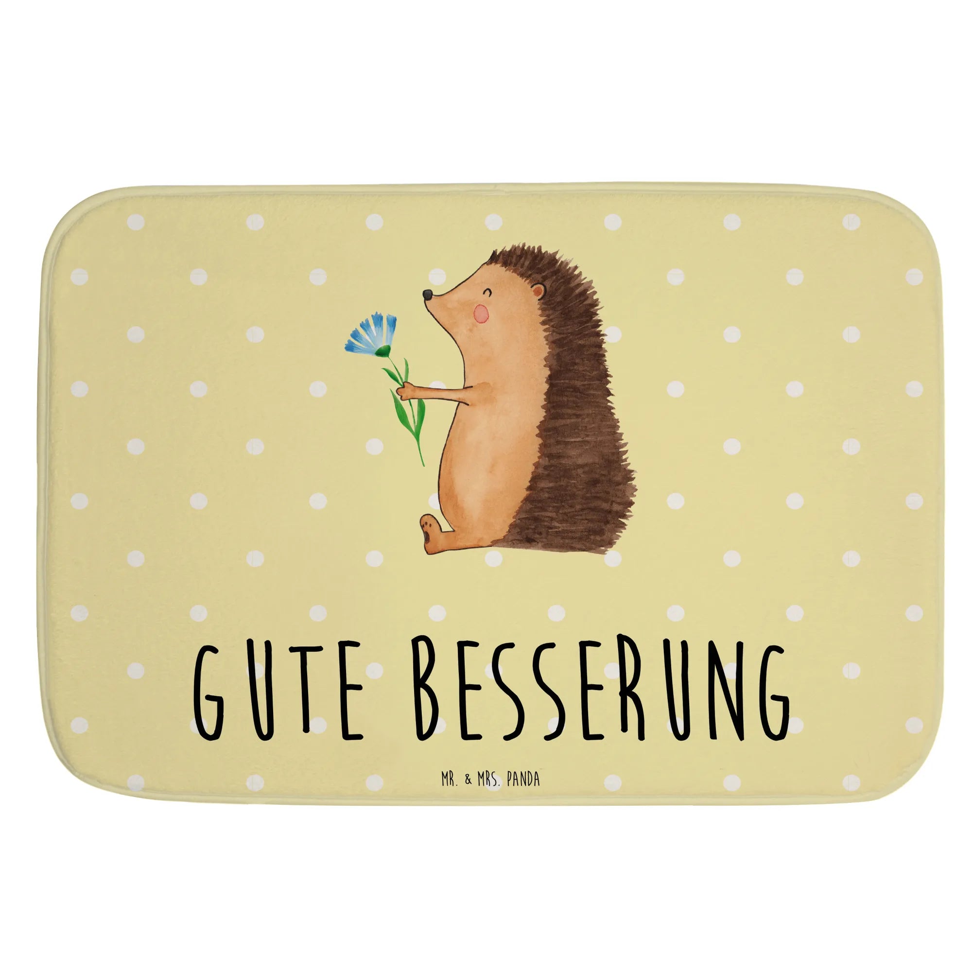 Entdecke die perfekte Badematte für dein Badezimmer! Der Badvorleger "Igel mit Blume" von Mr. & Mrs. Panda bringt mit seinem fröhlichen Design und dem beliebten Slogan "Gute Besserung" eine besondere Note in deine persönliche Wellness-Oase. Diese Badematte gehört zur bezaubernden Small World Kollektion, die nicht nur bunt und vielfältig ist, sondern auch liebevoll gestaltete Tiermotive präsentiert, die gute Laune verbreiten. Der süße, putzige Igel mit seiner schönen Blume in der Hand ist ein wahrer Hingucker und versprüht Frühlingsgefühle, egal ob es draußen regnet oder die Sonne scheint!