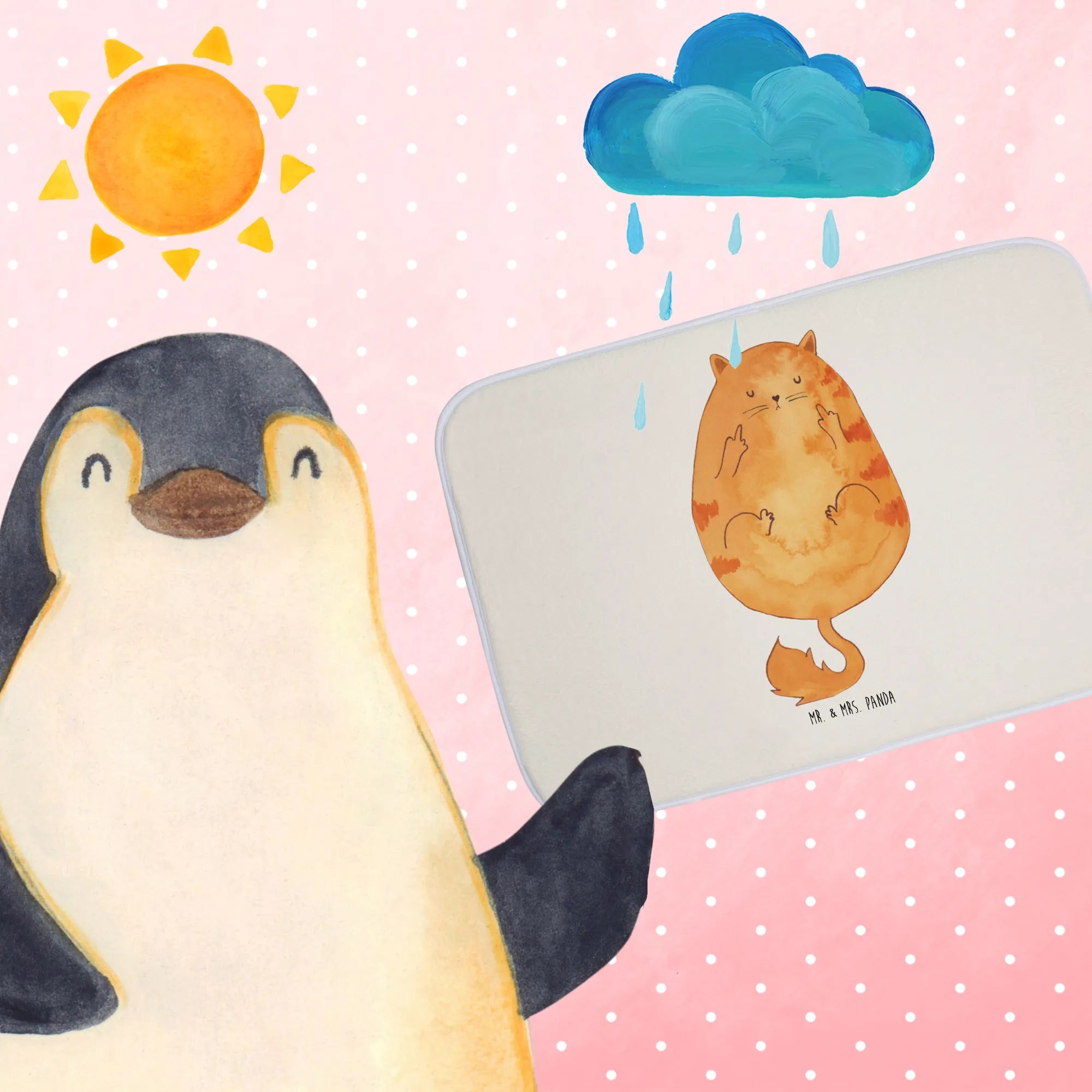 Entdecke die perfekte Ergänzung für dein Badezimmer mit dem Badvorleger Katze Frühaufsteher von Mr. & Mrs. Panda! Dieser wunderschöne und liebevoll gestaltete Badteppich ist nicht nur ein echter Hingucker, sondern sorgt auch für ein kuscheliges und sicheres Gefühl beim Betreten deiner Dusche oder Badewanne. Mit den Maßen 590 mm x 400 mm passt er ideal in jedes Badezimmer und ist aus flauschiger, hochwertiger Kunstfaser gefertigt. Dank der Antirutsch-Gummibeschichtung gehört das Ausrutschen der Vergangenheit an!