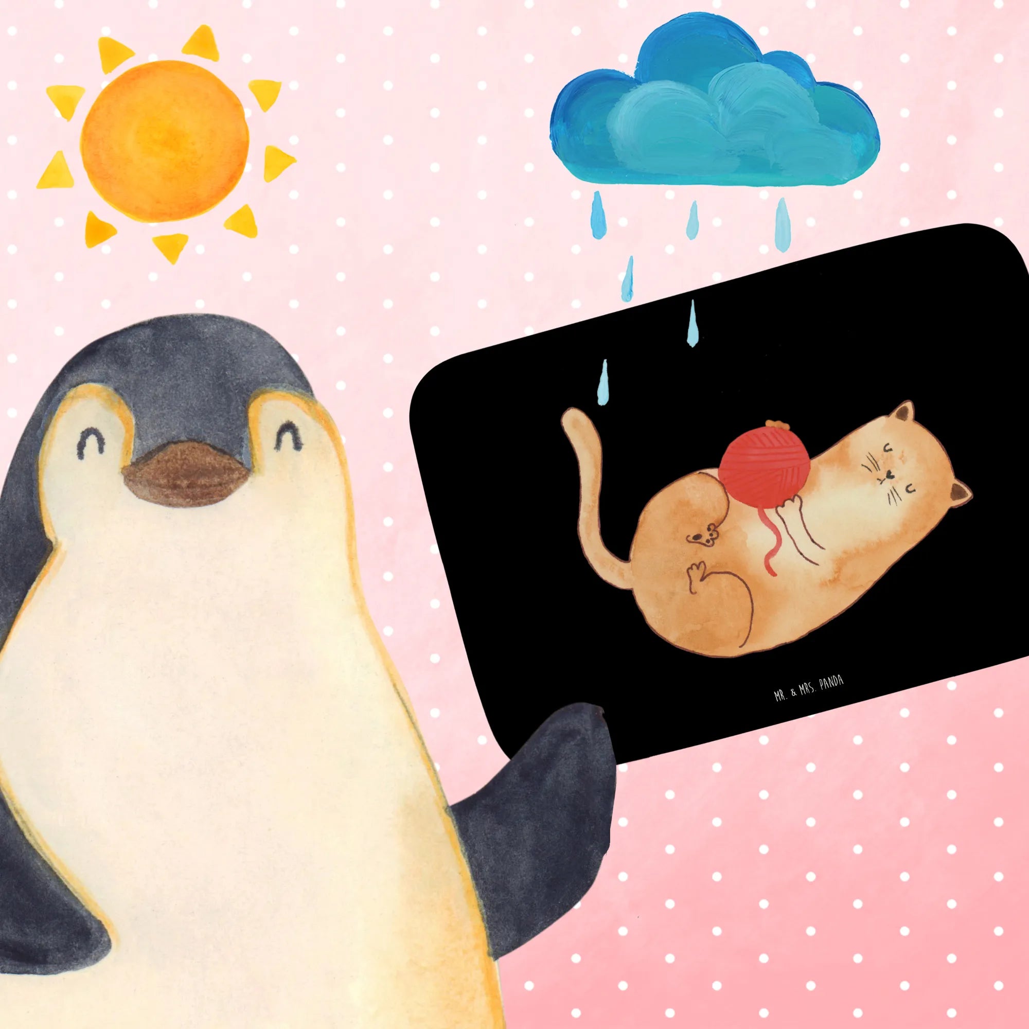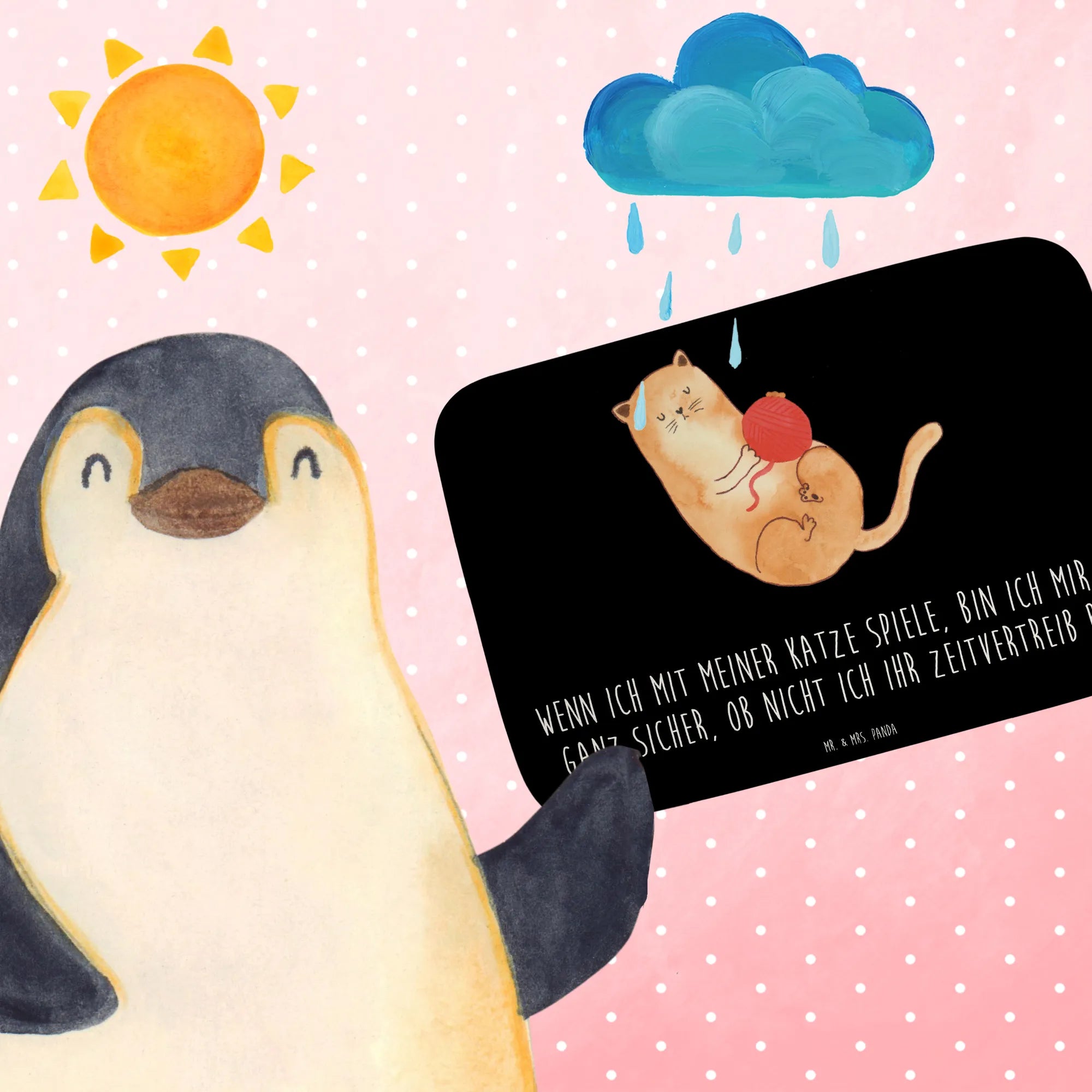 Die süße Katze, die begeistert mit ihrem Wollknäuel spielt, sorgt für gute Laune und zaubert jedem ein Lächeln ins Gesicht. Lass dich von der einzigartigen Designsprache von Mr. & Mrs. Panda begeistern und entdecke die Vielfalt unserer Katzenprodukte, die sich hervorragend als Geschenk eignen.