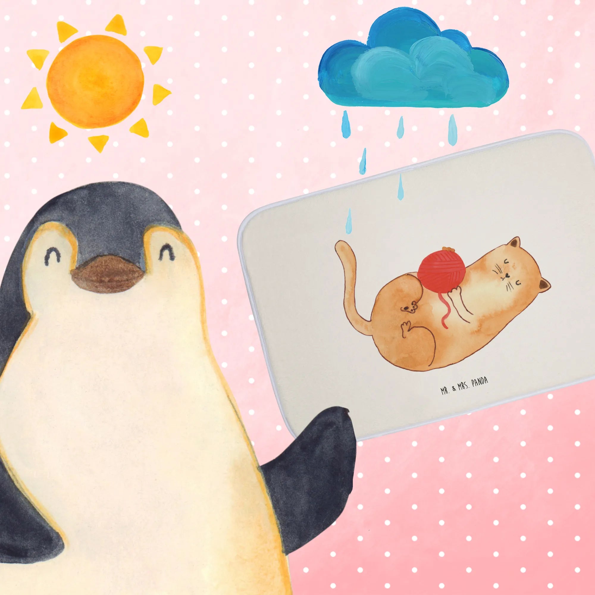 Der Badvorleger Katzen Wollknäul ist das perfekte Geschenk für jeden Katzenliebhaber! 🐱 Dieser wunderbare Badteppich aus der Katzen-Kollektion von Mr. & Mrs. Panda bringt nicht nur Freude ins Bad, sondern sorgt auch für eine angenehme Atmosphäre. Mit seinem charmanten Design und dem süßen Motiv einer Katze, die mit einem Wollknäuel spielt, zaubert er ein Lächeln auf jedes Gesicht.