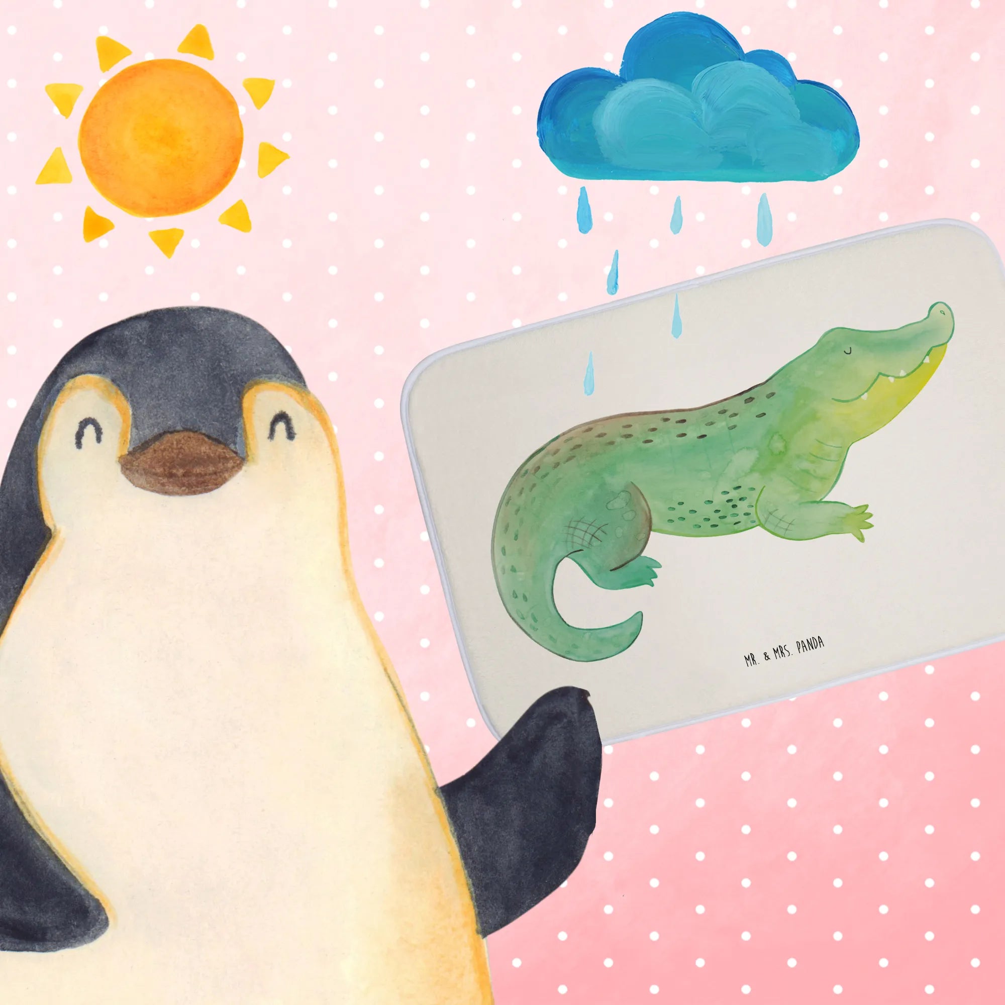 Entdecke den bezaubernden Badvorleger mit dem niedlichen Krokodil-Motiv aus der Meerestiere Kollektion von Mr. & Mrs. Panda! Er ist nicht nur ein wirklicher Hingucker in deinem Badezimmer, sondern auch perfekt für alle, die das Abenteuer und die Spontaneität in ihrem Leben lieben.