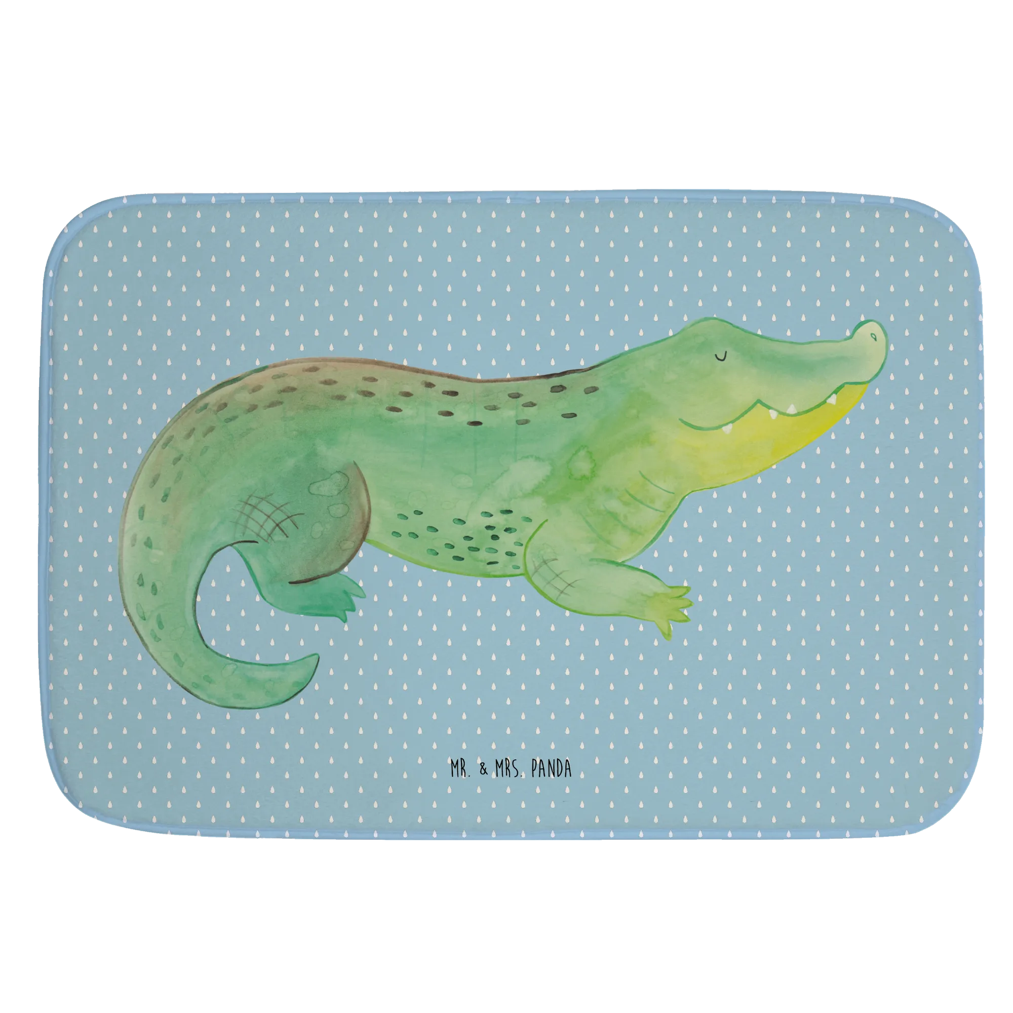Die perfekte Ergänzung für dein Badezimmer ist unser wunderschöner Badvorleger mit dem lustigen Krokodil-Motiv aus der Meerestiere-Kollektion von Mr. & Mrs. Panda! Mit einem charmanten Design, das ein lächelndes Krokodil in sanften Grün- und Blautönen zeigt, bringt dieser Badteppich nicht nur Farbe in dein Badezimmer, sondern auch jede Menge Freude! Egal, ob du ihn für dein eigenes Bad kaufst oder als einzigartiges Geschenk für deine beste Freundin, deine Lieblingsmensch oder jemand besonderen - mit diesem Badvorleger sorgst du für strahlende Augen und ein Lächeln im Gesicht.