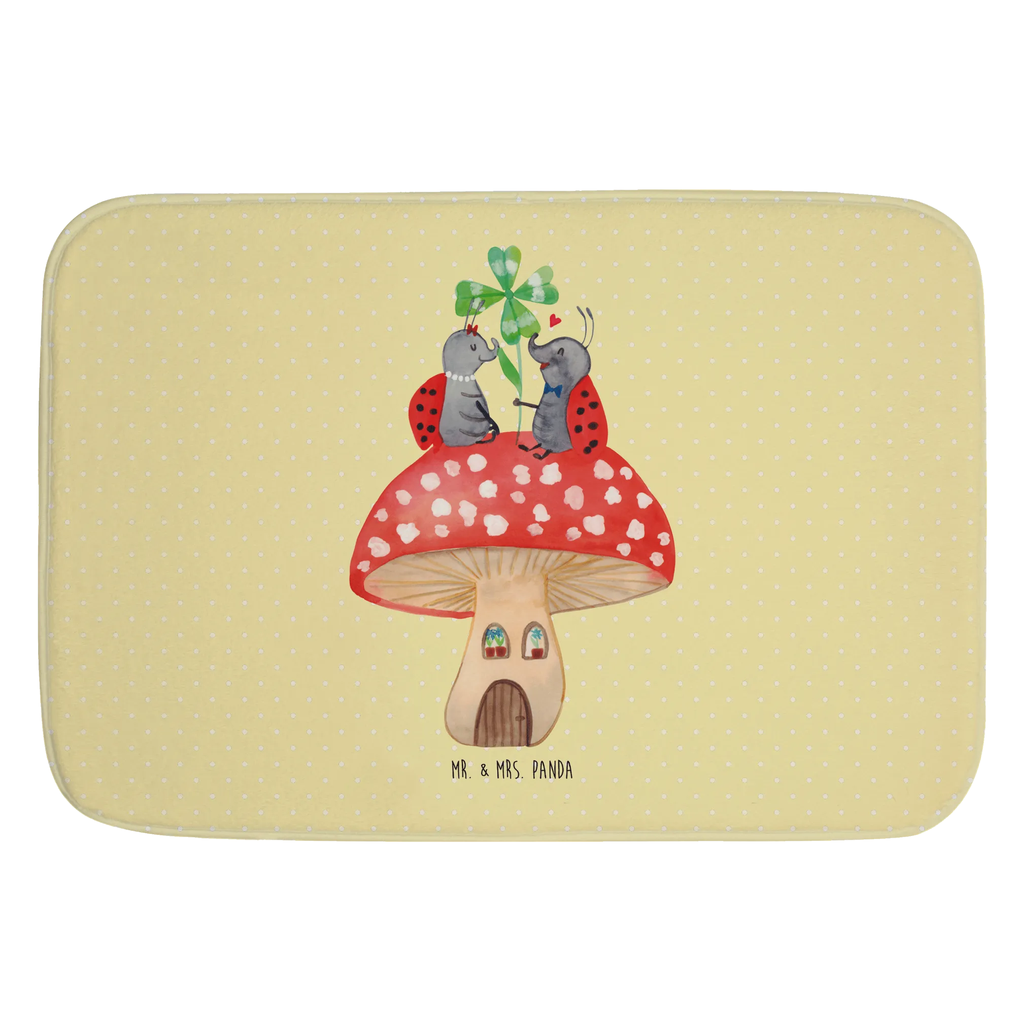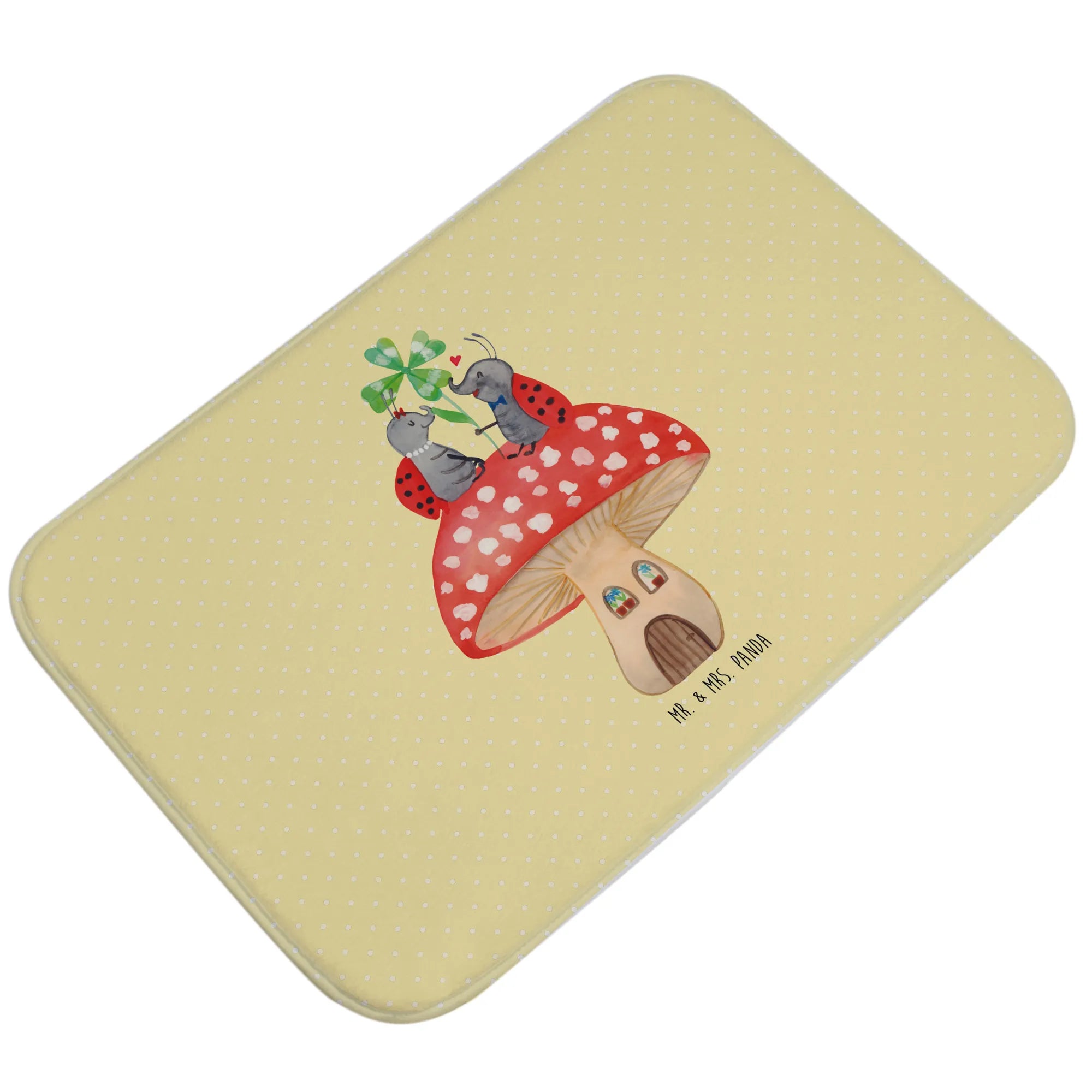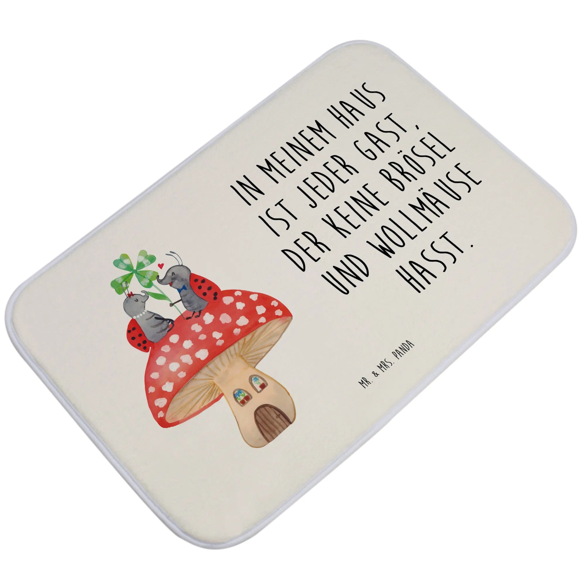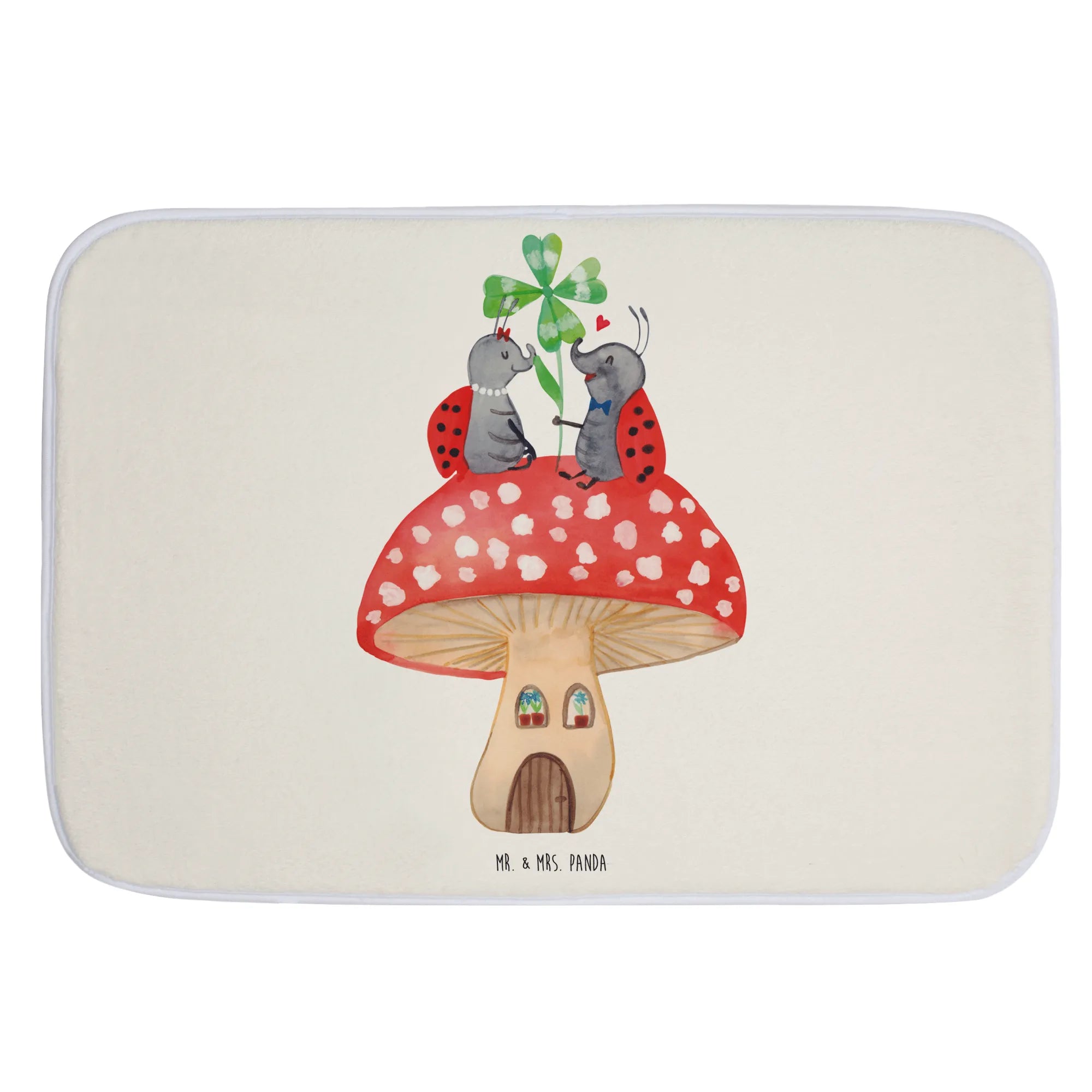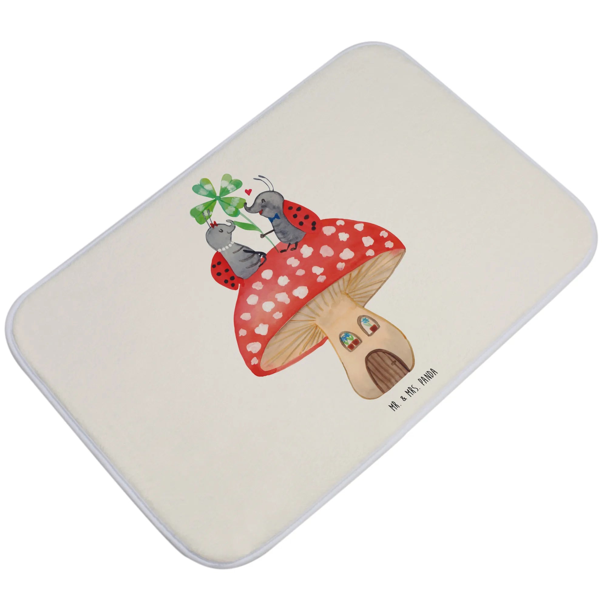 Entdecke die zauberhafte Welt von Mr. & Mrs. Panda mit unserem liebevollen Badvorleger im Design "Marienkäfer Paar Fliegenpilz". Dieser Badvorleger ist nicht nur ein praktisches Accessoire für dein Badezimmer, sondern auch ein wunderschöner Blickfang!