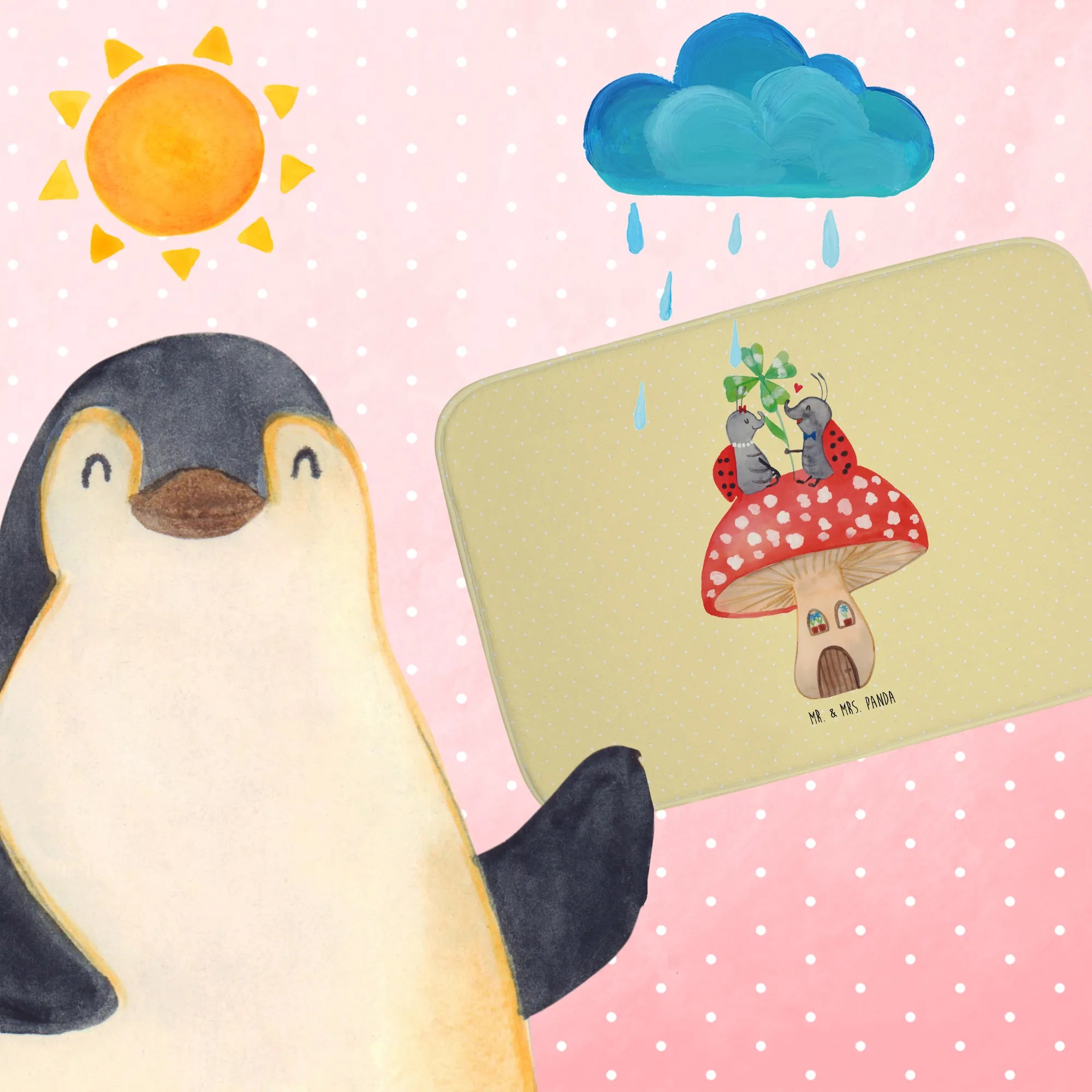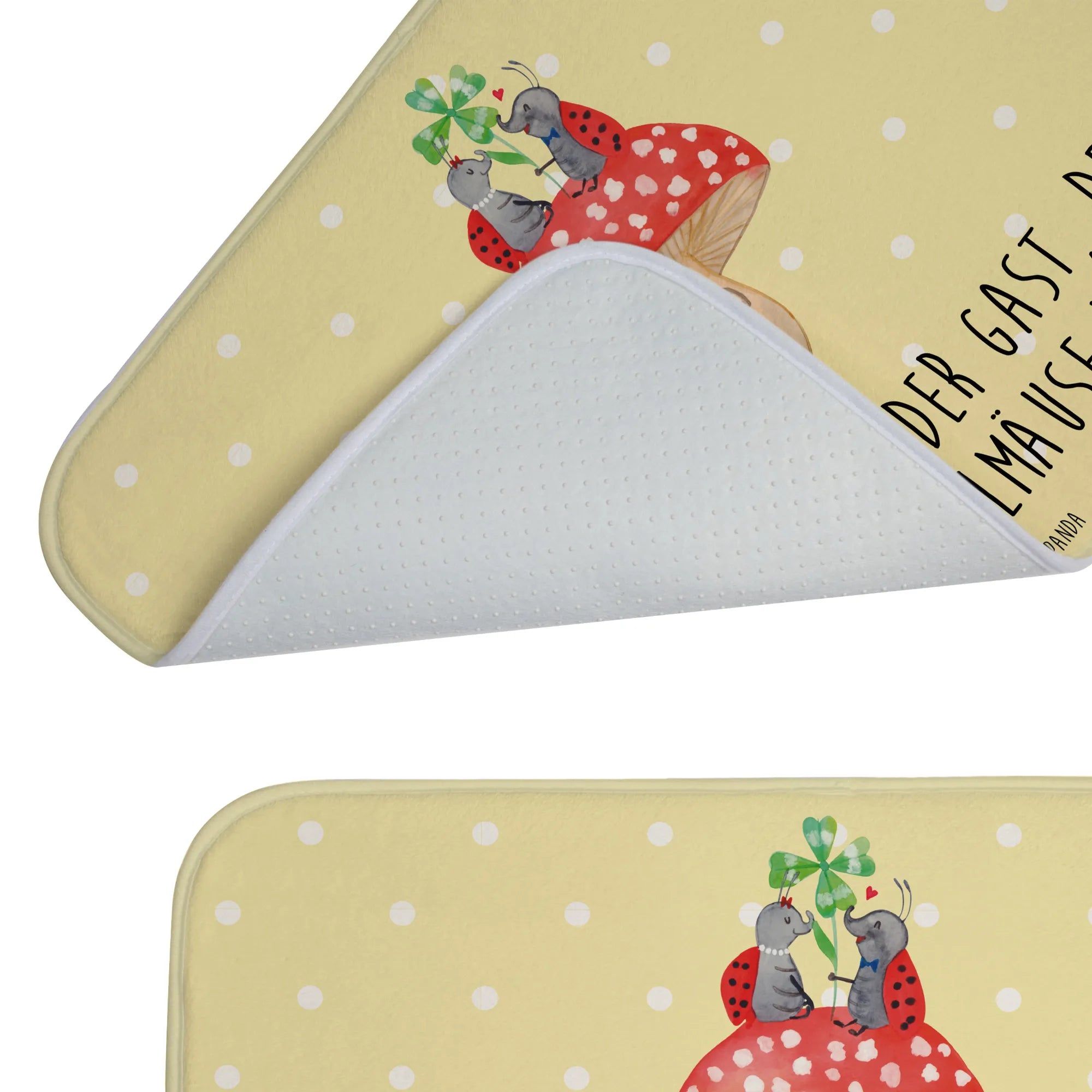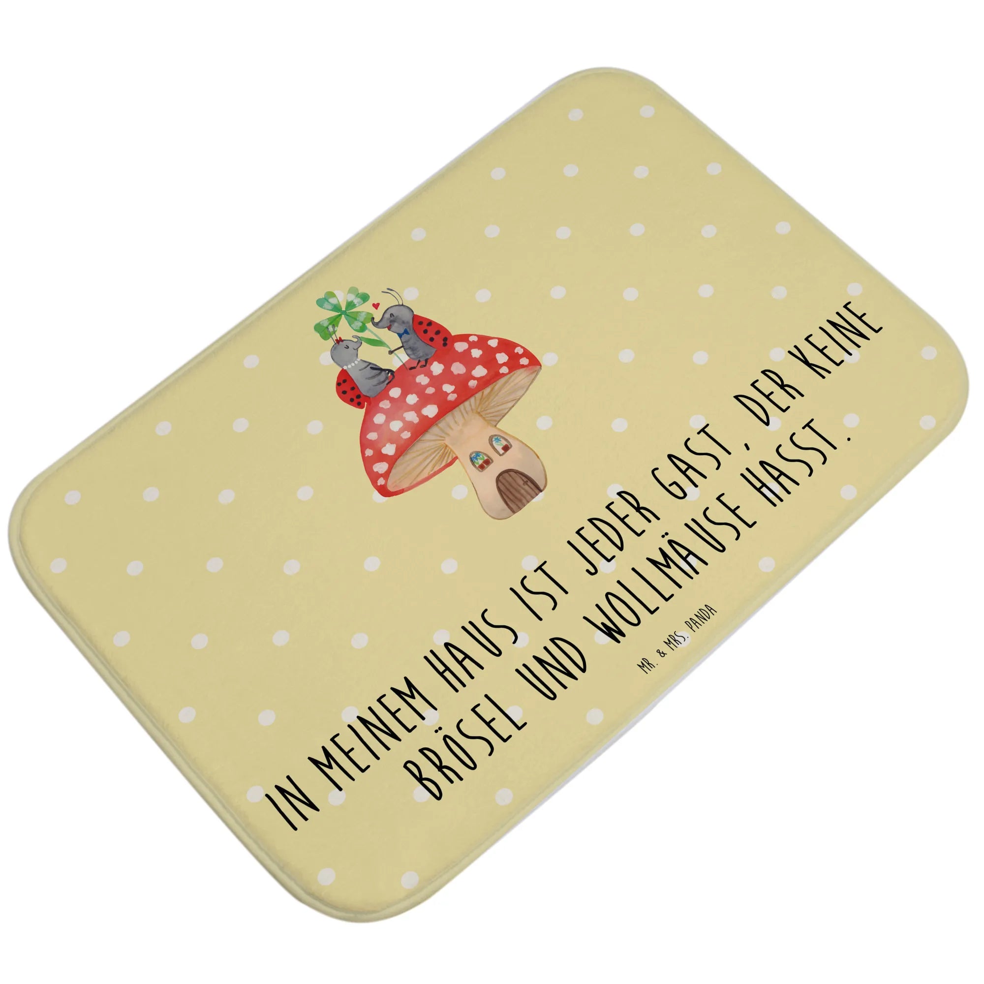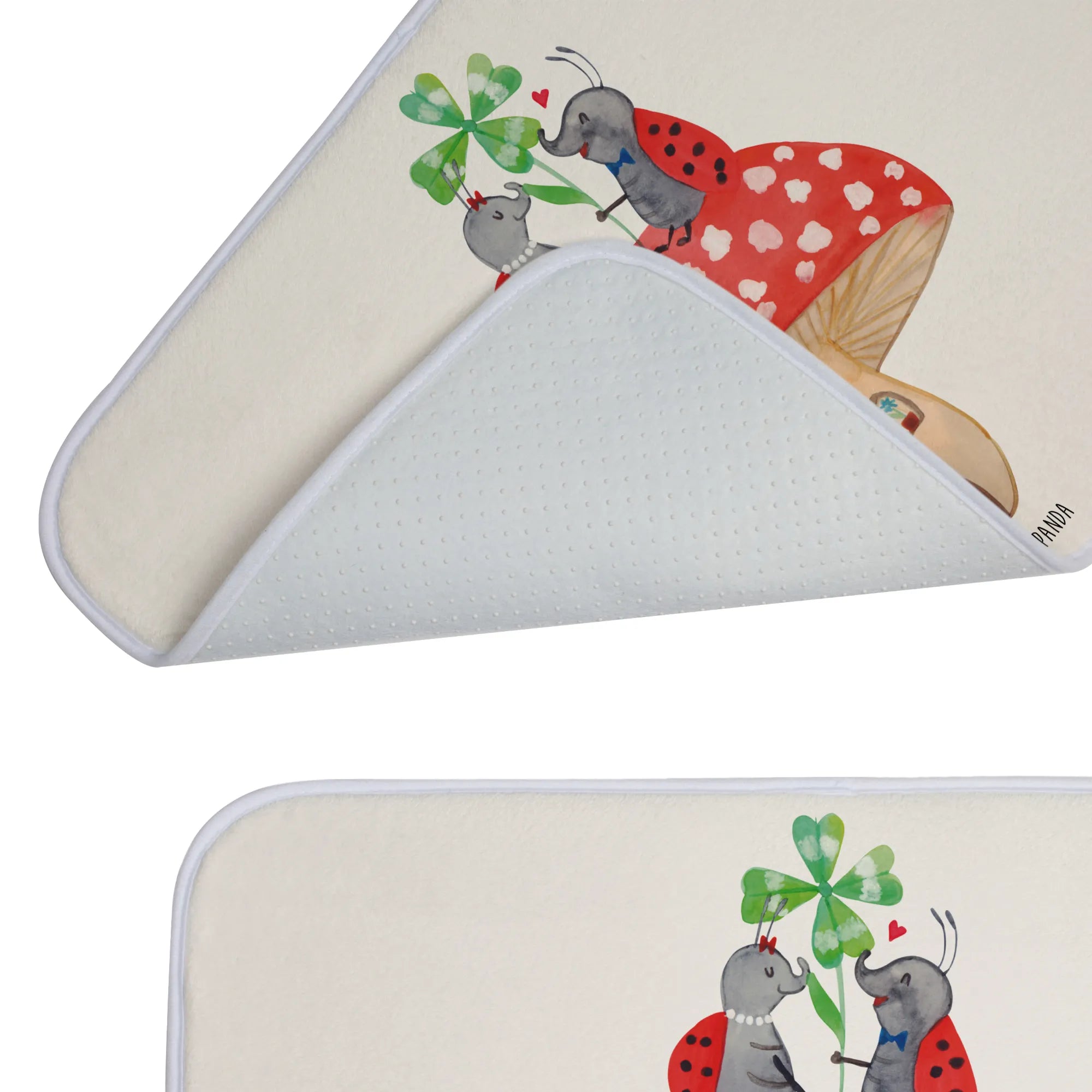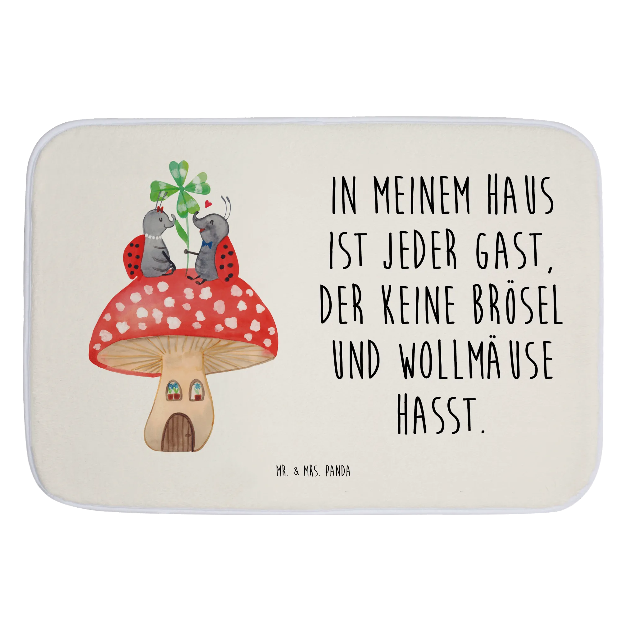 Entdecke die zauberhafte Welt von Mr. & Mrs. Panda mit unserem liebevollen Badvorleger im Design "Marienkäfer Paar Fliegenpilz". Dieser Badvorleger ist nicht nur ein praktisches Accessoire für dein Badezimmer, sondern auch ein wunderschöner Blickfang!