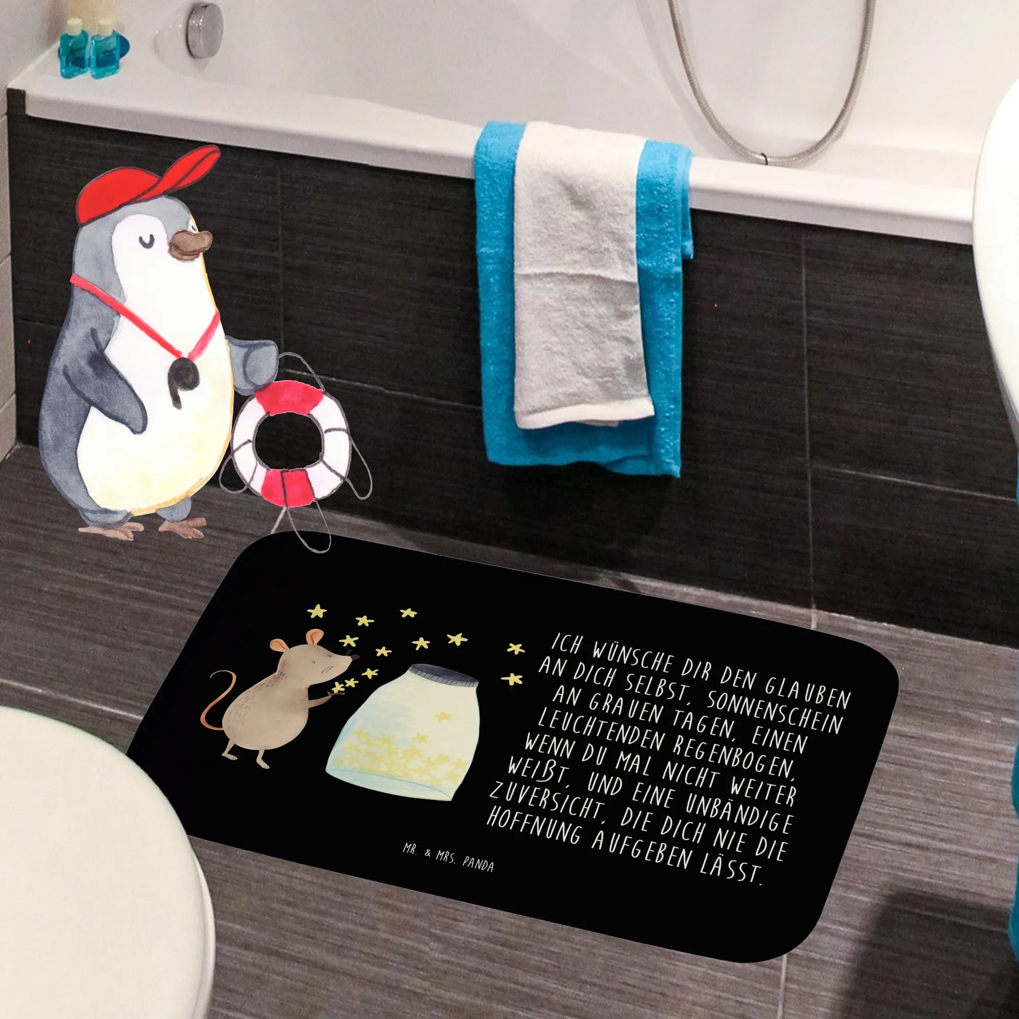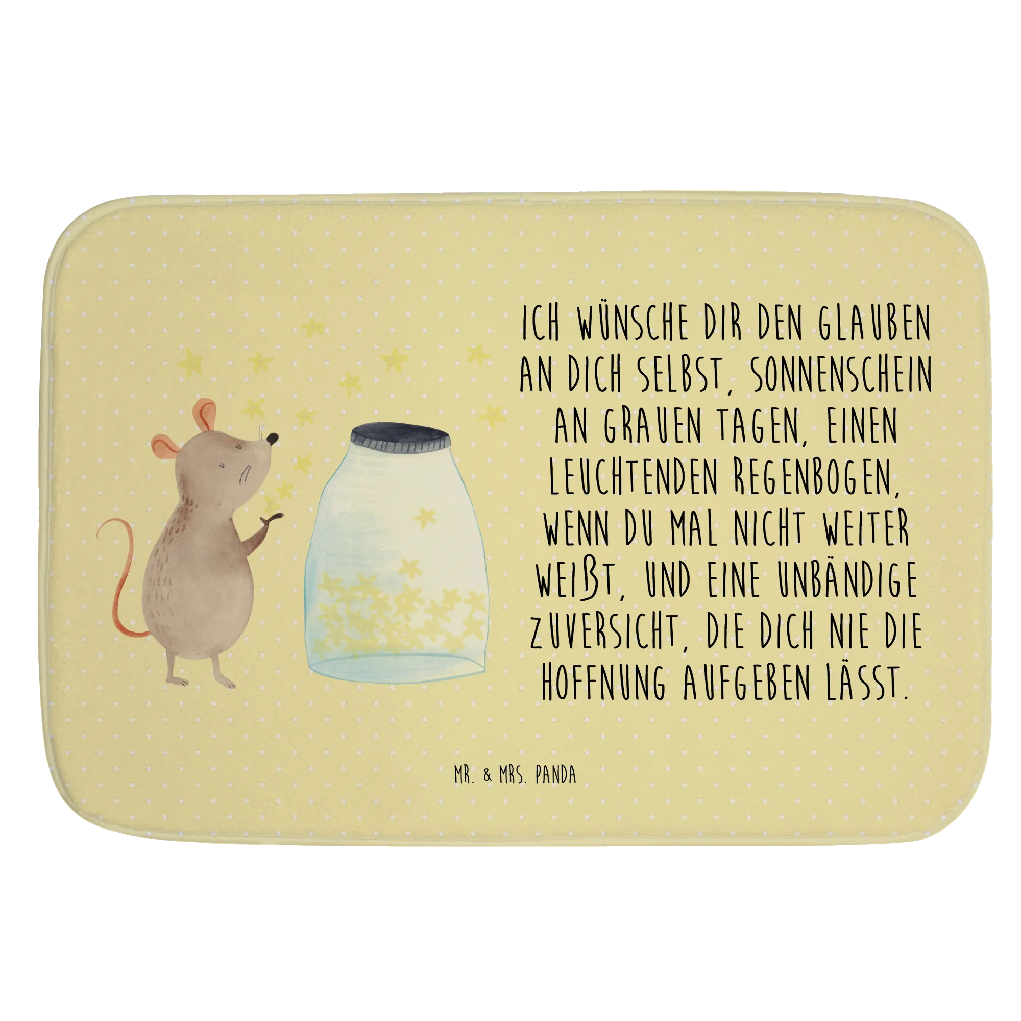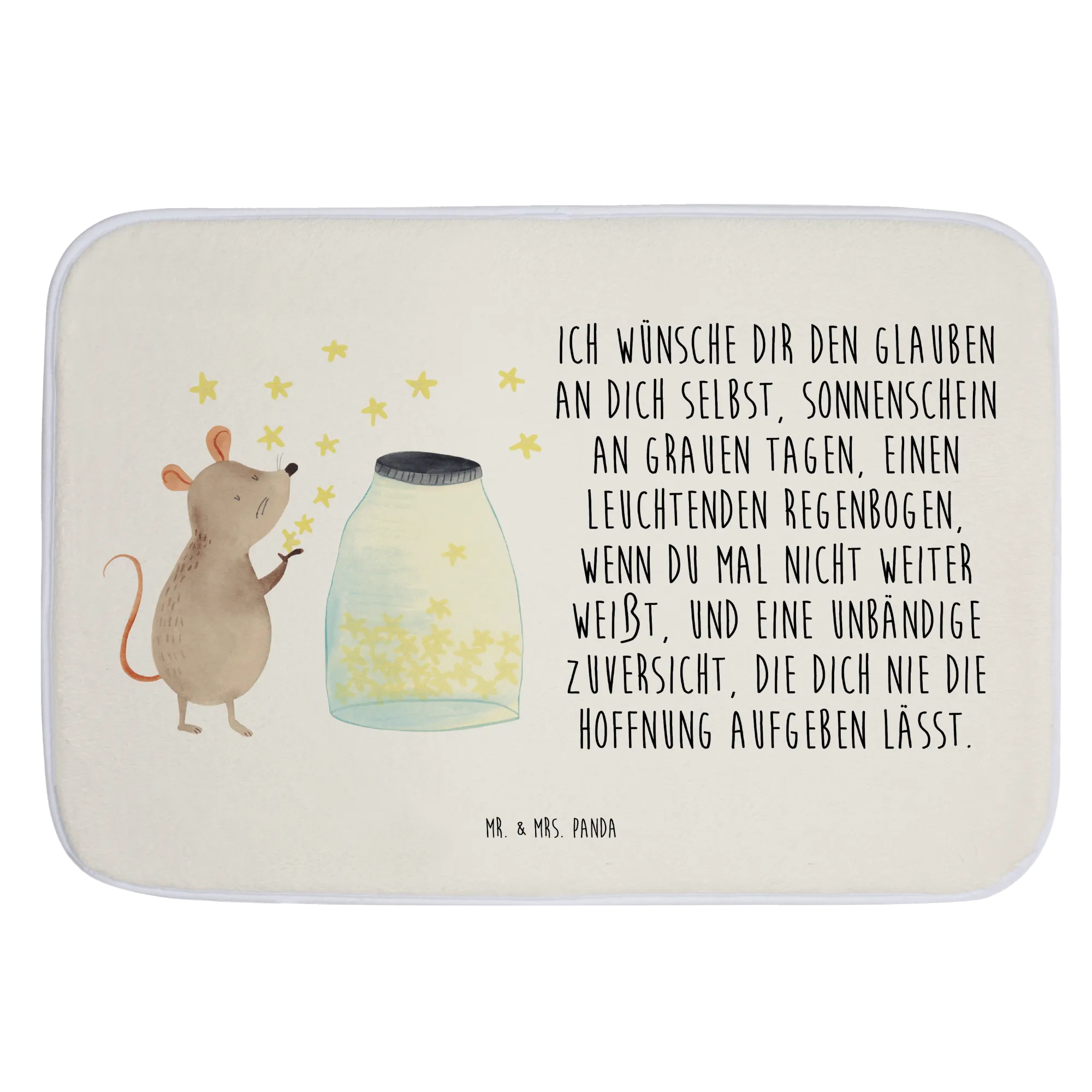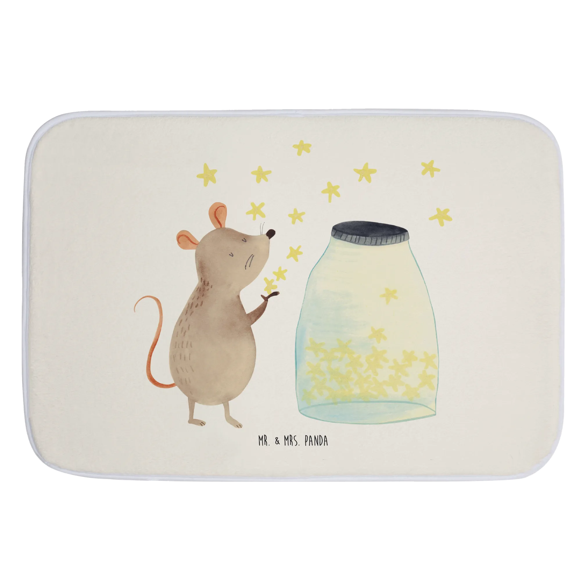Der Badvorleger Maus Sterne von Mr. & Mrs. Panda bringt nicht nur Farbe, sondern auch Freude in dein Badezimmer! Mit seinem zauberhaften Design einer kleinen Maus, die von einem Glas voller leuchtender Sterne träumt, verwandelt dieser Badteppich jeden Raum in eine Oase der Gemütlichkeit.