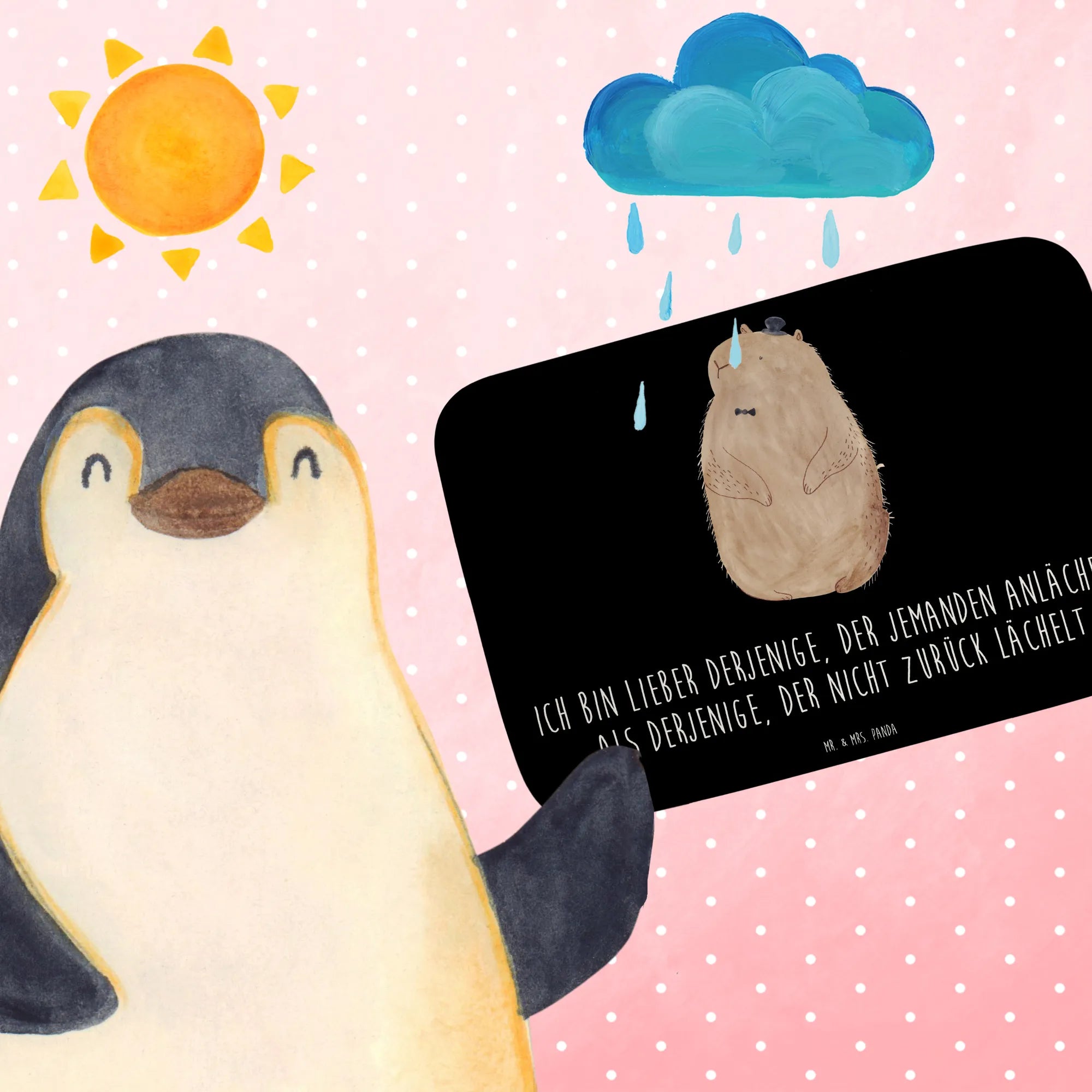 Der Druck mit dem niedlichen Murmeltier und dem Spruch „Ich bin lieber derjenige, der jemanden anlächelt, als derjenige, der nicht zurück lächelt.“ lädt dazu ein, all deine Gäste freundlich zu empfangen. Dieser Badezimmerteppich gehört zur beliebten Small World Kollektion von Mr. & Mrs. Panda und besticht durch liebevoll gestaltete Tiermotive und farbenfrohe Designs, die jedem Raum einen besonderen Charme verleihen.