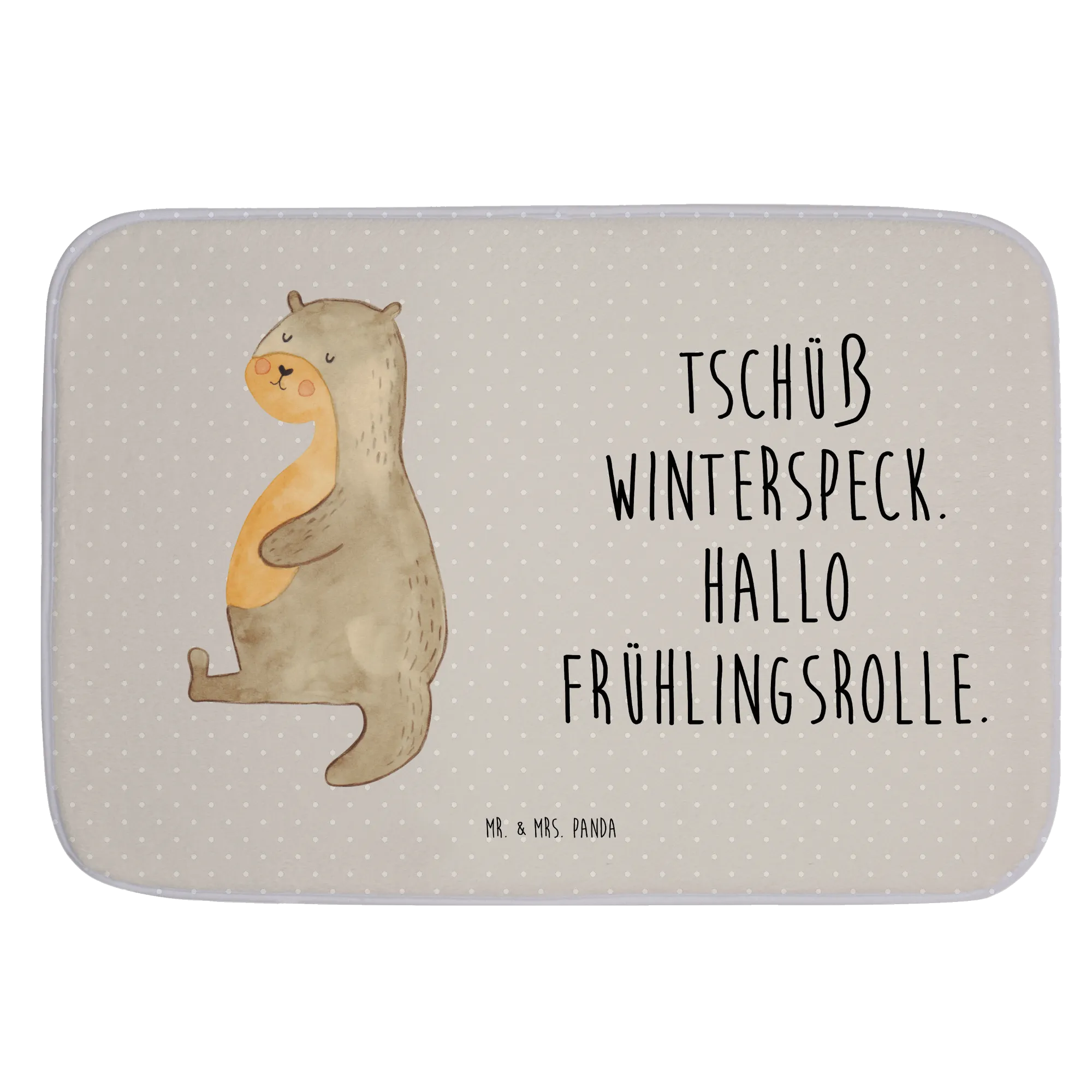 Entdecke die zauberhafte Badematte "Badvorleger Otter Bauch" aus der speziellen Otter-Kollektion von Mr. & Mrs. Panda. Diese wunderschöne Badematte wurde mit viel Liebe entworfen und zeigt einen niedlichen Otter mit einem dicken Bauch, der im Wasser liegt und ein zufriedenes Lächeln trägt. Sobald Du sie in Dein Badezimmer legst, strahlt sie nicht nur Freude und Gemütlichkeit aus, sondern sorgt auch dafür, dass Du dich in Deiner eigenen kleinen Wellness-Oase wohlfühlst.