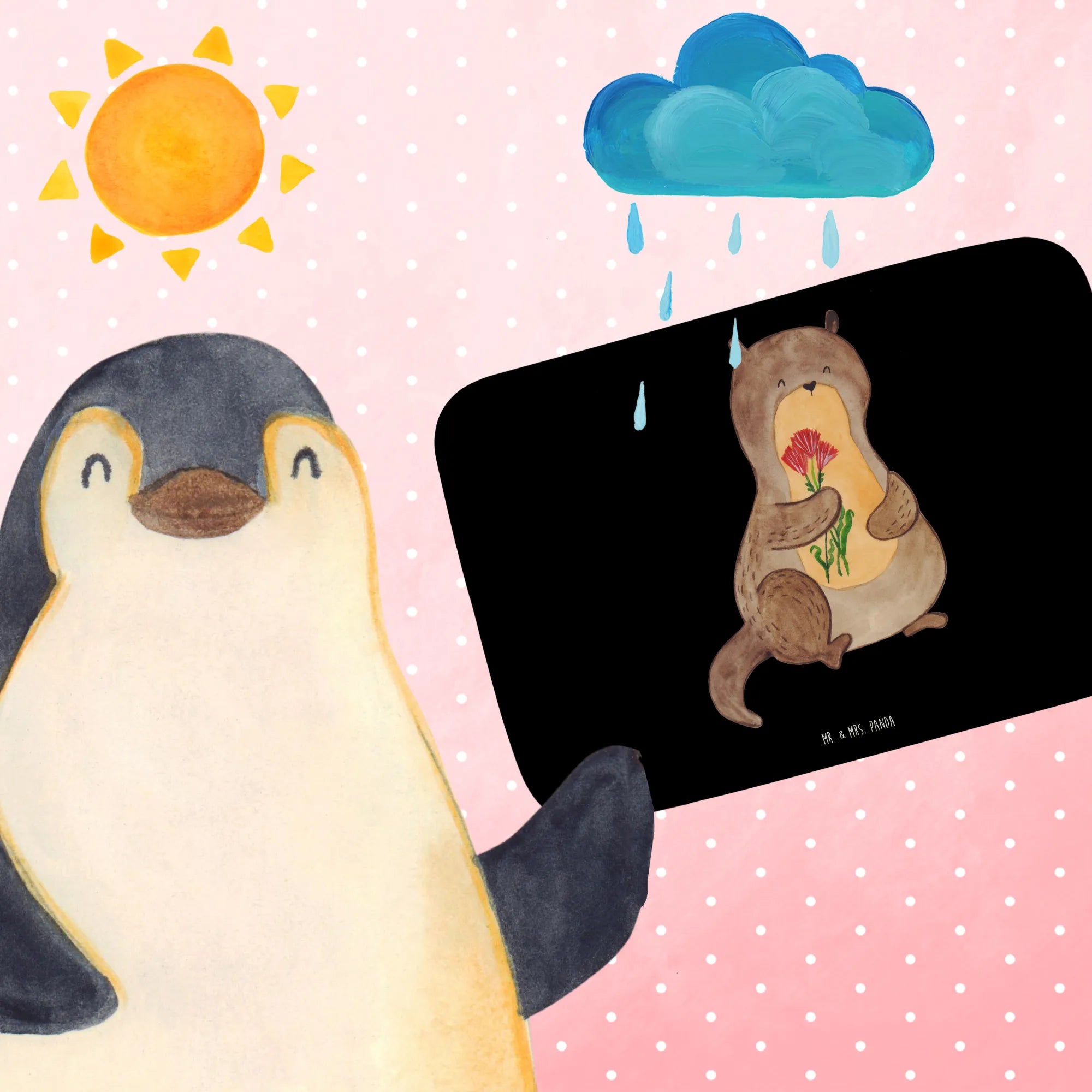 Badematte Otter Blumenstrauß - mit Spruch - Schwarz