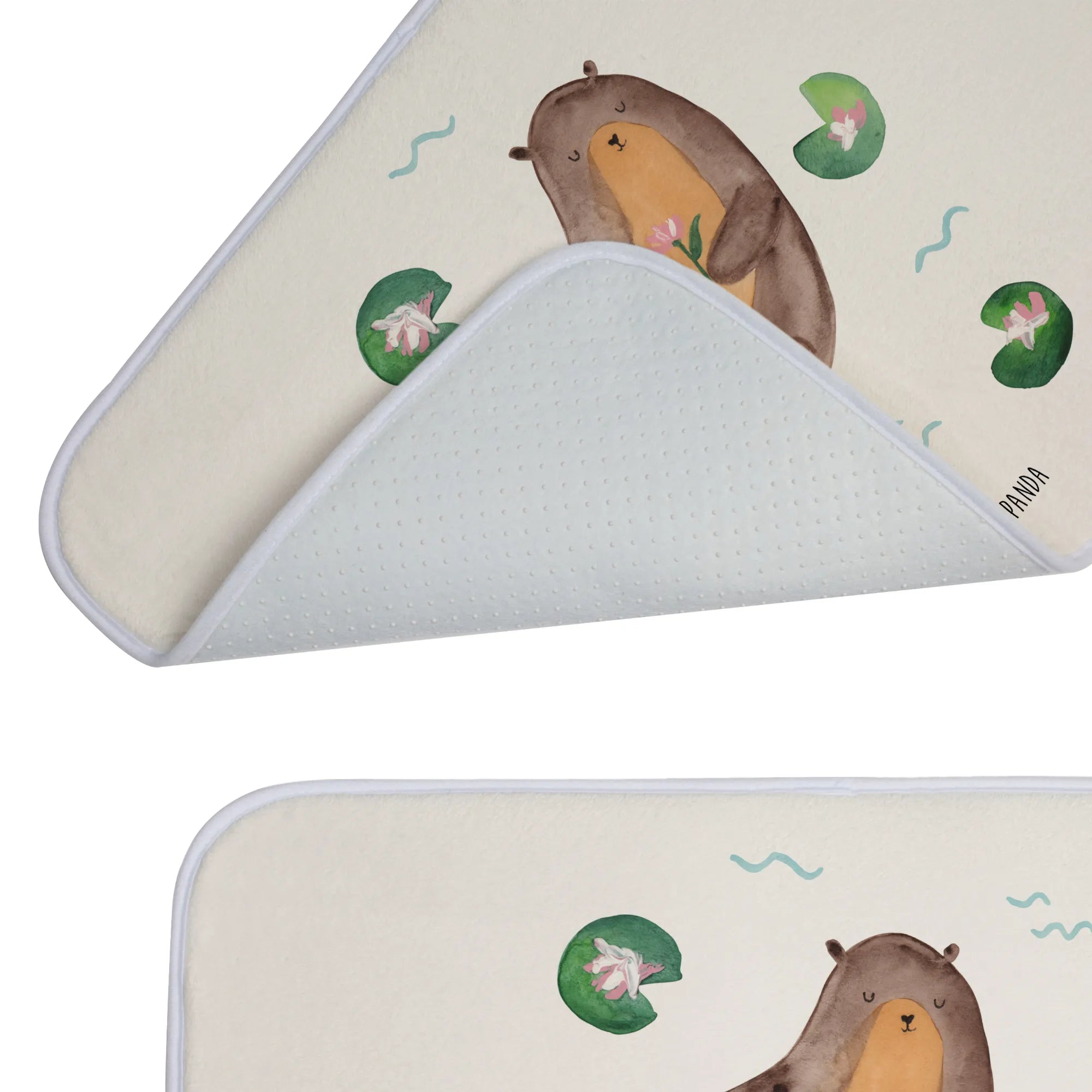 Der Badvorleger ist nicht nur ein echter Hingucker, sondern auch besonders saugstark. So bleiben sowohl Deine Füße trocken als auch der Boden geschützt. Das niedliche Motiv zeigt einen fröhlichen Otter, der durch blühende Seerosen schwimmt – eine liebevolle Illustration, die mit viel Herz von unserer Künstlerin Mrs. Panda gestaltet wurde.