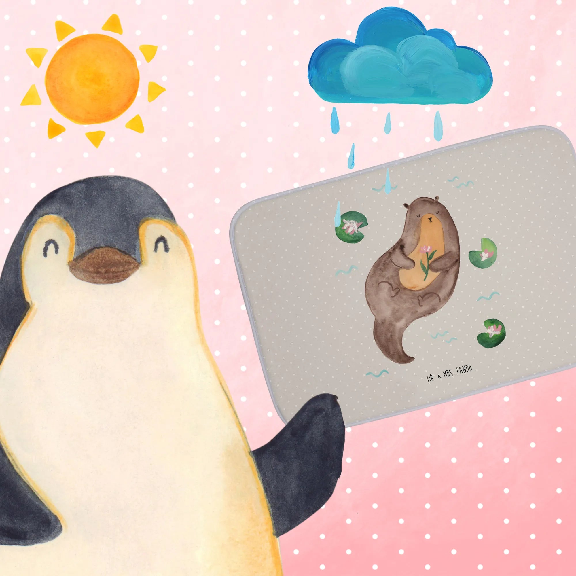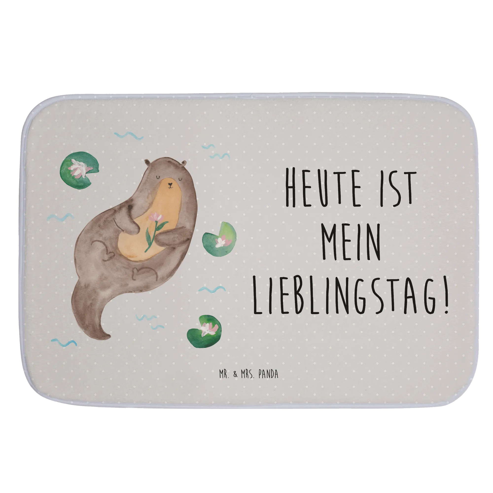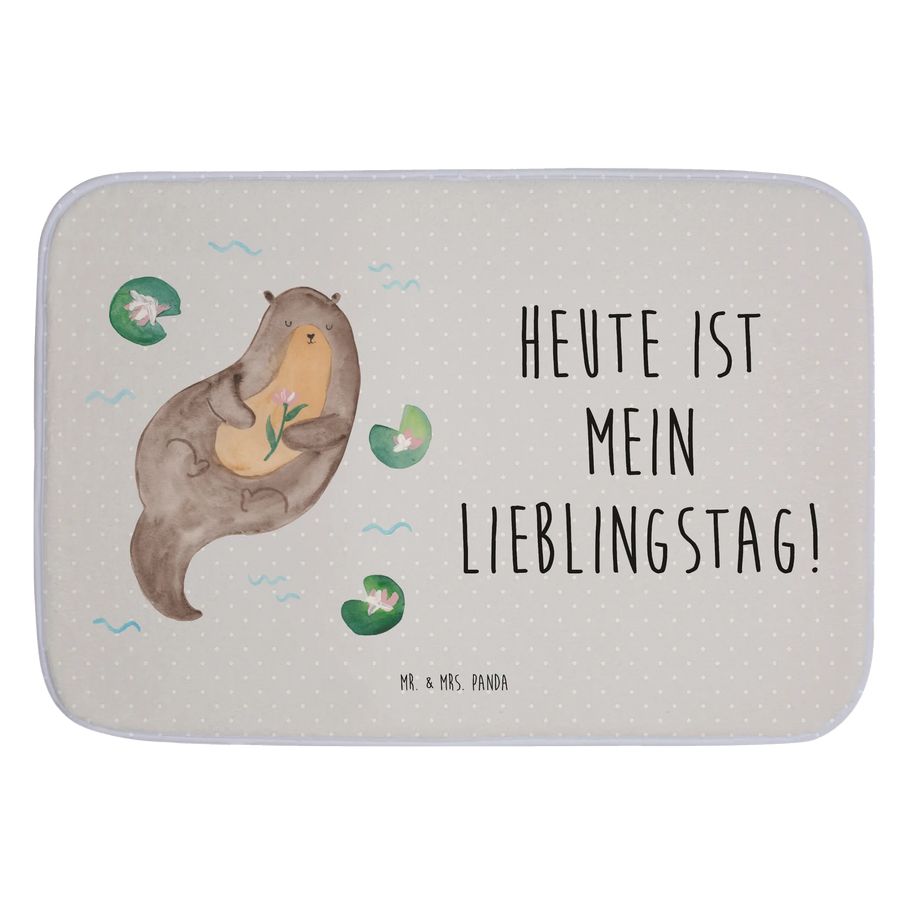 Badematte Otter Seerose - mit Spruch - Grau Pastell