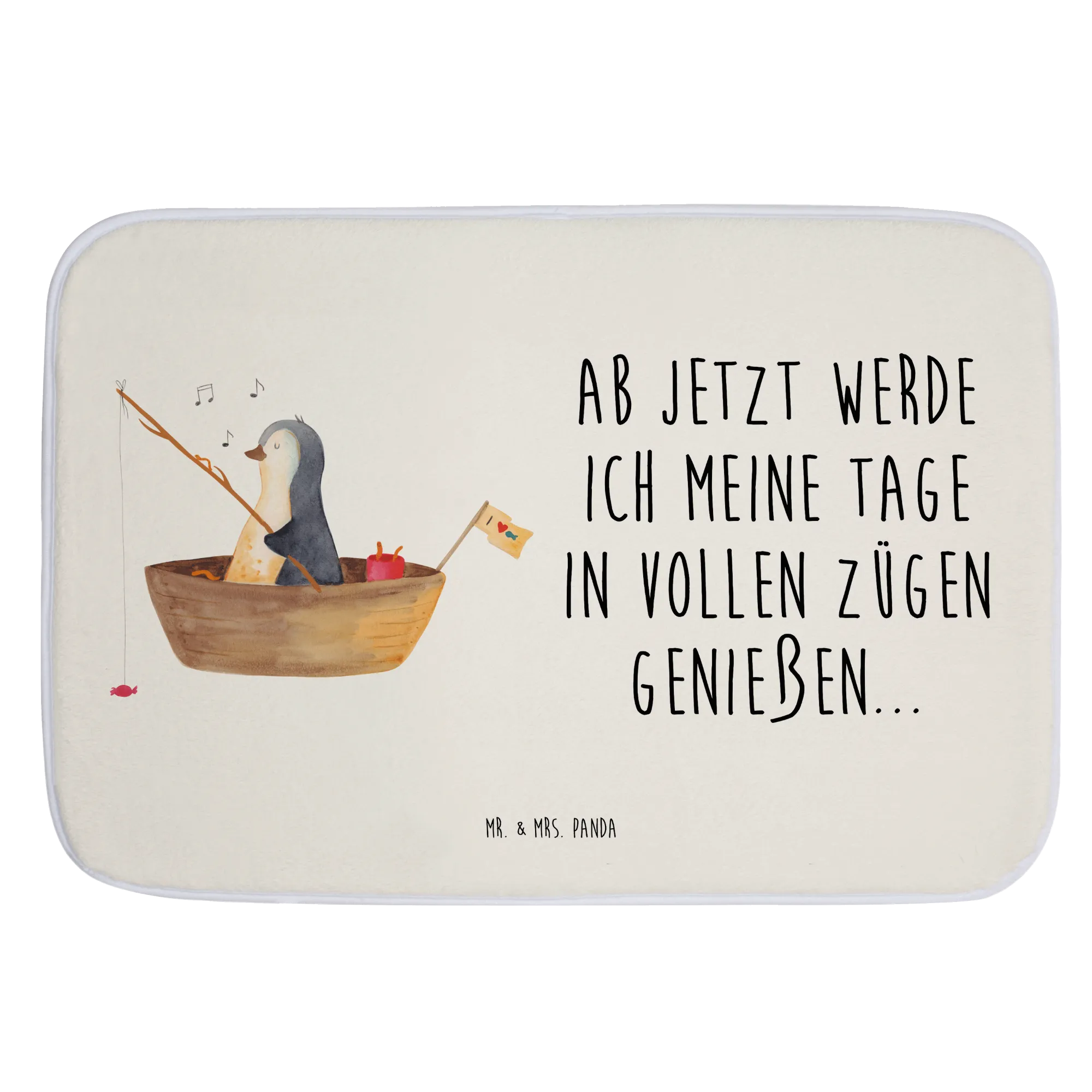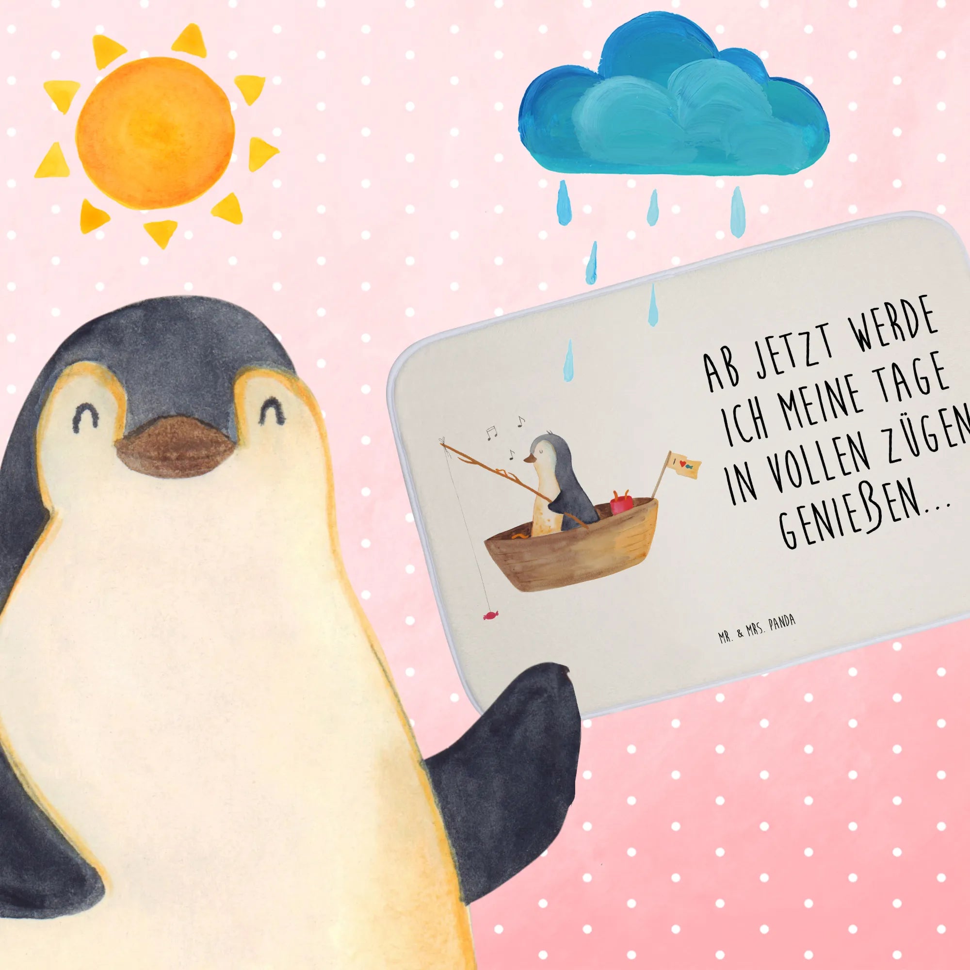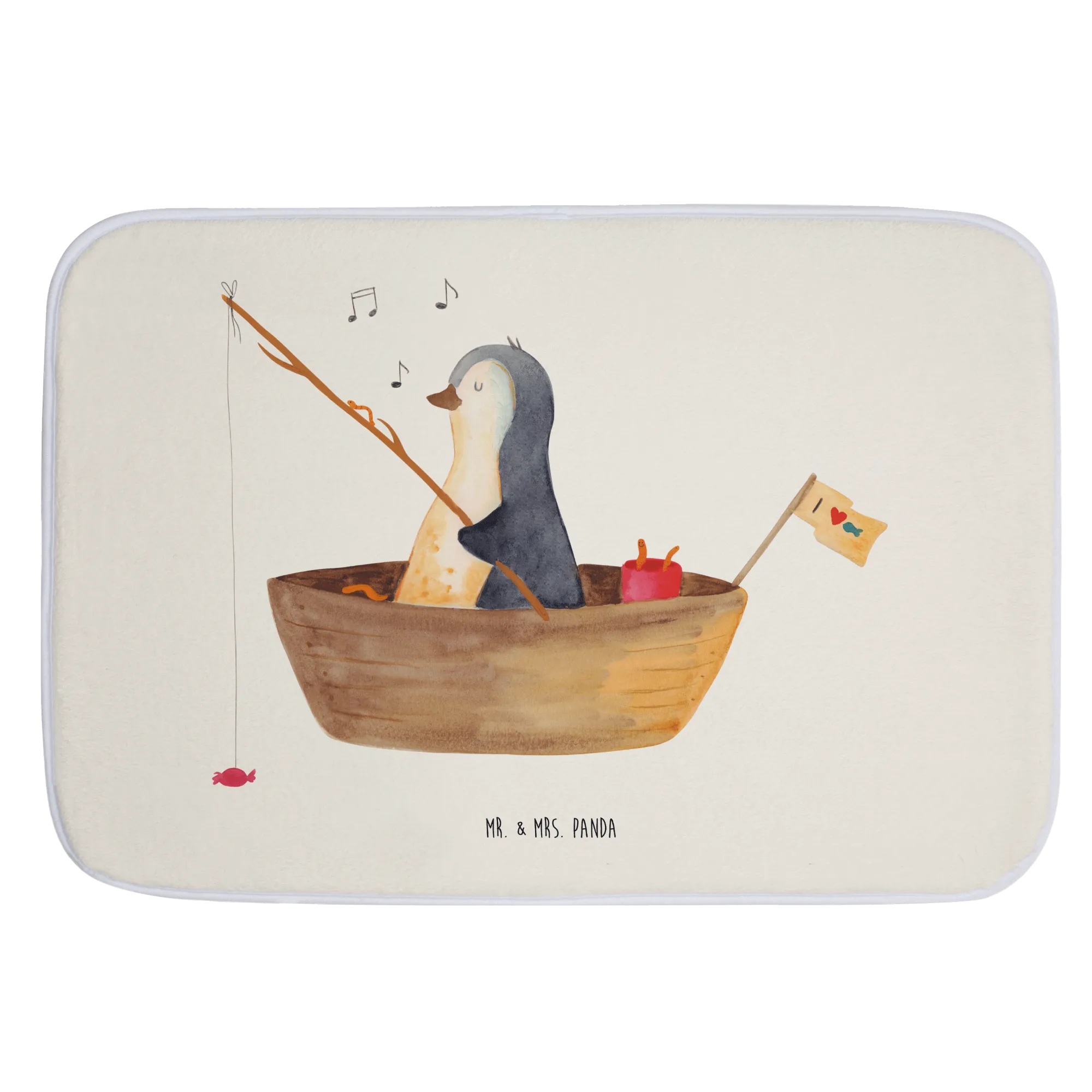 Ein wunderschöner Badvorleger von Mr. & Mrs. Panda mit einem zauberhaften Pinguin-Motiv aus unserer Pinguin-Kollektion! 🐧 Dieser niedliche Pinguin, der auf einem kleinen Angelboot sitzt und mit Bonbons angelt, ist der perfekte Begleiter für dein Badezimmer.