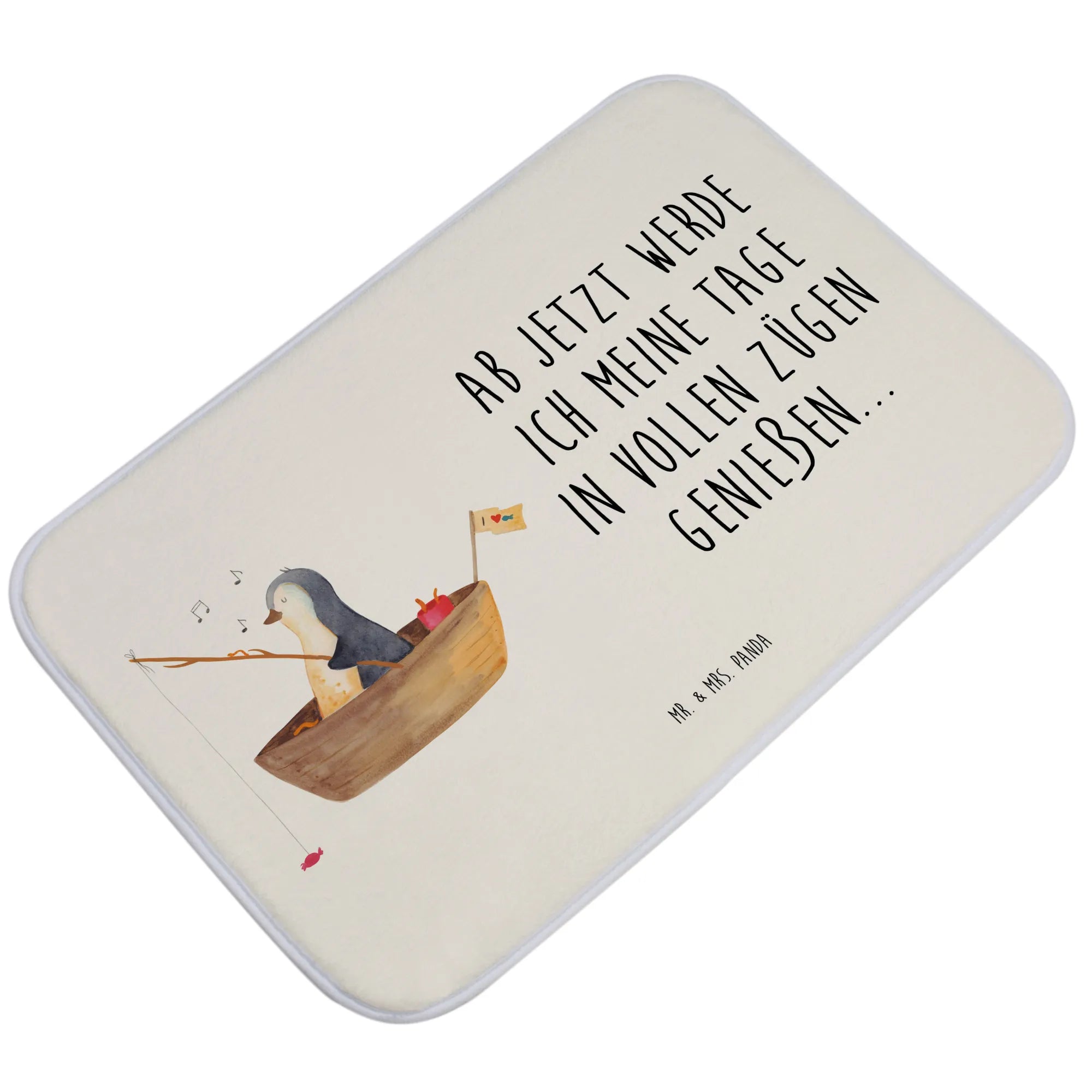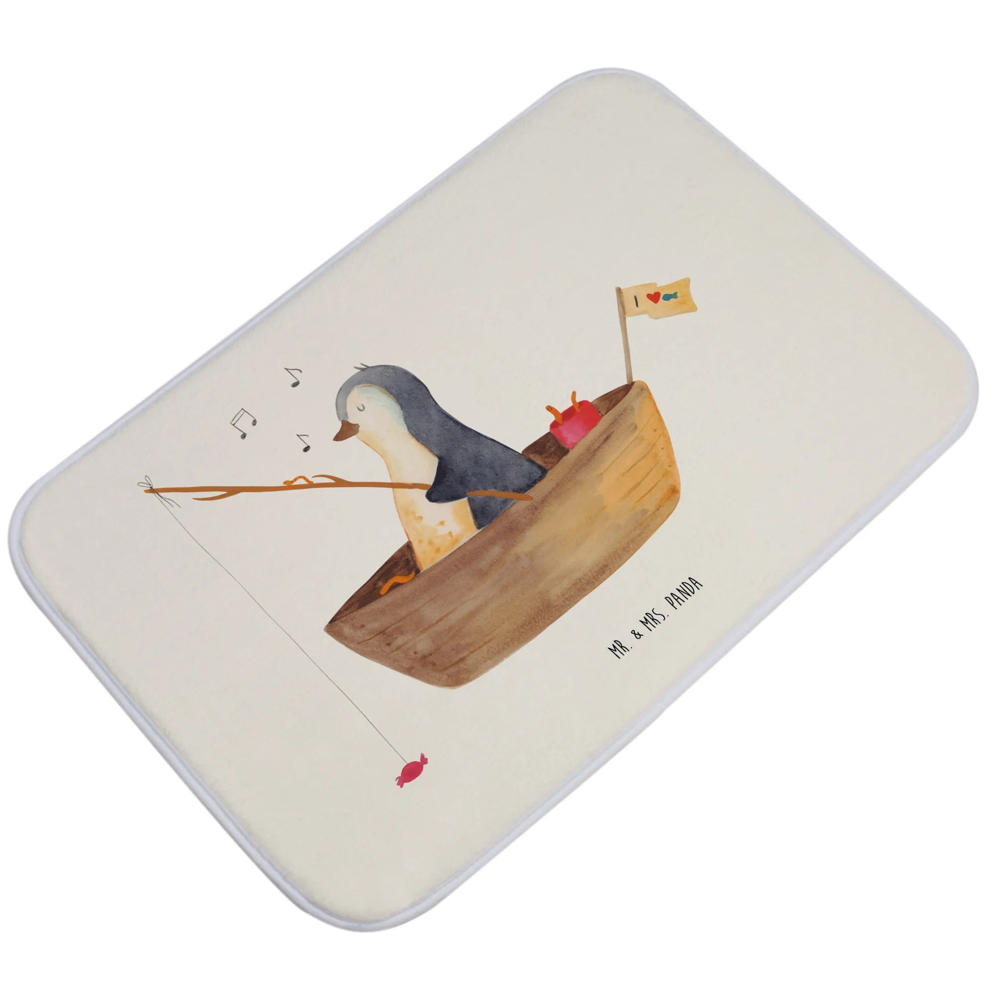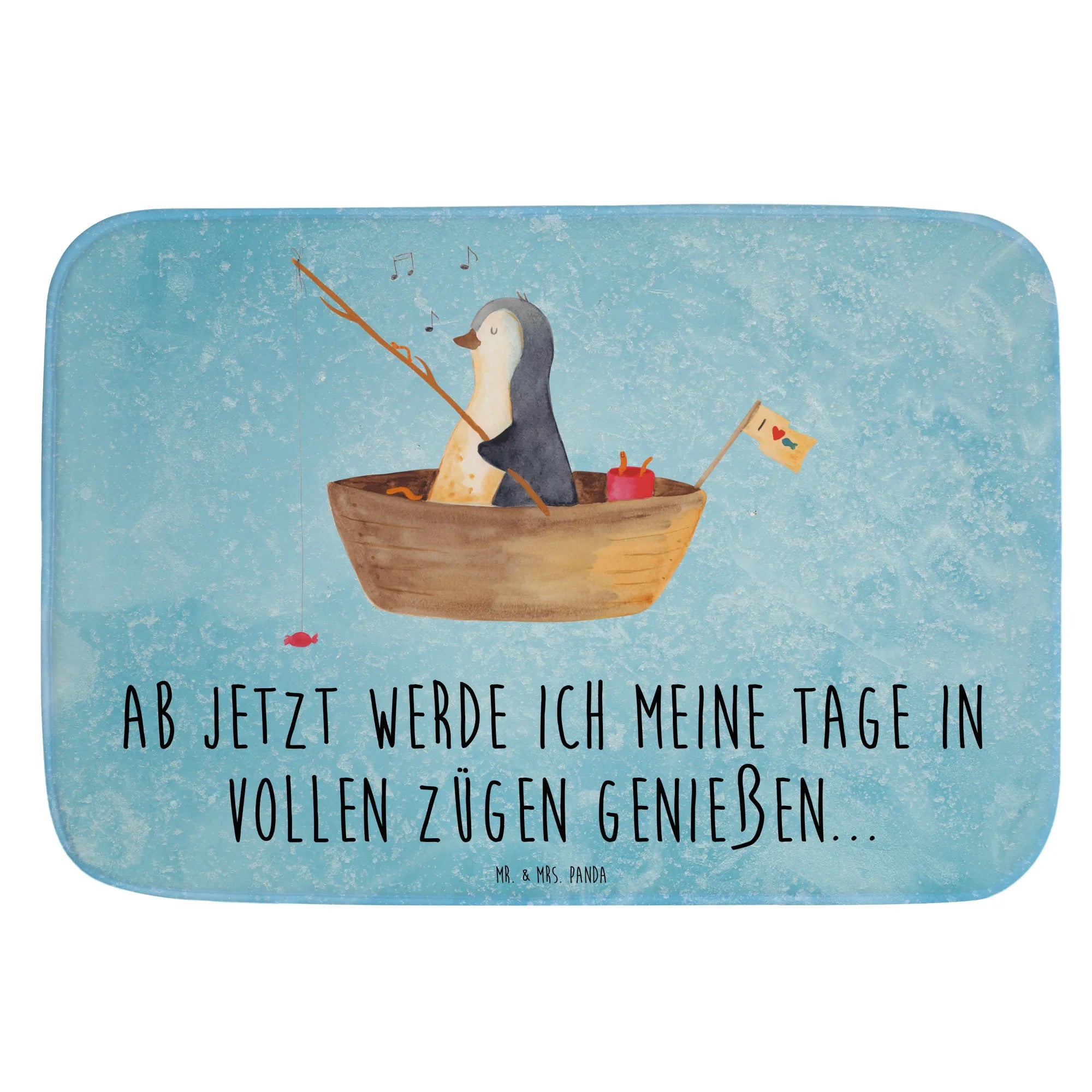 Ein wunderschöner Badvorleger von Mr. & Mrs. Panda mit einem zauberhaften Pinguin-Motiv aus unserer Pinguin-Kollektion! 🐧 Dieser niedliche Pinguin, der auf einem kleinen Angelboot sitzt und mit Bonbons angelt, ist der perfekte Begleiter für dein Badezimmer.