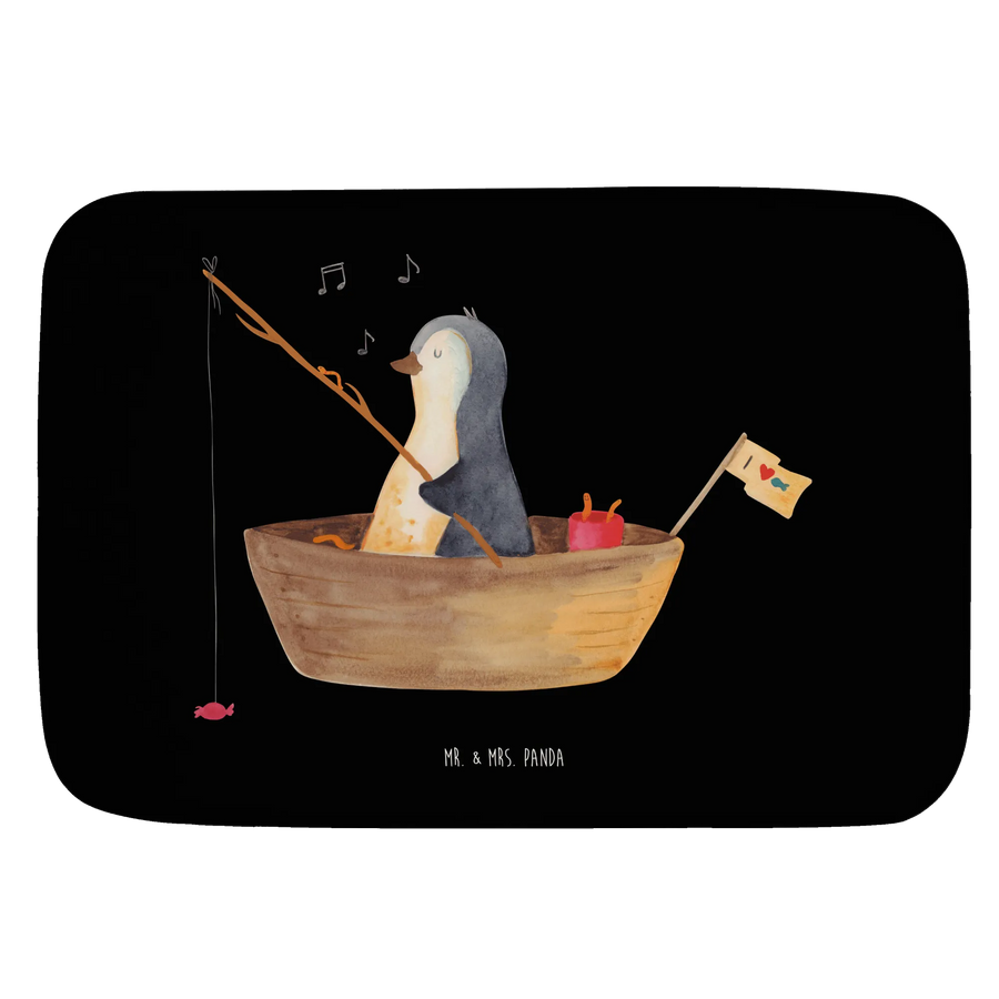 Ein wunderschöner Badvorleger von Mr. & Mrs. Panda mit einem zauberhaften Pinguin-Motiv aus unserer Pinguin-Kollektion! 🐧 Dieser niedliche Pinguin, der auf einem kleinen Angelboot sitzt und mit Bonbons angelt, ist der perfekte Begleiter für dein Badezimmer.