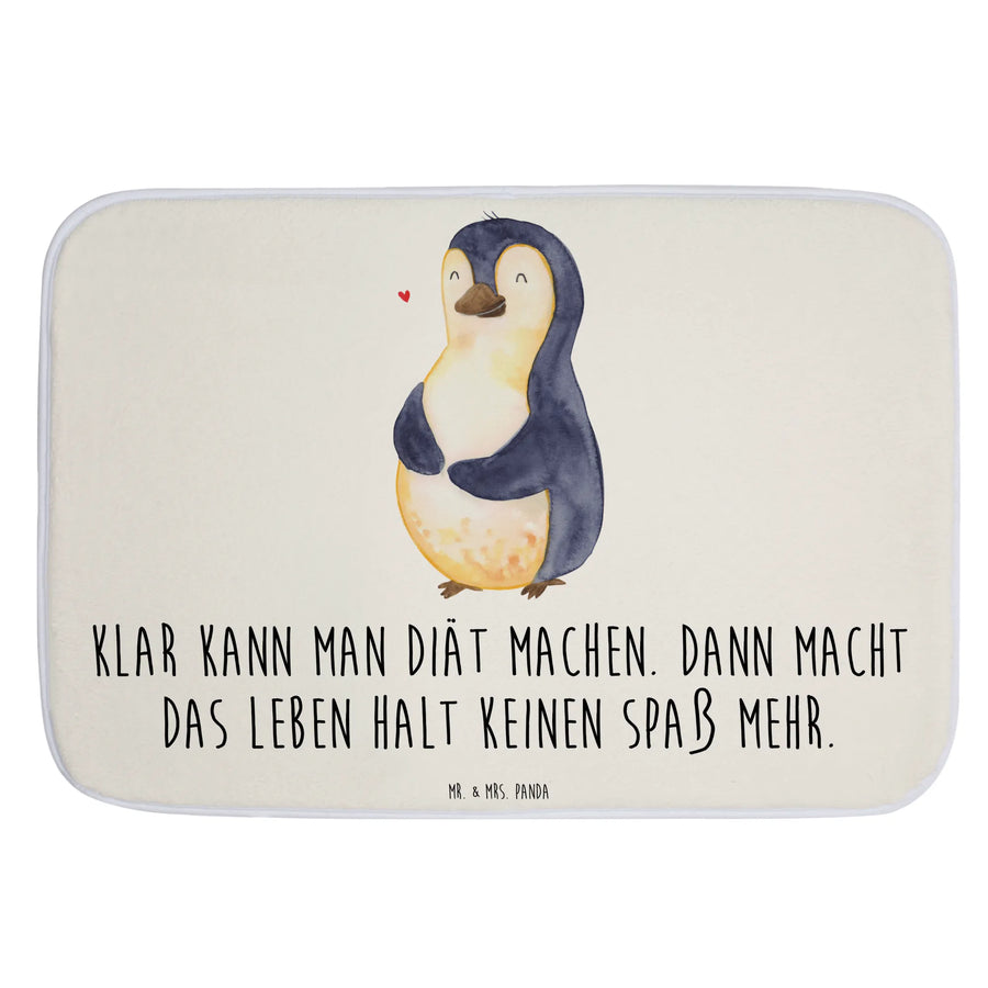 Der Badvorleger Pinguin Diät von Mr. & Mrs. Panda ist das perfekte Geschenk für alle, die Humor und Stil im Badezimmer schätzen! Mit seiner flauschigen Premium Kunstfaser und der Antirutsch Gummibeschichtung sorgt der Badteppich nicht nur für eine tolle Optik, sondern macht auch dein Bad ausrutschsicher.