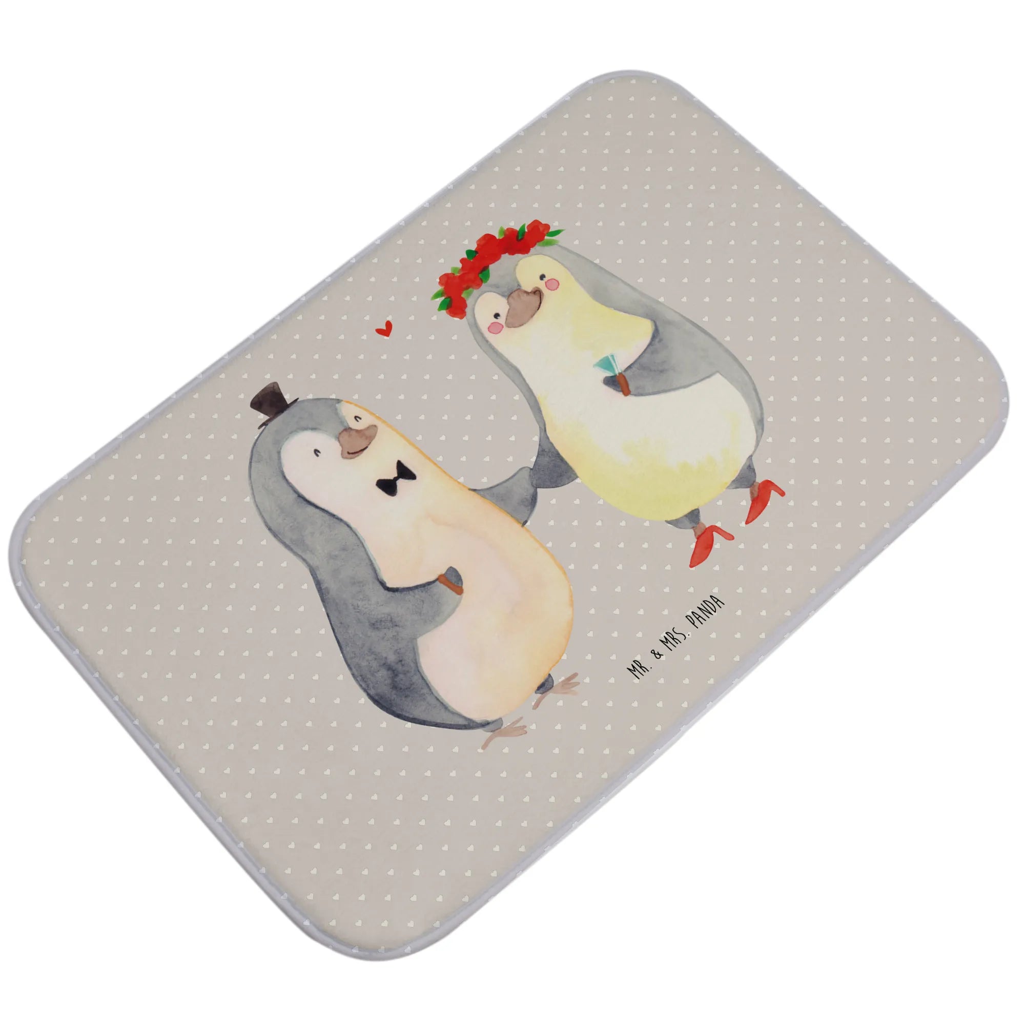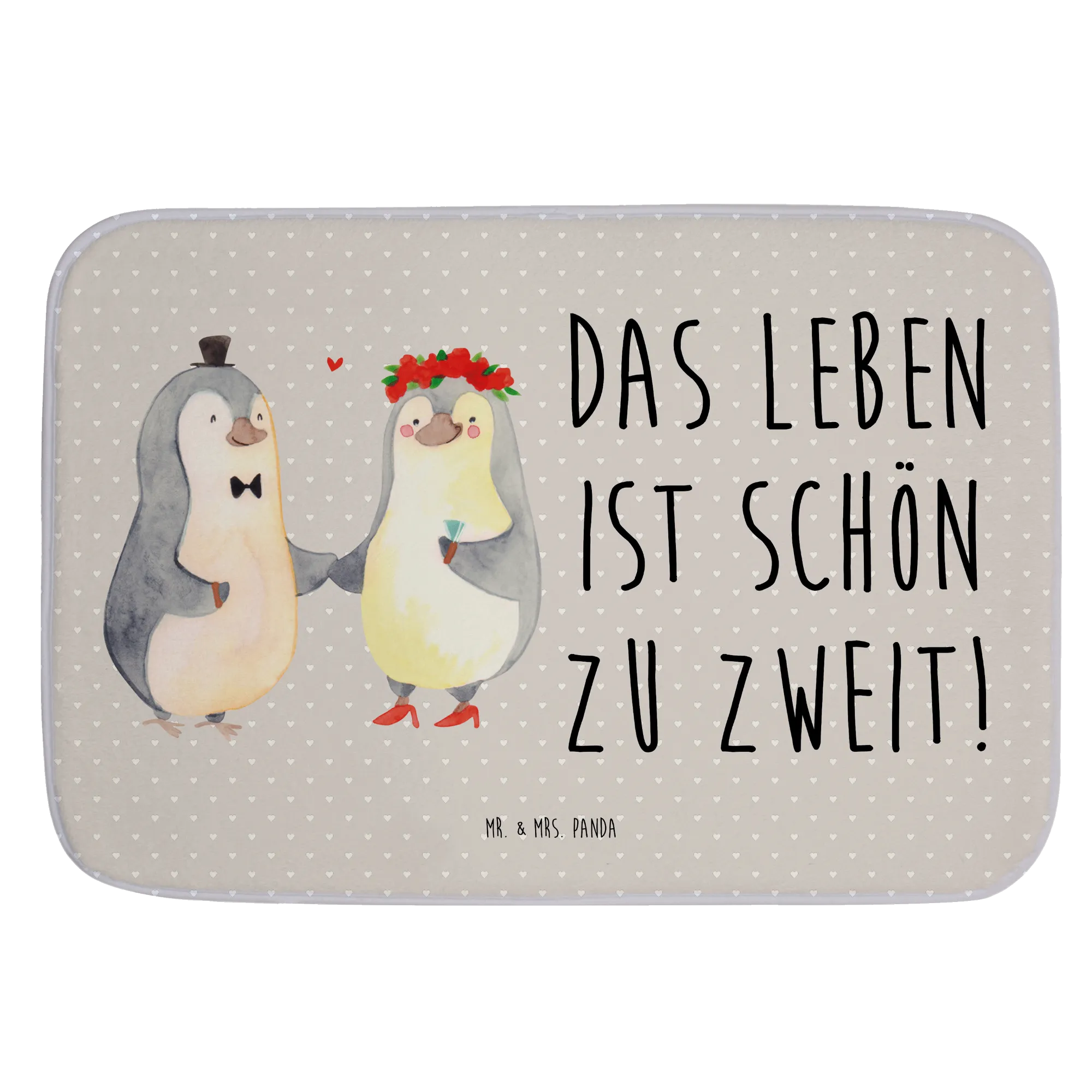 Entdecke den wunderbaren Badvorleger mit dem süßen Pinguin-Heirat-Motiv von Mr. & Mrs. Panda! Dieser Badteppich bringt nicht nur eine liebevolle Atmosphäre in dein Badezimmer, sondern ist auch ein echtes Highlight für Verliebte.