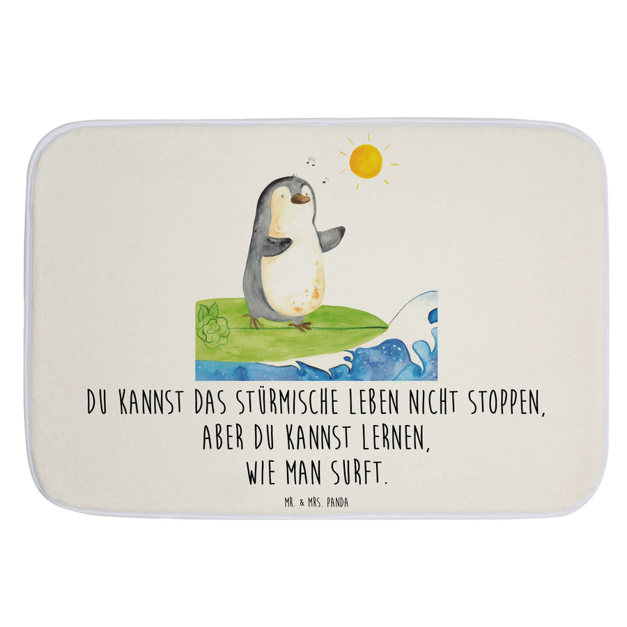 Badematte Pinguin Surfer - mit Spruch - Weiß