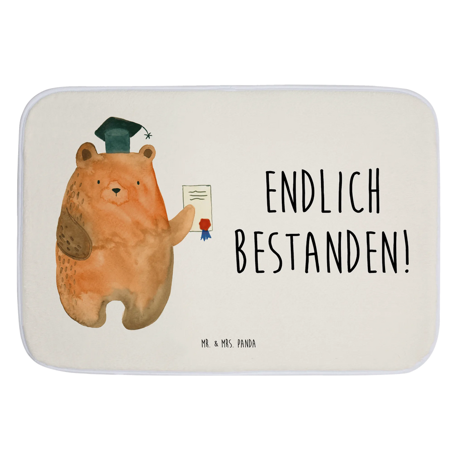Der Badvorleger mit dem Prüfungsbär von Mr. & Mrs. Panda ist das perfekte Geschenk für all jene, die gerade ihre Prüfung bestanden haben. Ob für das Abitur, eine Abschlussprüfung oder eine andere wichtige Prüfung – dieser Badteppich verleiht jedem Badezimmer eine fröhliche Atmosphäre und ist ein Zeichen des Erfolgs!
