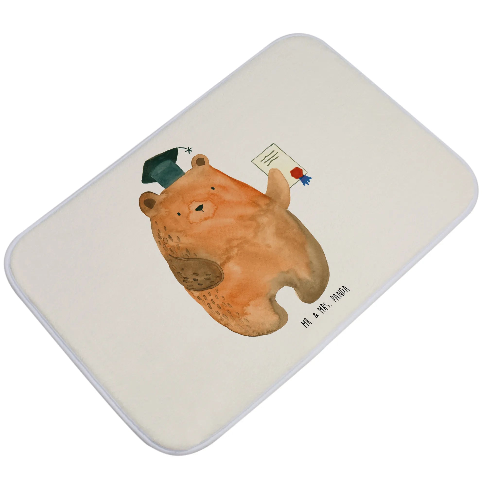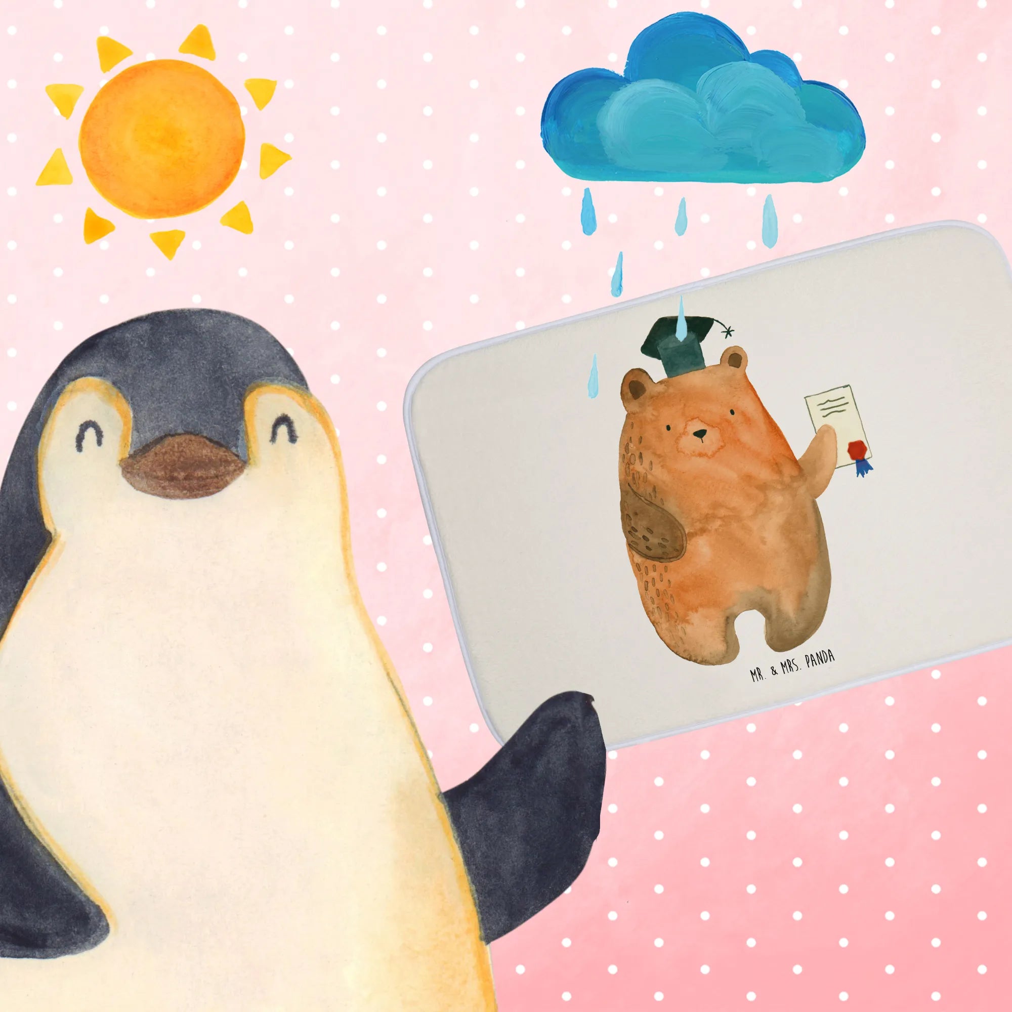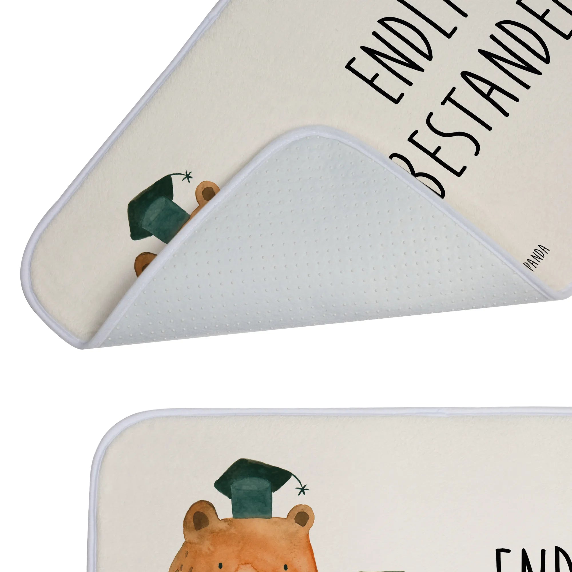 Der Badvorleger mit dem Prüfungsbär von Mr. & Mrs. Panda ist das perfekte Geschenk für all jene, die gerade ihre Prüfung bestanden haben. Ob für das Abitur, eine Abschlussprüfung oder eine andere wichtige Prüfung – dieser Badteppich verleiht jedem Badezimmer eine fröhliche Atmosphäre und ist ein Zeichen des Erfolgs!