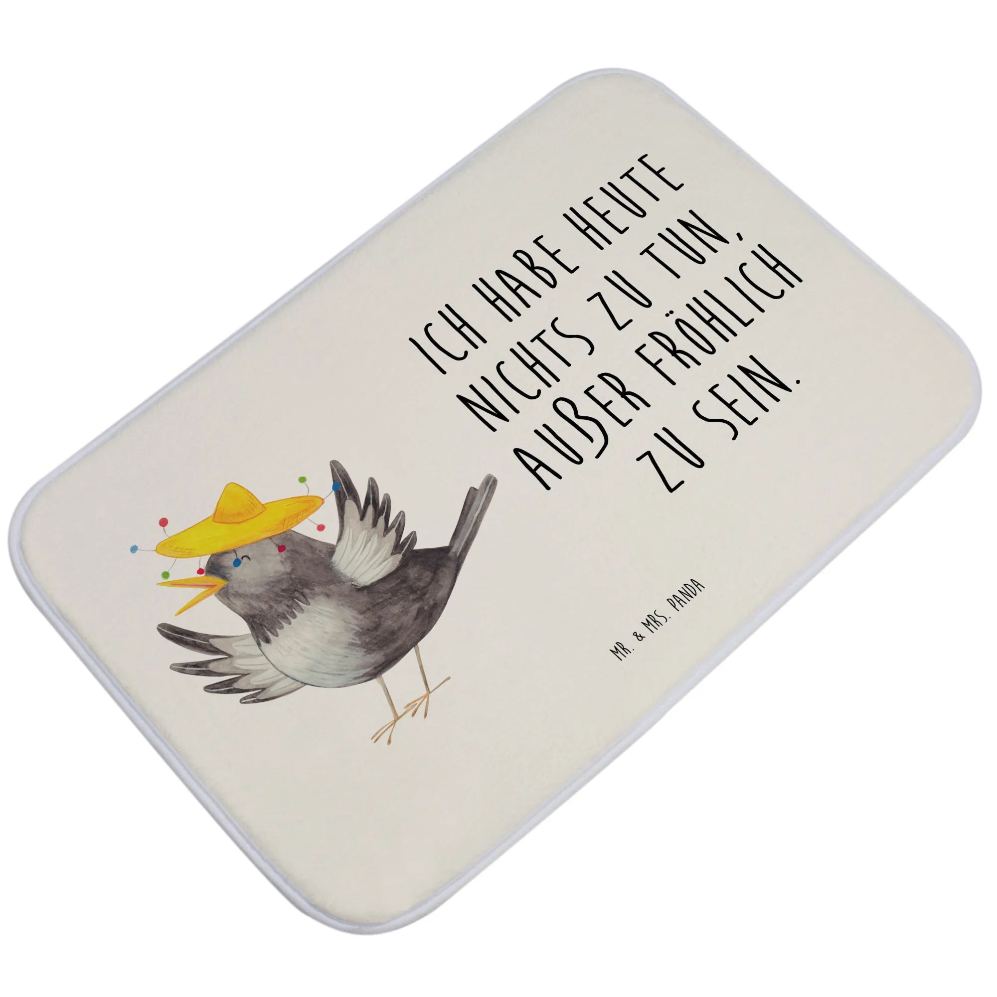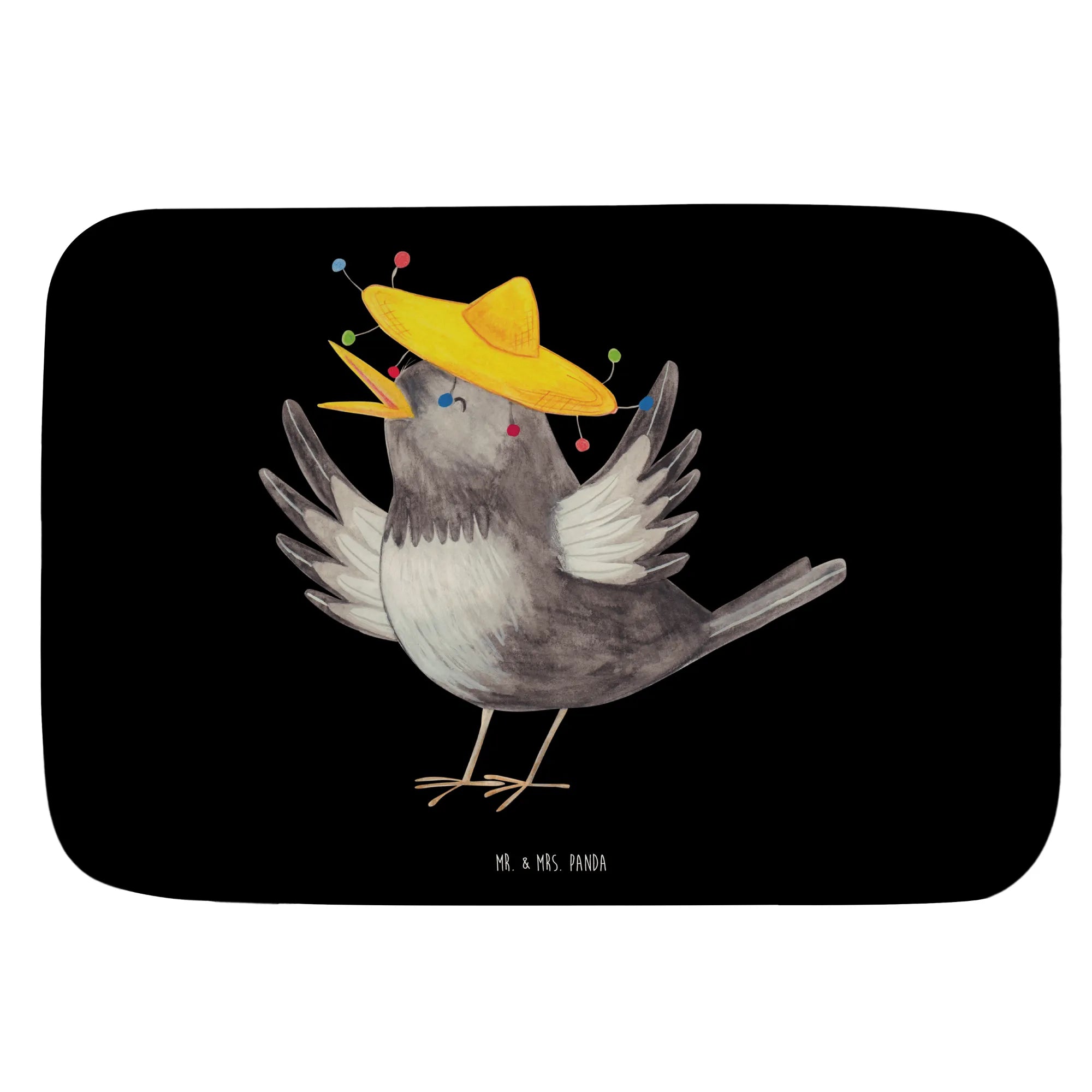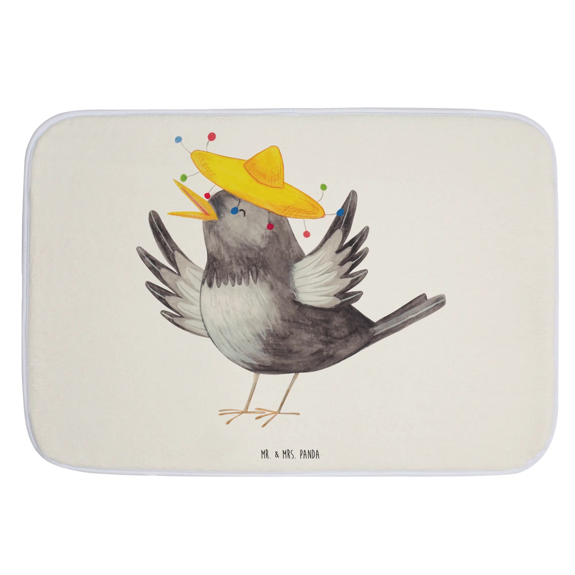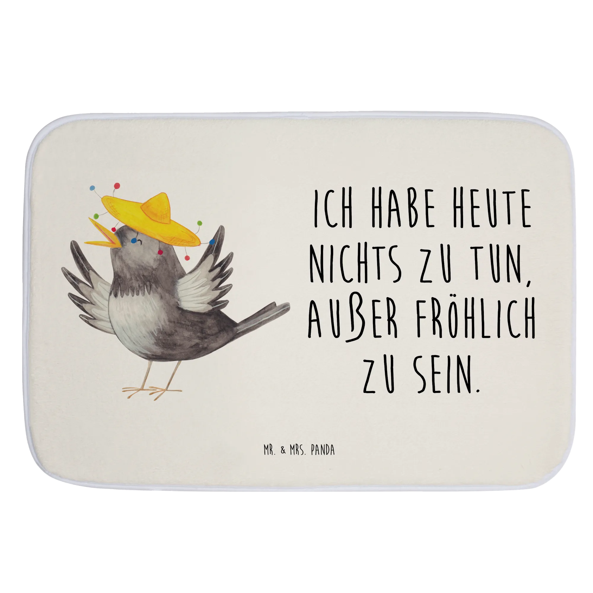 Leb(e) fröhlich, genieße die guten Dinge und bringe Farbe in Dein Badezimmer mit dem Badvorleger "Rabe mit Sombrero" von Mr. & Mrs. Panda.