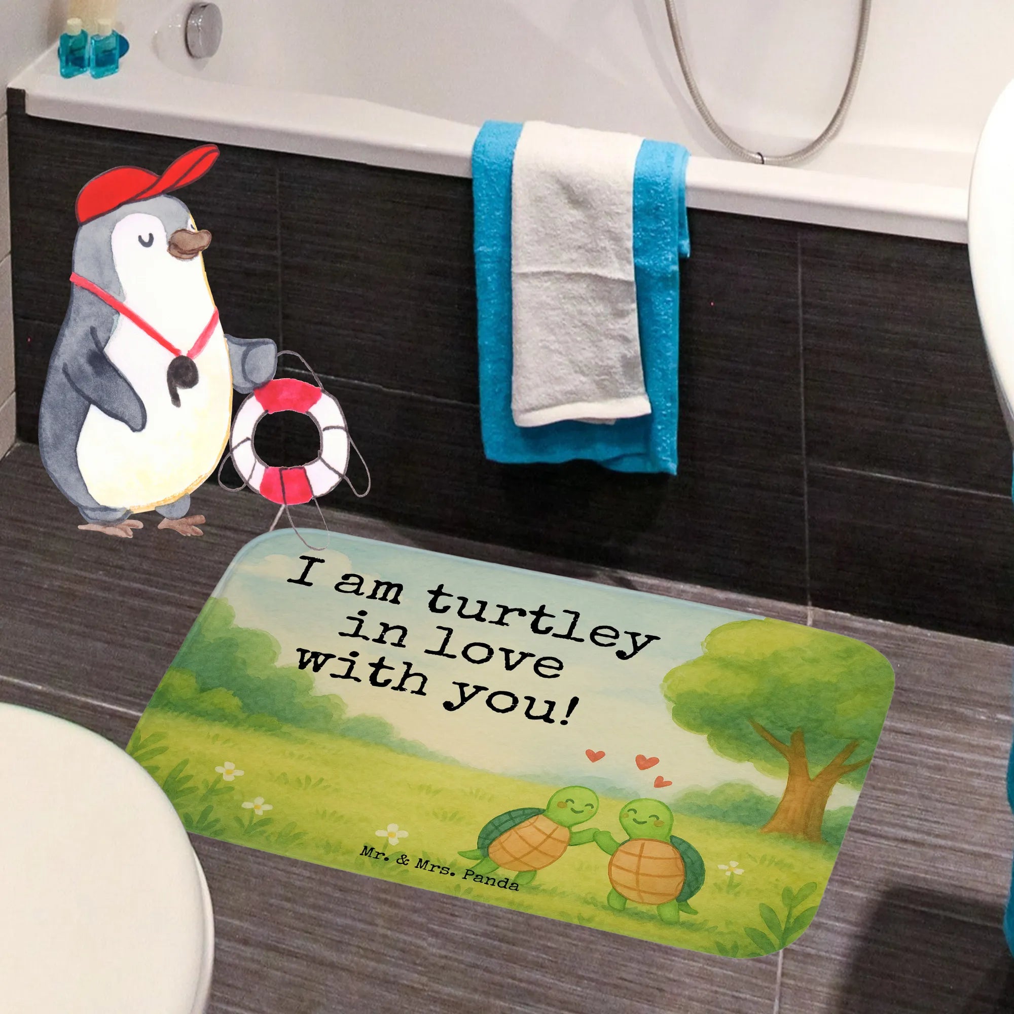 Badematte Schildkröten Paar Design - mit Spruch