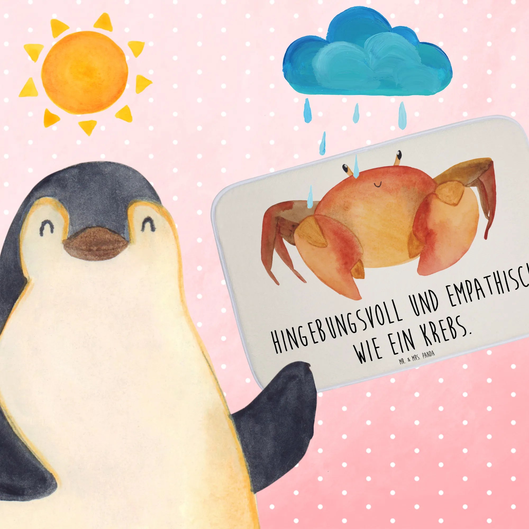 Entdecke den bezaubernden Badvorleger Sternzeichen Krebs von Mr. & Mrs. Panda! Diese flauschige Badematte ist die perfekte Ergänzung für dein Badezimmer und bringt gleichzeitig eine Portion Persönlichkeit und Stil. Der Badvorleger ist nicht nur ästhetisch ansprechend, sondern auch besonders funktional.