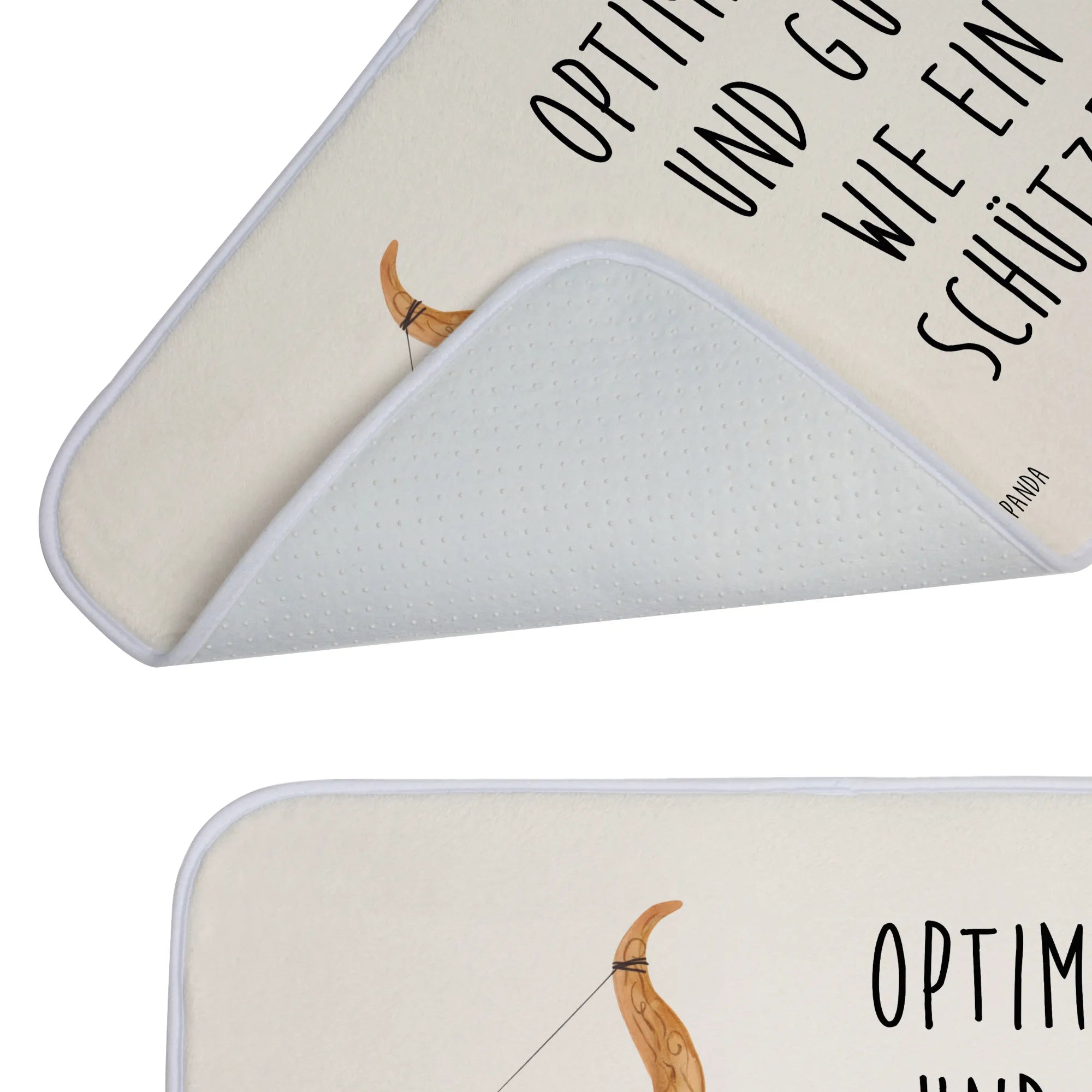 Jeder Vorleger ist einzigartig und wird mit viel Liebe zum Detail hergestellt. Mach dein Badezimmer zum dekorativen Highlight und zaubere ein Lächeln auf dein Gesicht mit dem Badvorleger "Sternzeichen Schütze" von Mr. & Mrs. Panda!