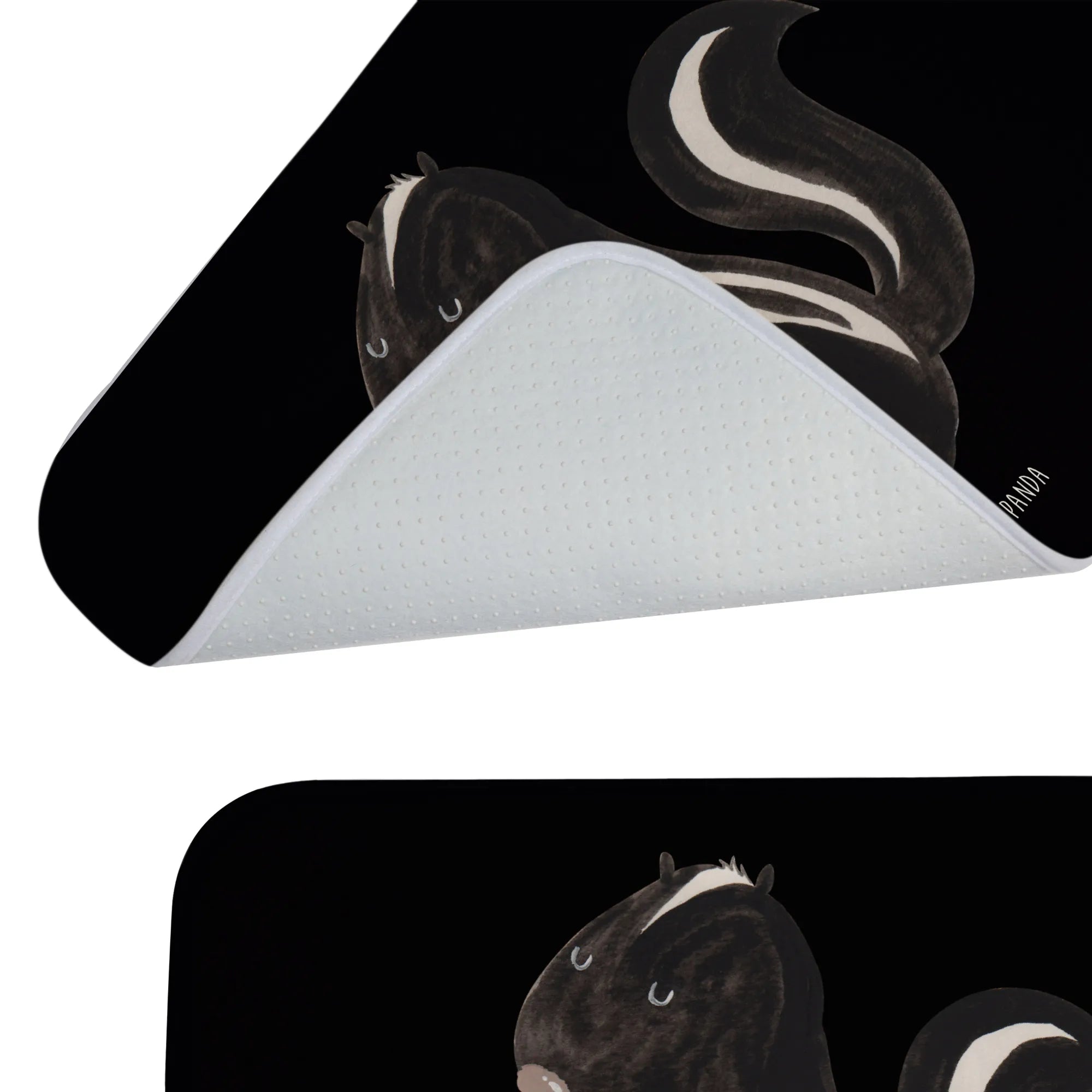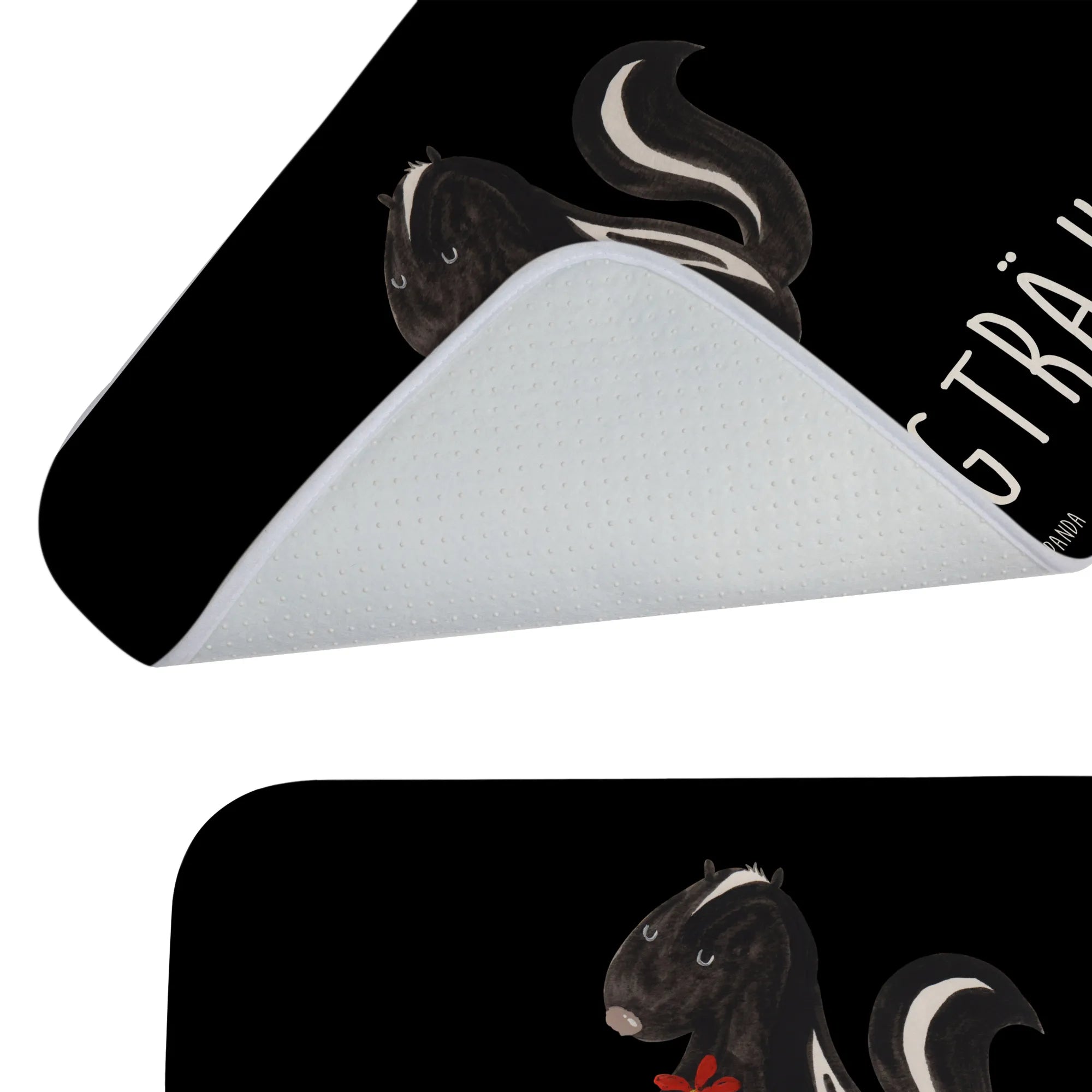 Badematte Stinktier Blume - mit Spruch - Schwarz