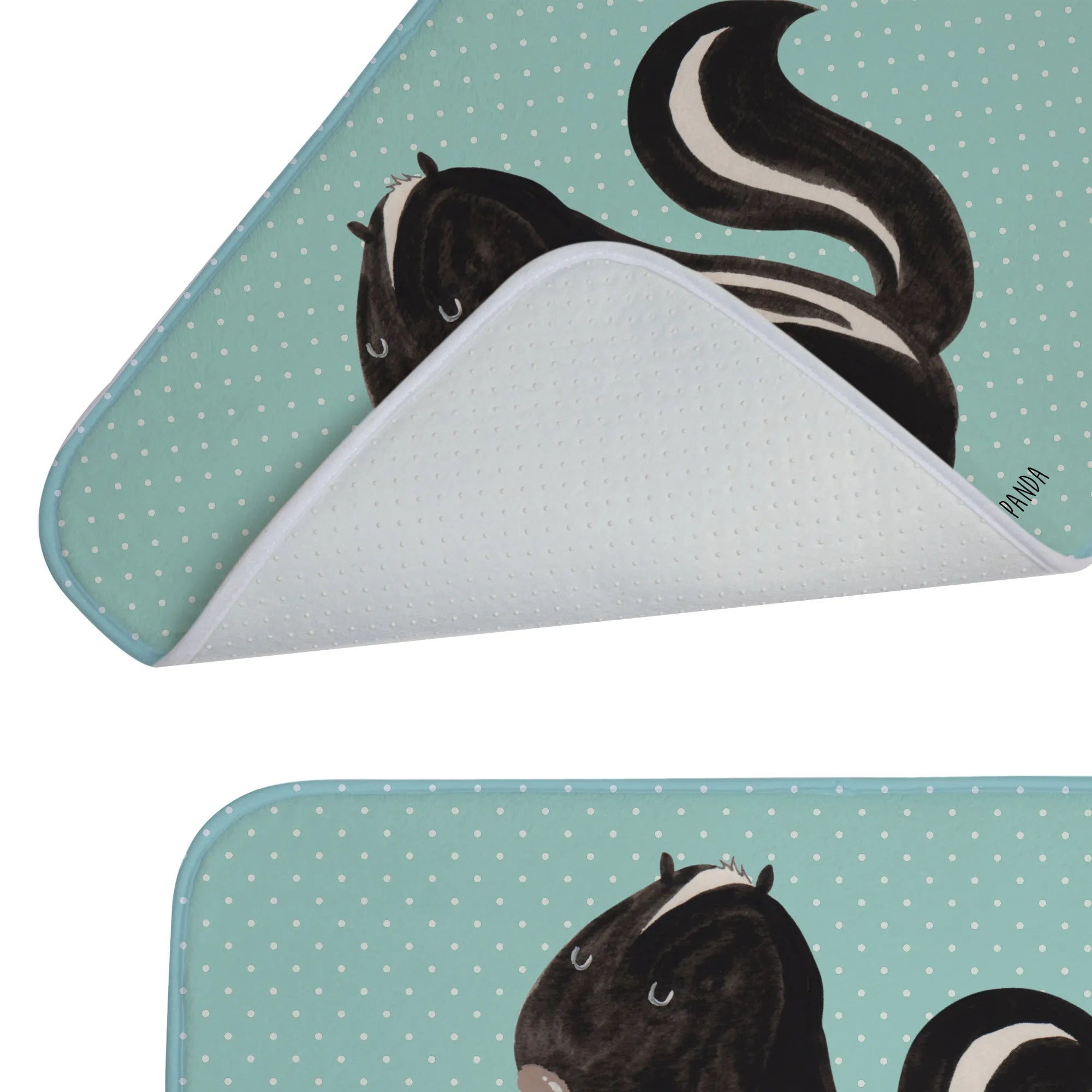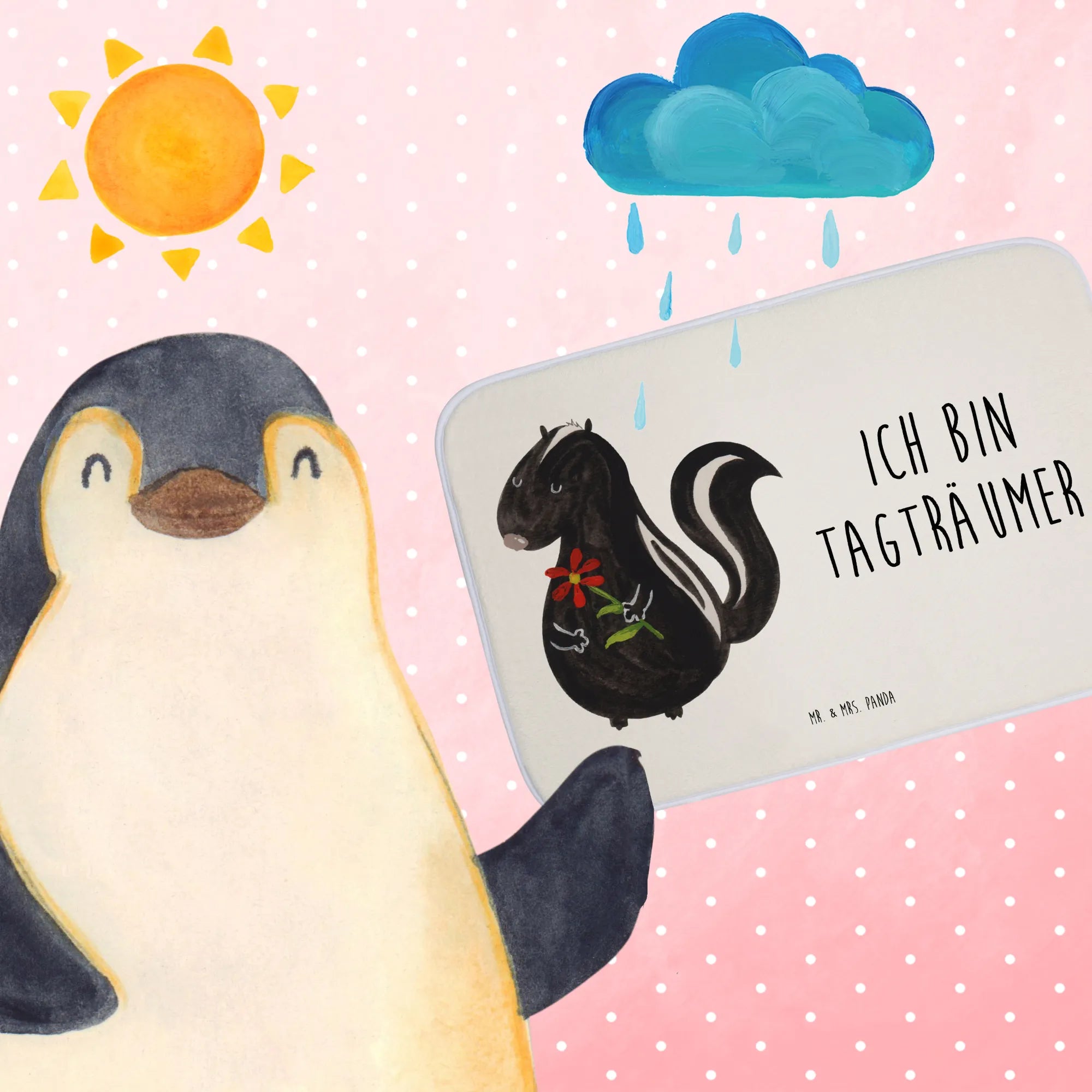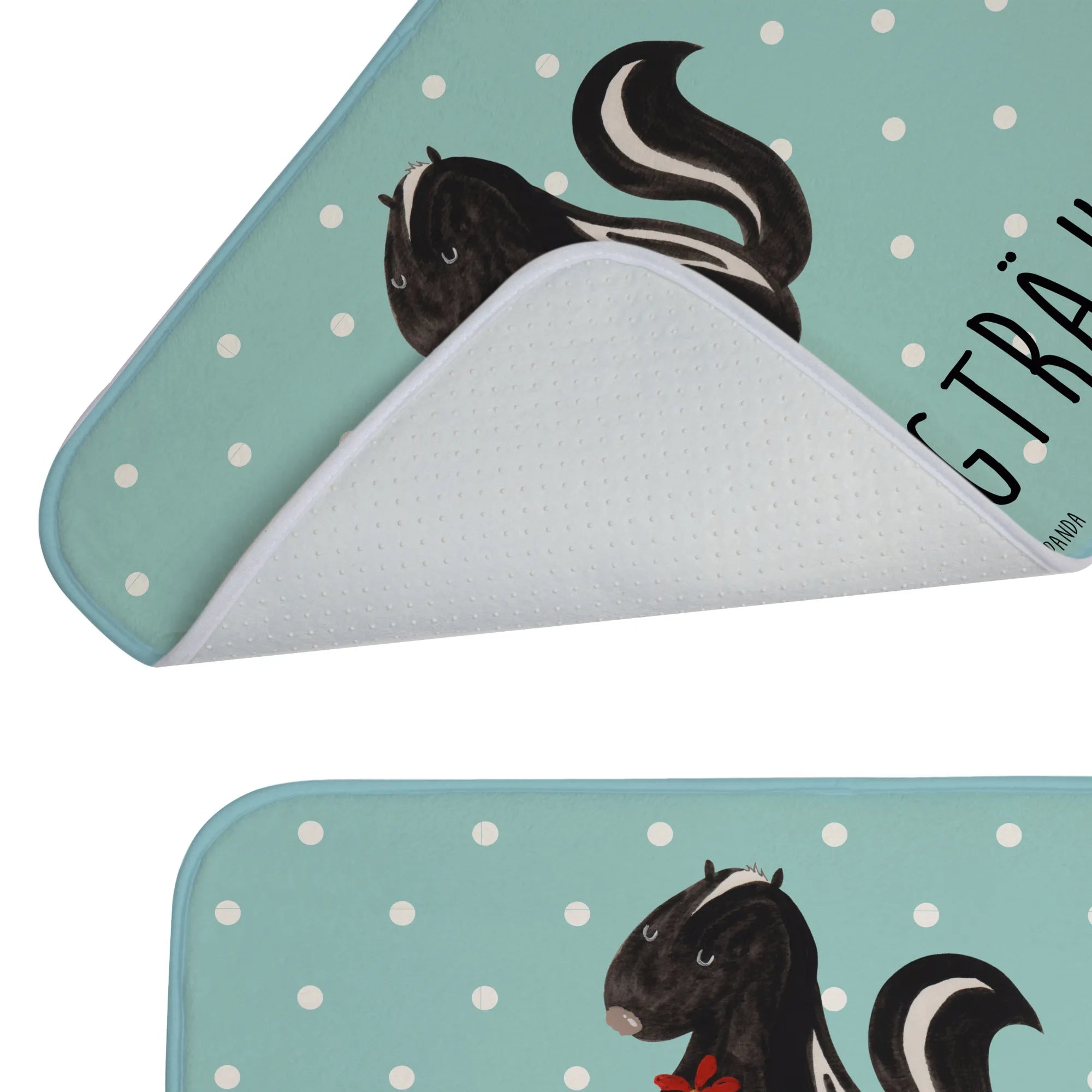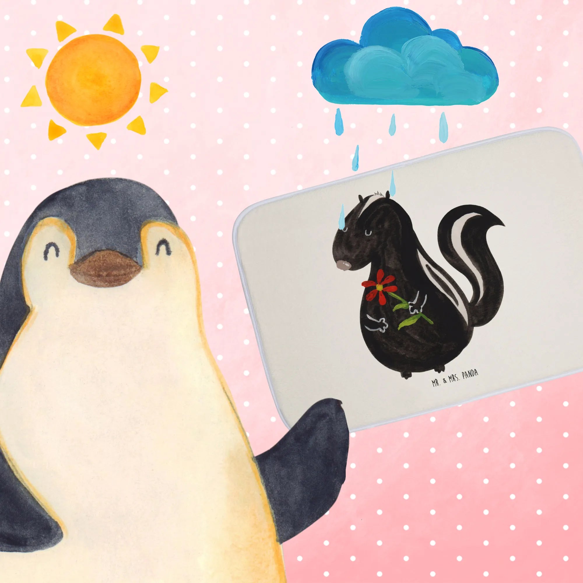 Der Badvorleger Stinktier Blume aus der Stinktier-Kollektion von Mr. & Mrs. Panda ist die perfekte Ergänzung für dein Badezimmer! Mit seinem niedlichen Aquarellmotiv eines süßen Stinktiers mit einer farbenfrohen Blumenkrone bringt er frischen Wind in deinen Alltag.