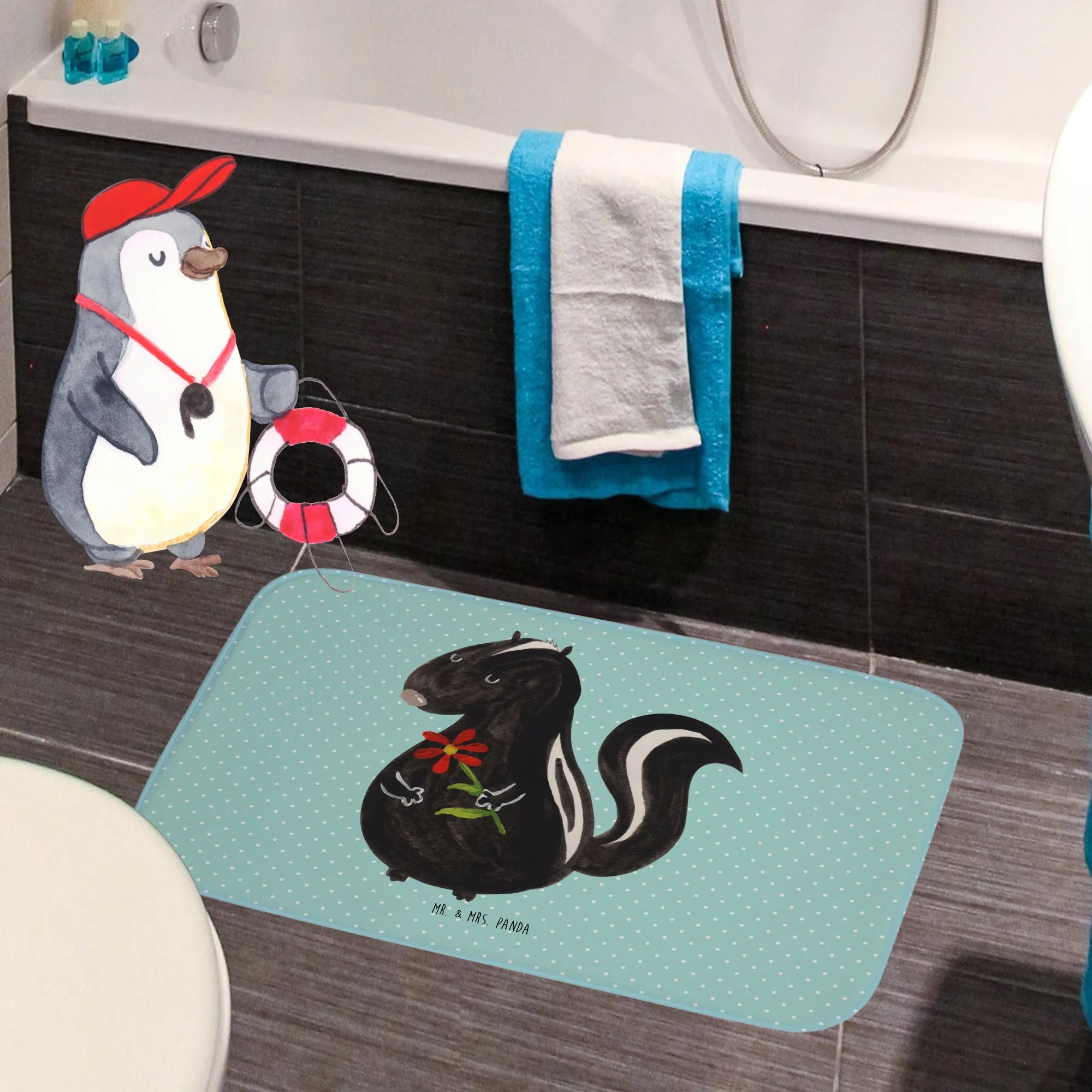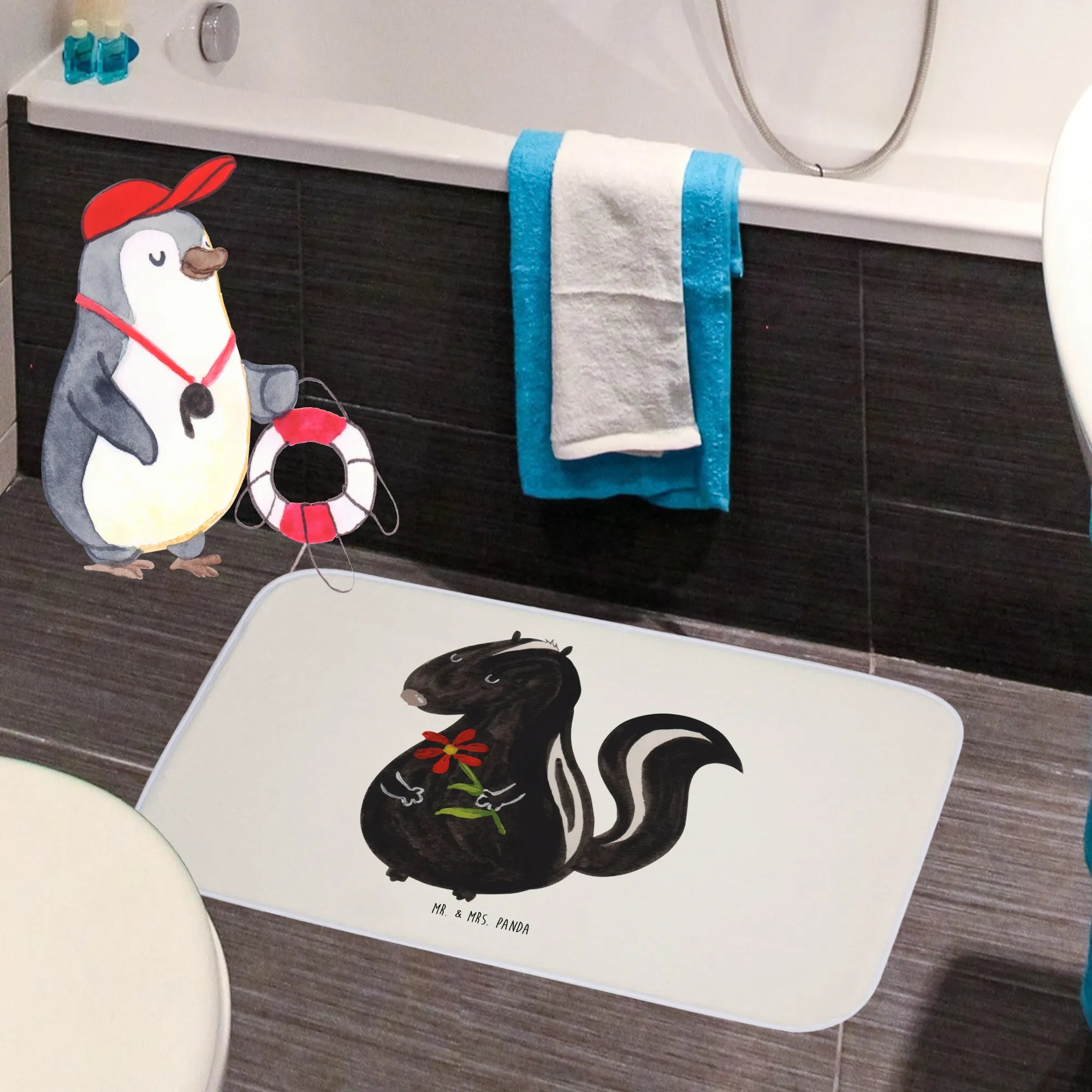 Der Badvorleger mit dem einzigartigen Stinktier Blume Motiv von Mr. & Mrs. Panda ist das perfekte Geschenk für alle, die ihr Badezimmer mit einem Hauch von Niedlichkeit und Spaß verschönern möchten.