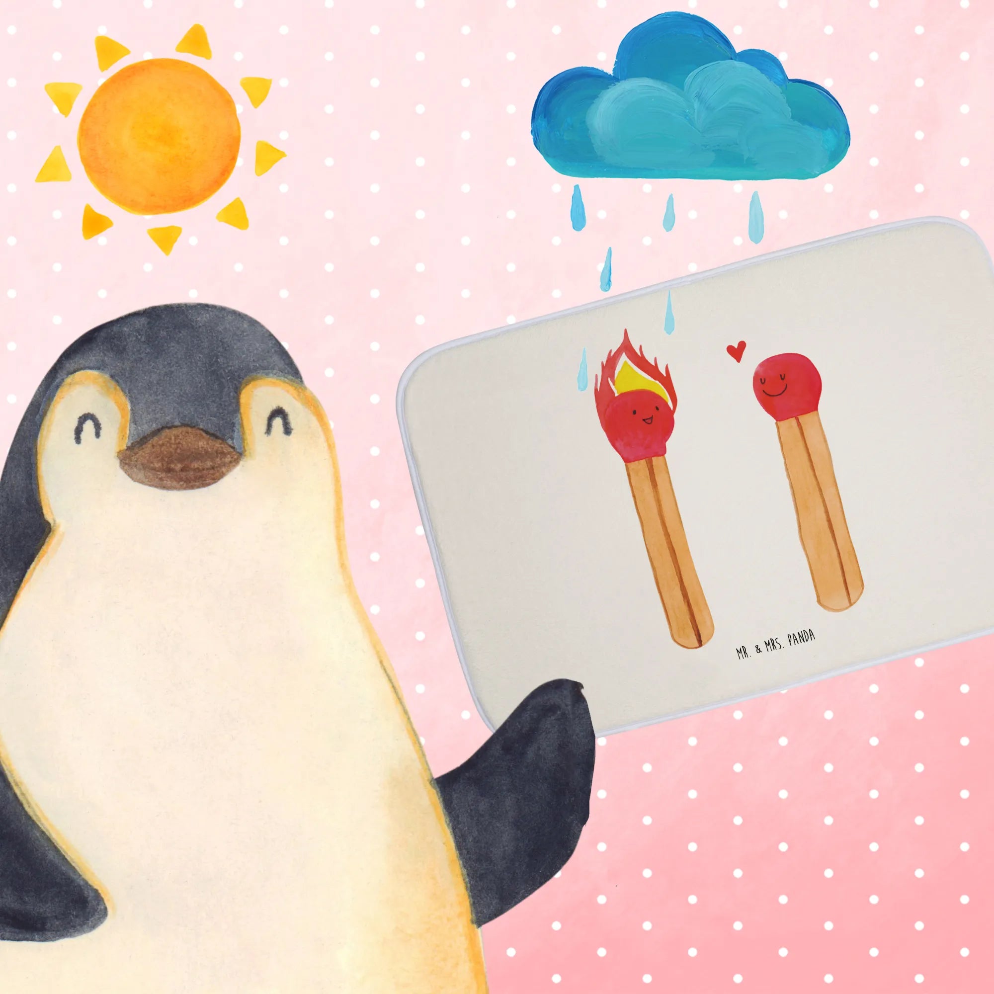 Der Badvorleger mit dem süßen Motiv der Streichhölzer von Mr. & Mrs. Panda ist das perfekte Geschenk für Verliebte! 🎁 Ob für deinen Freund, deine Freundin, deinen Ehemann oder deine Ehefrau – dieser Badezimmerteppich bringt nicht nur Farbe in dein Bad, sondern auch eine Portion Liebe. Mit den fröhlichen Streichhölzern, die ein Herz miteinander teilen, zauberst du jedem ein Lächeln ins Gesicht.